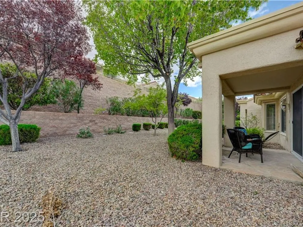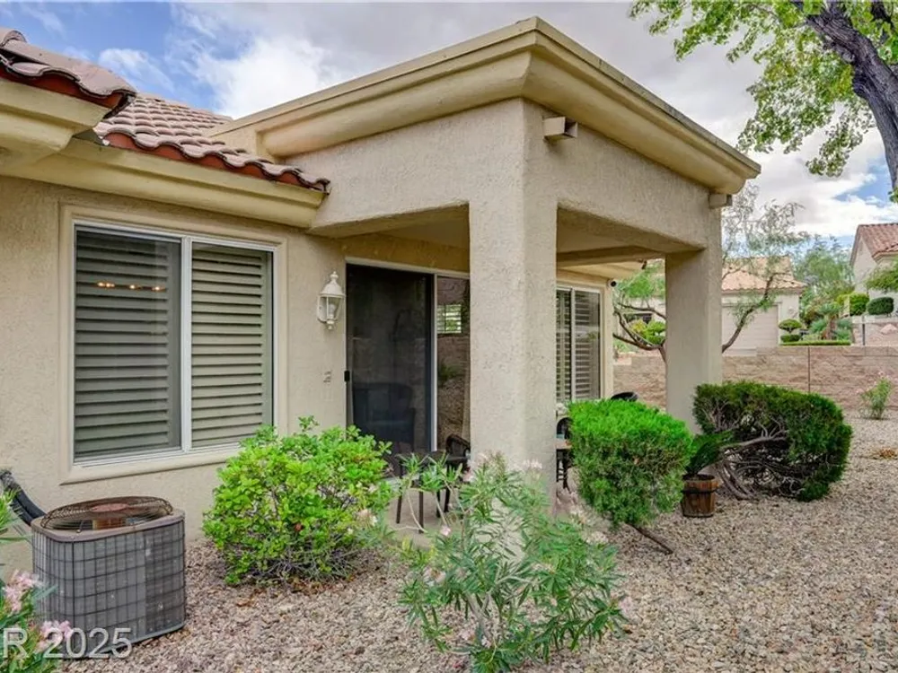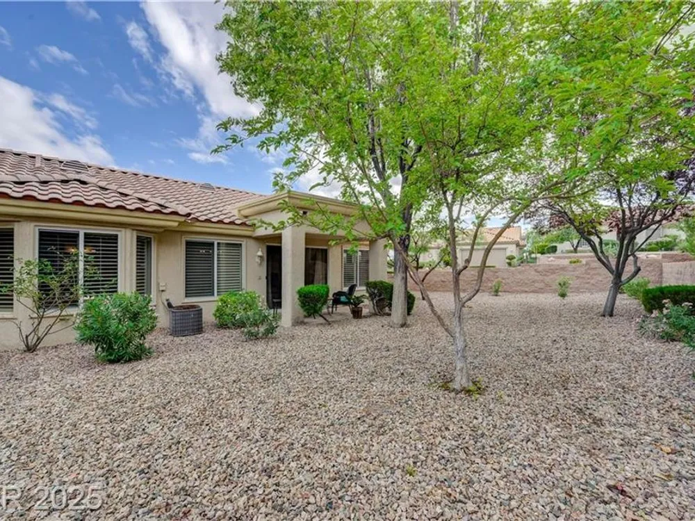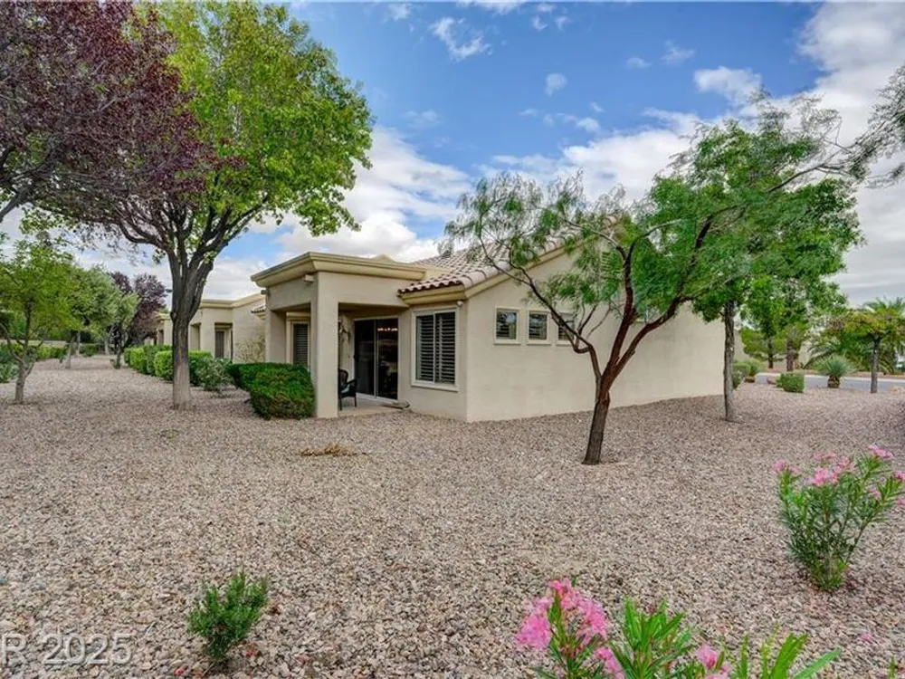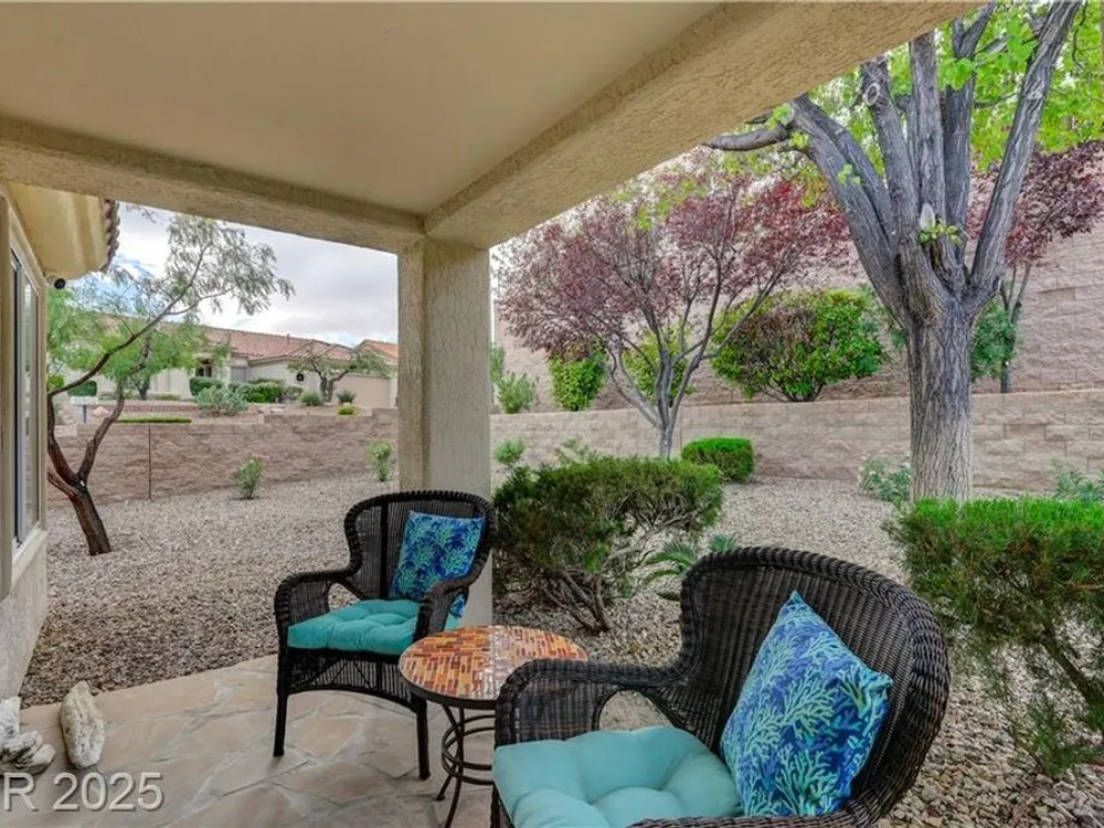 Renovated 2BD/2BA townhome w/2-car garage in Sun City Summerlin! Corner lot home features vaulted ceilings, plantation shutters, and tons of natural light. Modern kitchen w/new stainless appliances, quartz countertops & luxury vinyl flooring. Spacious bedrooms w/custom-tiled showers. New garage door, high-end washer/dryer, brass door handles, wrought iron entry & advanced security system w/cameras and doorbell. Covered patio for relaxing outdoors. Enjoy all the amenities—golf, clubhouses & fitness centers—in this premier 55+ community!