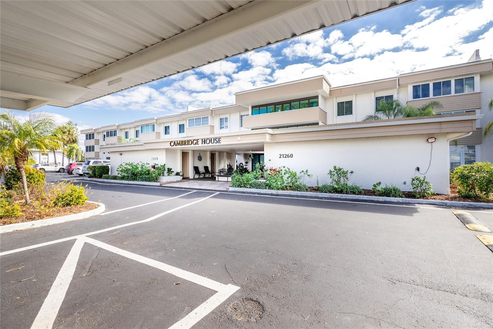 Welcome to easy, affordable Florida living in this charming first-floor condo! This first-floor 2-bedroom, 2-bath condo is a fantastic opportunity in a peaceful 55+ community with covered parking. Why rent when you can own for less? This well-maintained, move-in-ready condo offers 919 square feet of comfortable, open-concept living. Located in the conveniently situated Cambridge House at Charlotte Square, this home provides easy access and a relaxed lifestyle. The Cambridge House has successfully passed its structural inspections with no exceptions, offering added peace of mind. Recent updates include a new AC system and electrical panel (2023) and a water heater replaced in 2020. The enclosed sunroom features hurricane impact windows and a hurricane-rated door, perfect for enjoying Florida sunshine year-round. Residents enjoy resort-style amenities just steps away, including a spacious clubhouse for social events, two sparkling swimming pools, tennis and pickleball courts, and a welcoming social room for game nights and gatherings. Each unit includes one assigned covered parking space, along with secure electronic building entry and common-area security cameras. Whether you’re seeking a seasonal escape or a full-time residence, this condo offers easy, maintenance-free living in a vibrant and friendly community. Don’t miss your opportunity to enjoy the Florida lifestyle at its best.