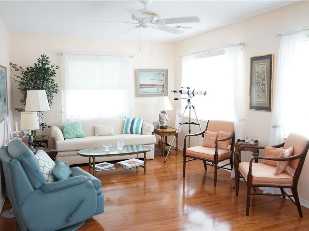 - Window Treatments, Ceiling Fan(s), Living/Dining Room, Split Bedrooms, Thermostat