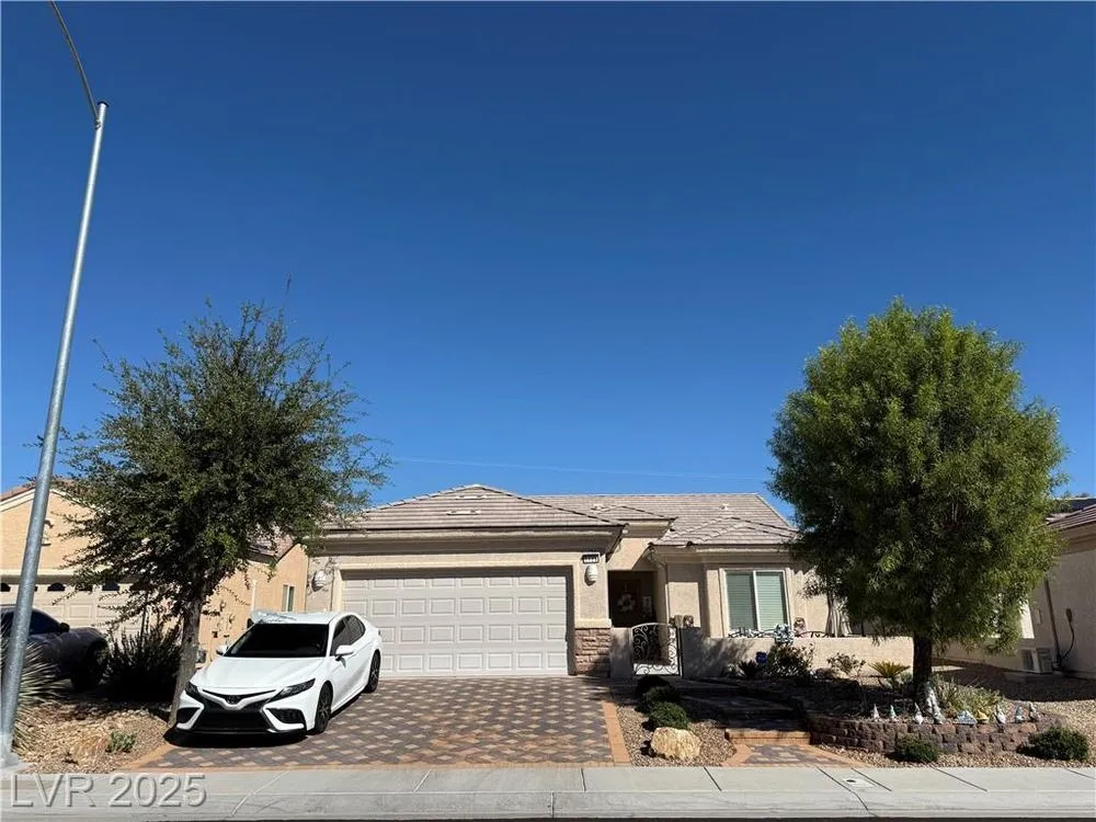 Enjoy your morning coffee from this beautiful courtyard on the HIGHLY POPULAR SINGLE STORY MODEL in the beautiful Sun City Aliante Golf Course Community! The upgrades in this home will WOW your fussiest buyer. This home offers 2 bedrooms, 2 bath and separate den. The beautiful kitchen gives you granite countertops, gorgeous stainless steel appliances, recessed lighting, coordinating back splash and roll out cabinet shelving. Beautiful tile flooring. Exquisite primary suite with HUGE walk-in closet, brand new upgrated shower,duel sinks and Upgraded light fixtures. Lots of roomy cabinets in the garage provide lots of extra storage space. Enjoy quite evenings on the gorgeous fully fenced yard with covered patio! You will feel like you are in a gorgeous model home, the minute you enter! WELCOME HOME *IDEAL 55+ ACTIVE COMMUNITY W/TENNIS,PICKLE BALL,CLUBHOUSE,FITNESS CENTER,COMMUNITY GOLF,INDOOR POOL & SPA,EXTENSIVE SOCIAL CALENDAR & CLUBS*SITUATED CLOSE TO SHOPPING,RESTAURANTS,ALL SERVICES.