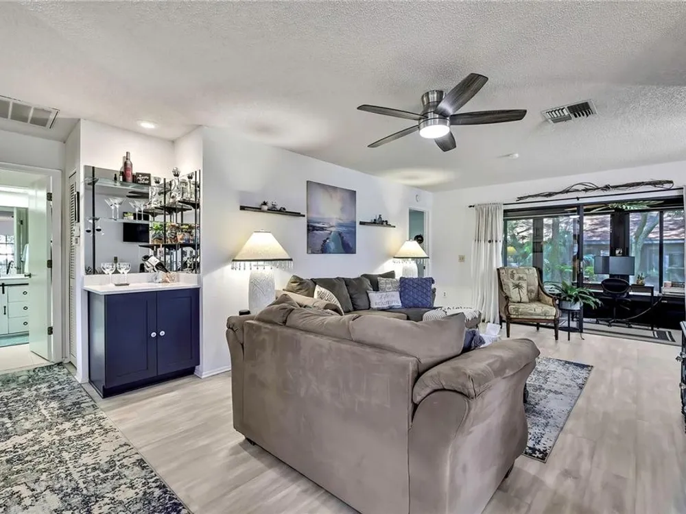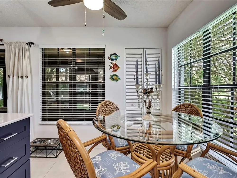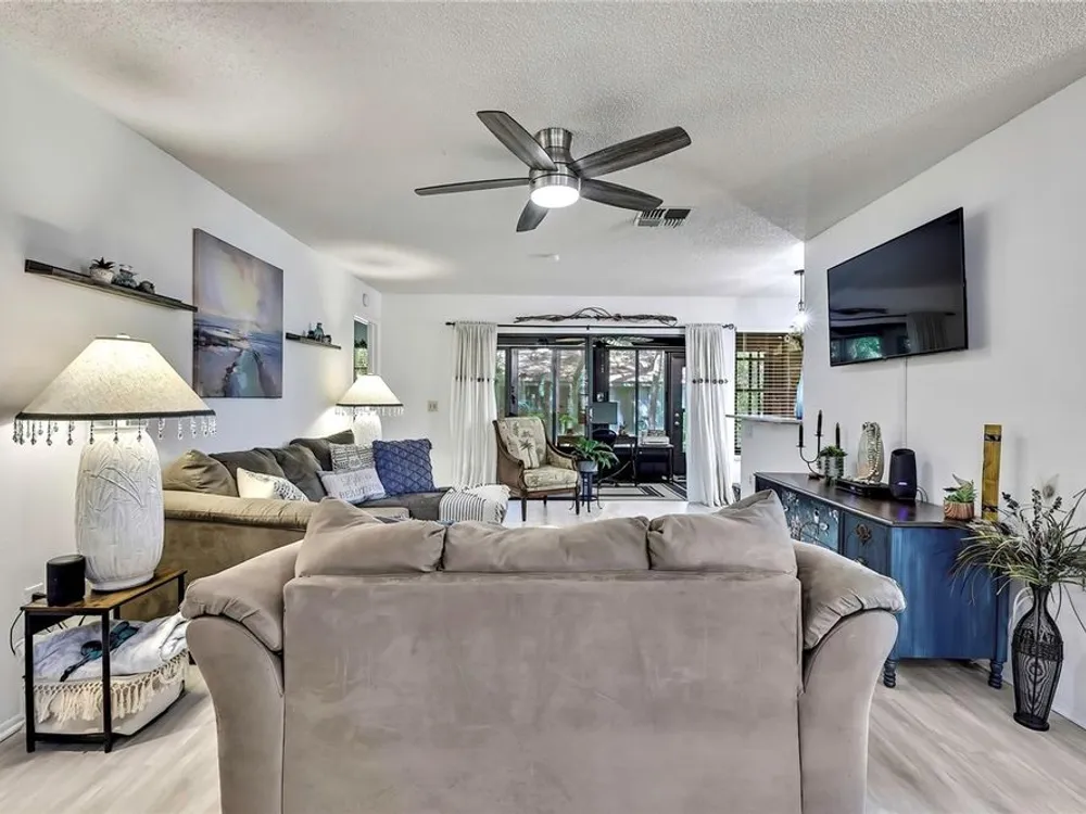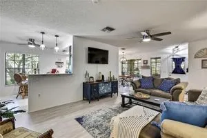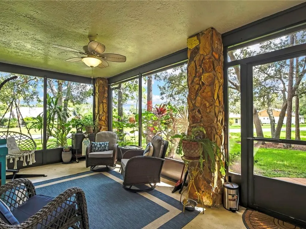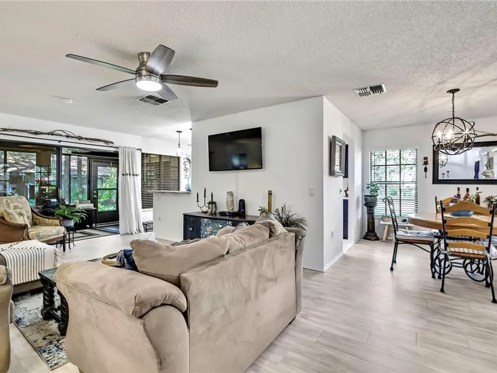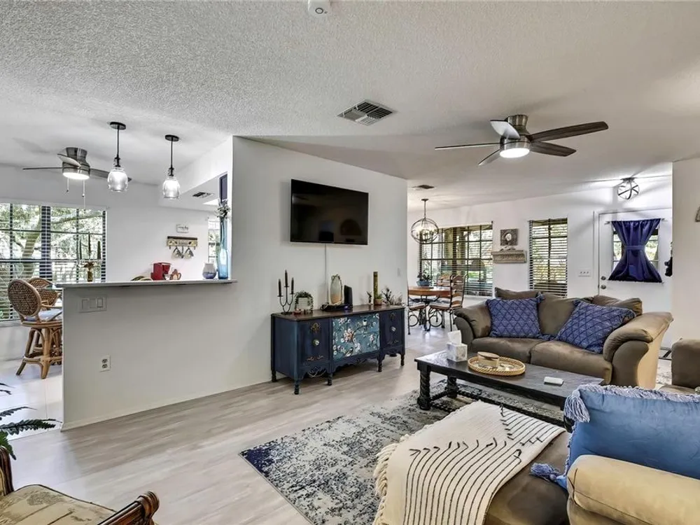 Welcome to maintenance-free living in Timber Pines, Spring Hill’s premier 55+ gated golf community. This beautifully updated 2-bedroom, 2-bath end-unit villa offers comfort, convenience, and an active Florida lifestyle. With 1,197 square feet of air-conditioned living space and 1,768 total square feet under roof, there’s plenty of room to relax, entertain, and enjoy life. Step inside to find luxury vinyl plank flooring, a freshly painted interior, updated lighting, and a modern kitchen with updated cabinets and appliances, creating a bright and welcoming space from the moment you enter. Both bedrooms are generously sized and feature walk-in closets for ample storage. At the rear of the home, an enclosed Florida room offers additional living space and is currently being used as a home office. Enjoy your morning coffee on the spacious screened front porch or take in the peaceful surroundings from this desirable end-unit location. The covered carport includes a secure storage closet for added convenience. This home also features motorized hurricane window coverings for added protection and peace of mind. Located just a short stroll from The Lodge and the Resident Activity Center, you'll have easy access to all the exceptional amenities Timber Pines has to offer including four golf courses, two clubhouses, a performing arts center, twelve lighted pickleball and tennis courts, two heated and cooled pools with spas, a fitness center, billiards room, woodworking shop, arts and crafts studio, shuffleboard, horseshoe pits, and bocce ball. The HOA fee includes lawn maintenance, basic cable, and internet, providing you with low-maintenance living and more time to enjoy the activities you love. Pet lovers will be pleased to know that this HOA does allow pets, unlike some other villa sections within the community. Conveniently located near shopping, dining, medical facilities, and just minutes to U.S. 19 and the Suncoast Parkway for easy access to Tampa International Airport, award-winning beaches, and world-class entertainment. Homes like this don’t last long in Timber Pines so schedule your private showing today and experience the lifestyle you've been waiting for.