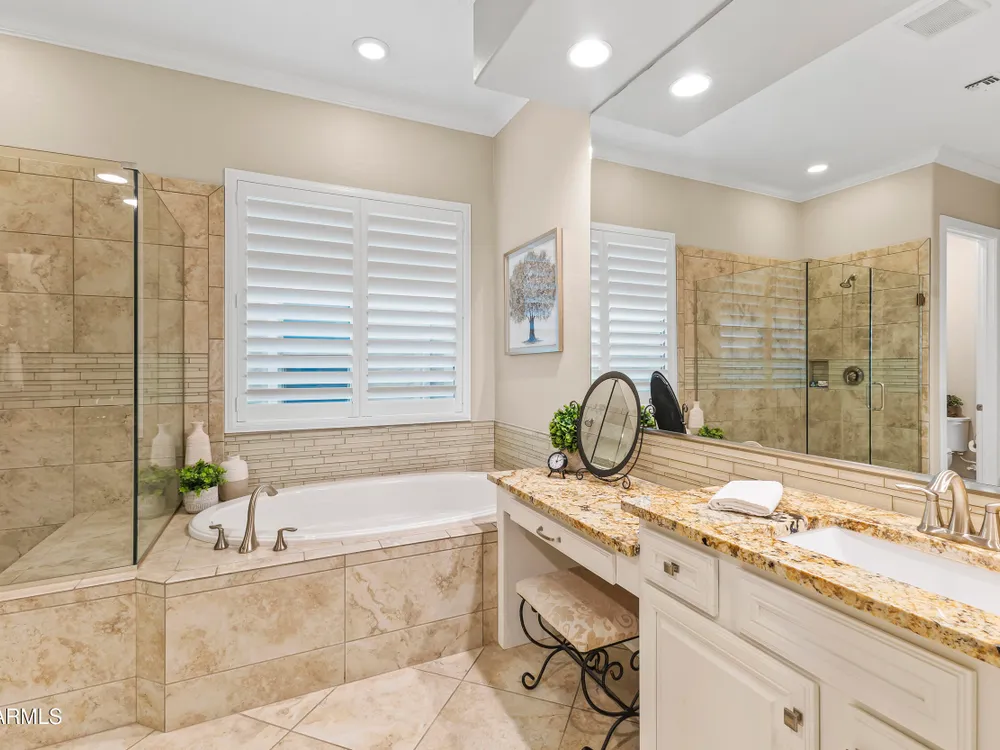 - Granite Counters, Double Vanity, 9+ Flat Ceilings, No Interior Steps, Separate Shwr & Tub