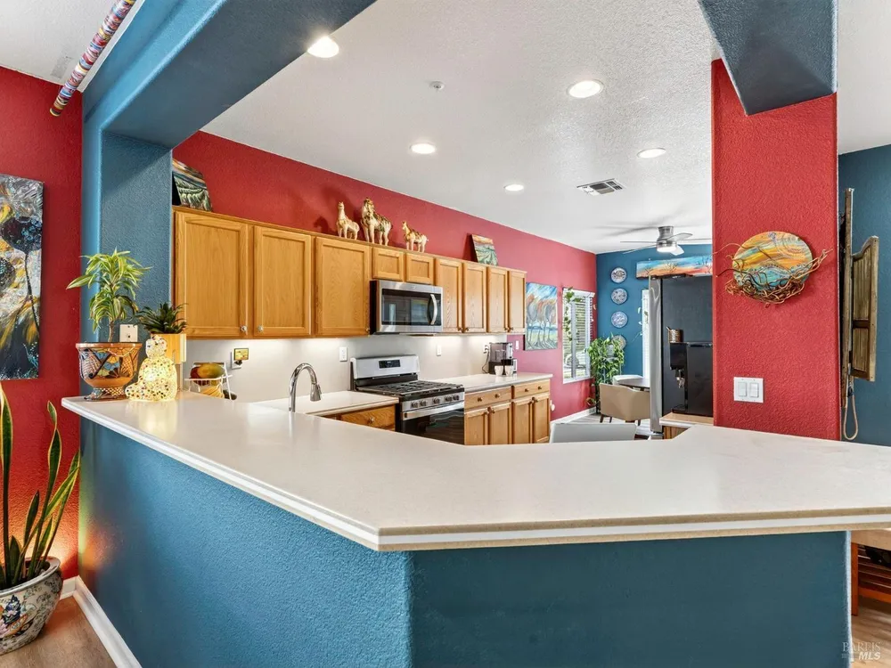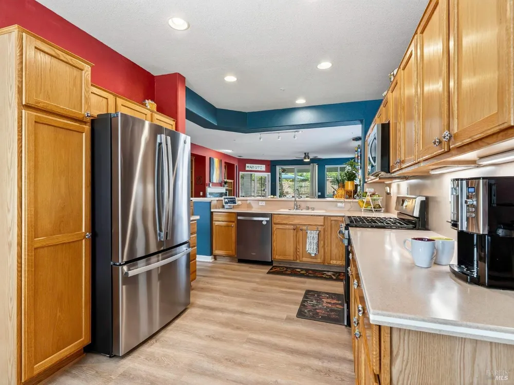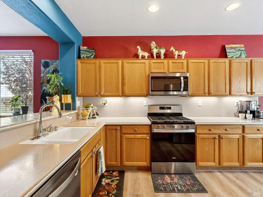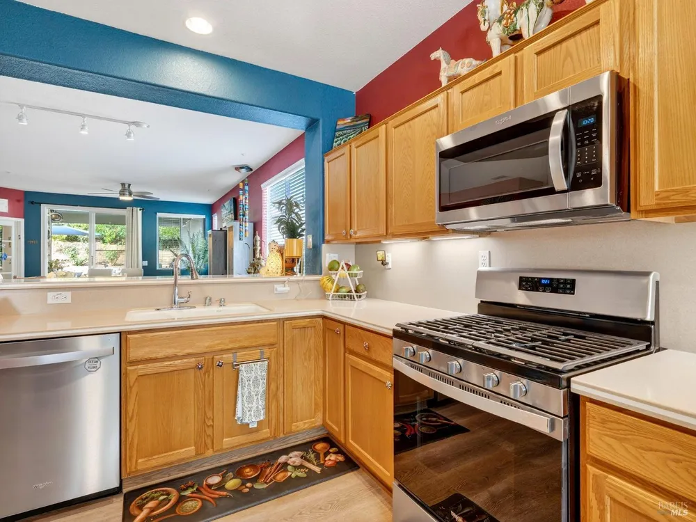 - Dishwasher, Disposal, ENERGY STAR Qualified Appliances, Free-Standing Gas Oven, Free-Standing Gas Range, Free-Standing Refrigerator, Gas Hookup, Gas Water Heater, Microwave, Self Cleaning Oven