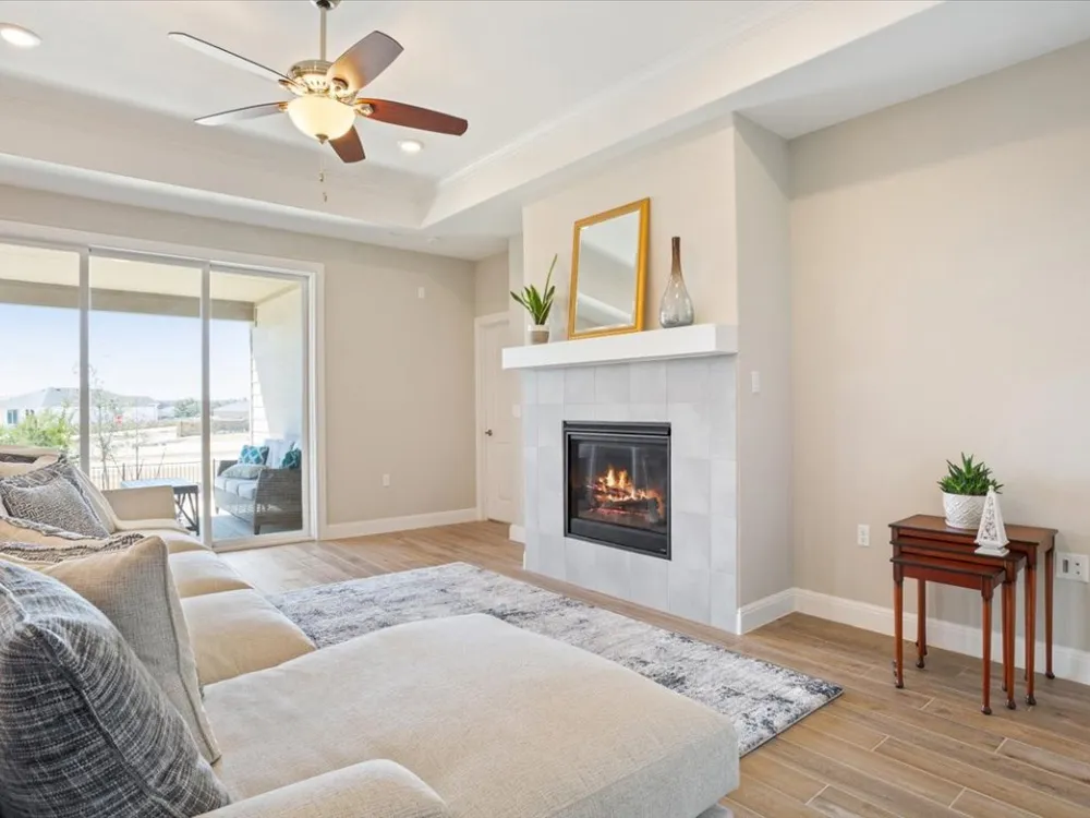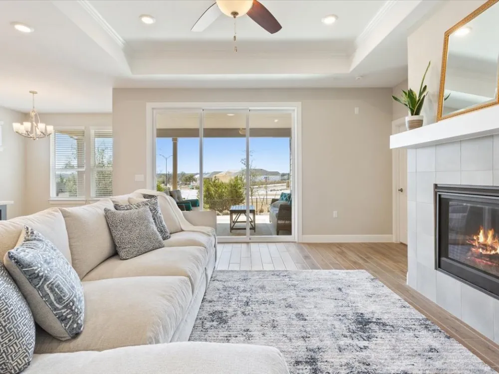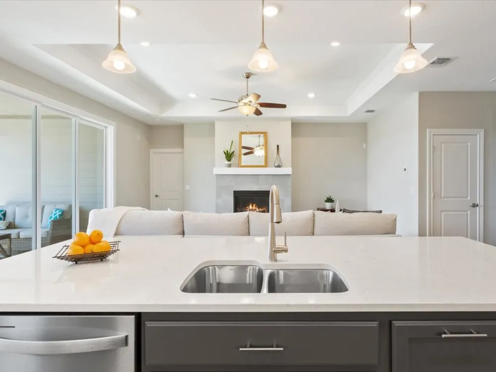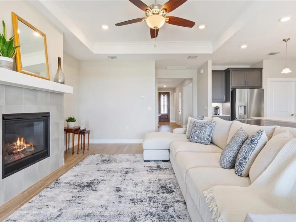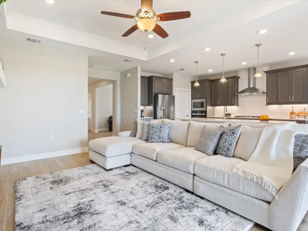 - Breakfast Bar, Tray Ceiling(s), Ceiling Fan(s), Crown Molding, Kitchen Island, Open Floorplan