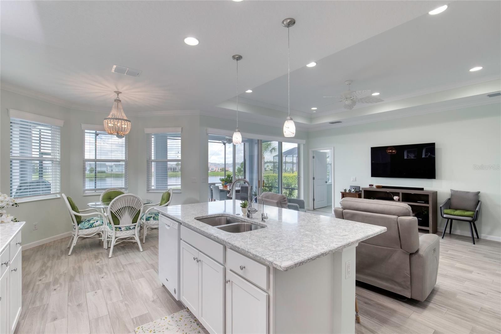 Exquisite Home! PRICED FOR QUICK SALE! Motivated Sellers! This stunning property offers FULL LAKE VIEWS and unforgettable sunsets from your extended Lanai complete with a natural gas line and grill for outdoor dining and entertaining. Inside, you'll find a thoughtfully upgraded layout featuring quartz countertops throughout, an open-concept kitchen with double oven, tile backsplash, and 42-inch soft-close white cabinets with crown molding. The spacious floor plan includes two bedrooms plus a flex room perfect for a home office or guest space. Additional upgrades include tile plank flooring, recessed lighting, crown molding, motorized blinds, and a deluxe primary suite with a huge walk-in shower, Large Cabinets, and huge closet. A whole-house water purification system and reverse osmosis drinking water at the kitchen sink. Located in the award-winning Latitude at Daytona Beach, which is more than aneighborhood, it's a lifestyle. Experience resort-style living with a vibrant town center, where live music, events, and spontaneous entertainment are part of everyday life. Choose from three heated pools, including a tropical lagoon pool, a sports pool, and an indoor lap pool, the private oceanfront beach club complete with pre-set loungers and umbrellas, also available. Sports enthusiasts can stay active with tennis, pickleball, bocce ball, and pool volleyball, while furry friends can enjoy the golf cart-friendly dog park. Also pottery or woodworking workshops, live performances at the theater, or relax at the Bar & Chill restaurant. All information recorded in the MLS is intended to be accurate but cannot be guaranteed.