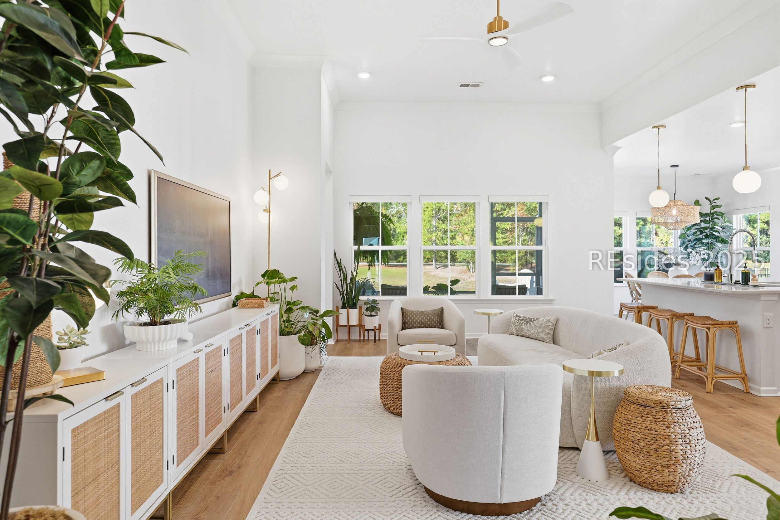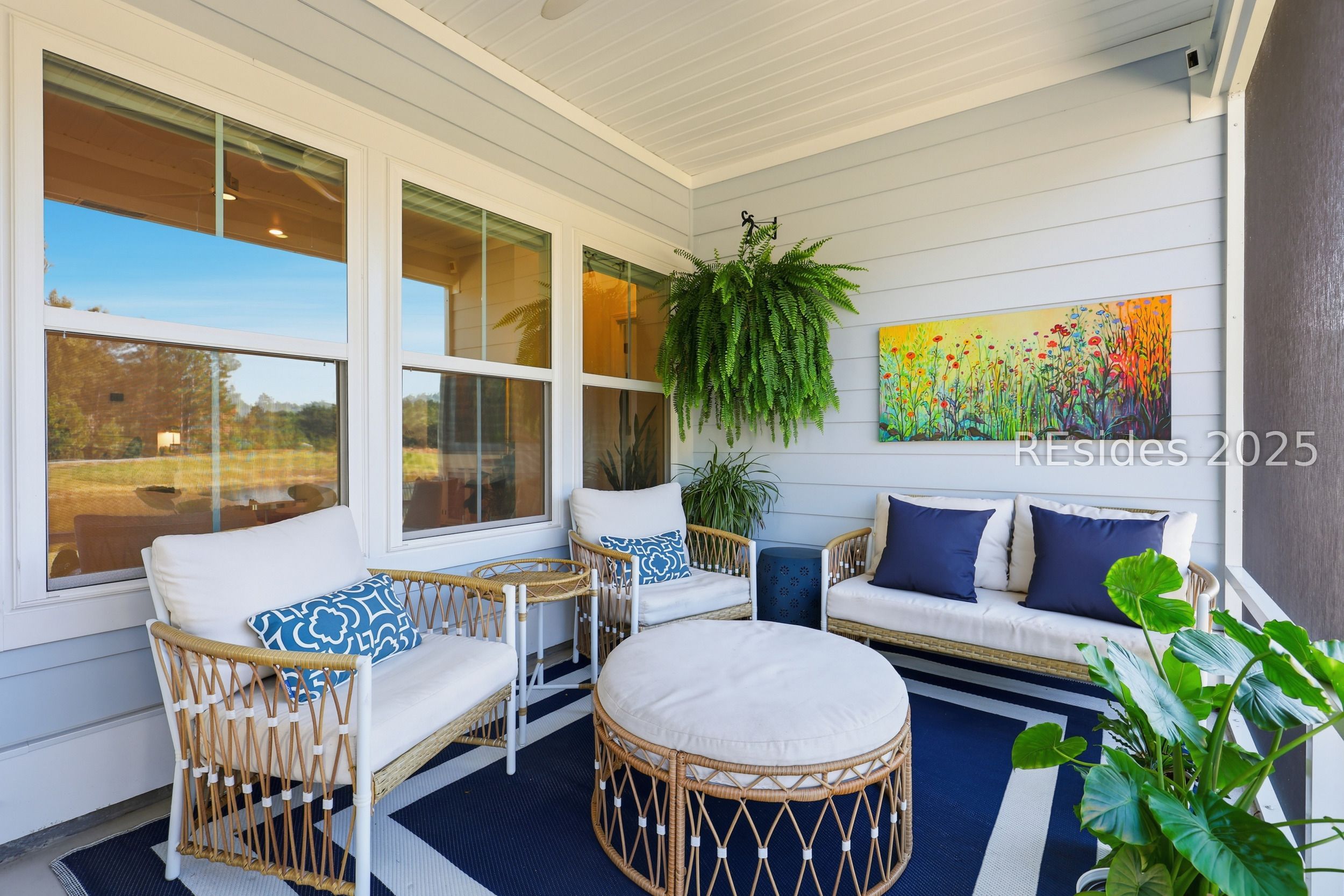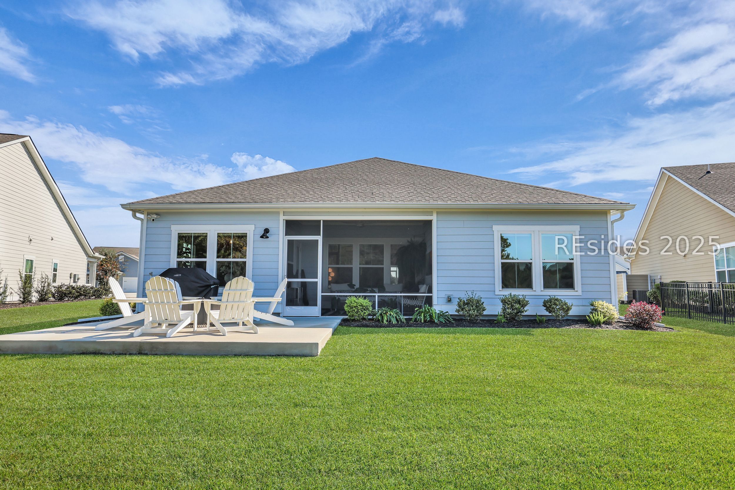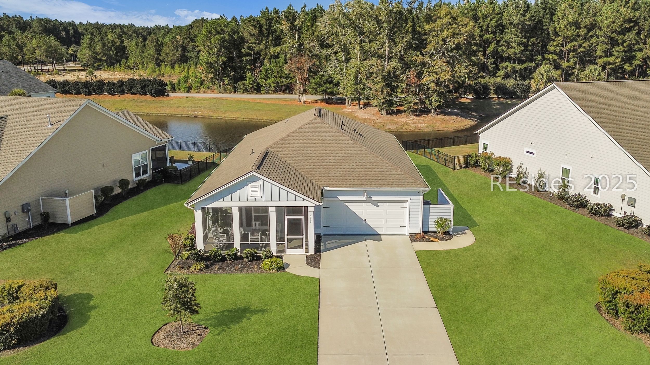 Enjoy lagoon and wooded conservation-easement views! Embrace the relaxed, Lowcountry lifestyle in this pristine 3 BR/2Bath Hilton Head Lakes home with Hardiplank siding, built in 2023 and better than new. Perfectly positioned on a quiet, gated cul-de-sac stree, this home offers an open layout filled with thoughtful upgrades - tall ceilings, crown moulding, gourmet kitchen, and a cozy office or den. You'll love the warm pine flooring, custom lighting, motorized blinds throughout and epoxy garage floors. High tech features include a Ring doorbell and Ring Security, front door smart lock, MyQ garage door opener and exterior garage light timer. Both front and back screened lanais make it easy to enjoy the Lowcountry breeze while sipping your morning coffee. The Public Golf Club at Hilton Head Lakes feautres a Tommy Fazio-designed 18-hole championship couse, a 36 acre practice facility, pool, fitness, social activites and a cafe. POA includes irrigation. Meticulously maintained - this one truly has it all!
