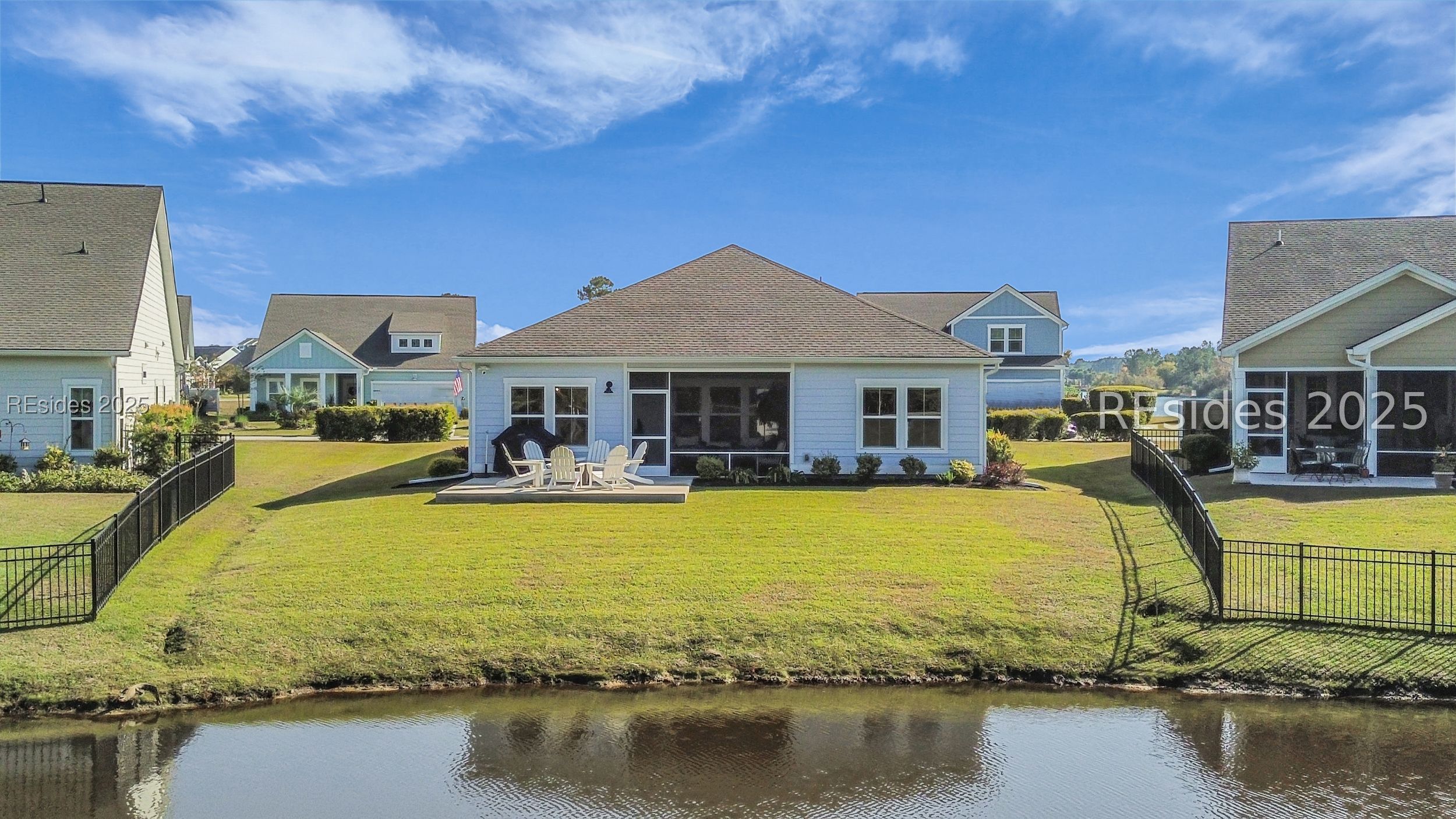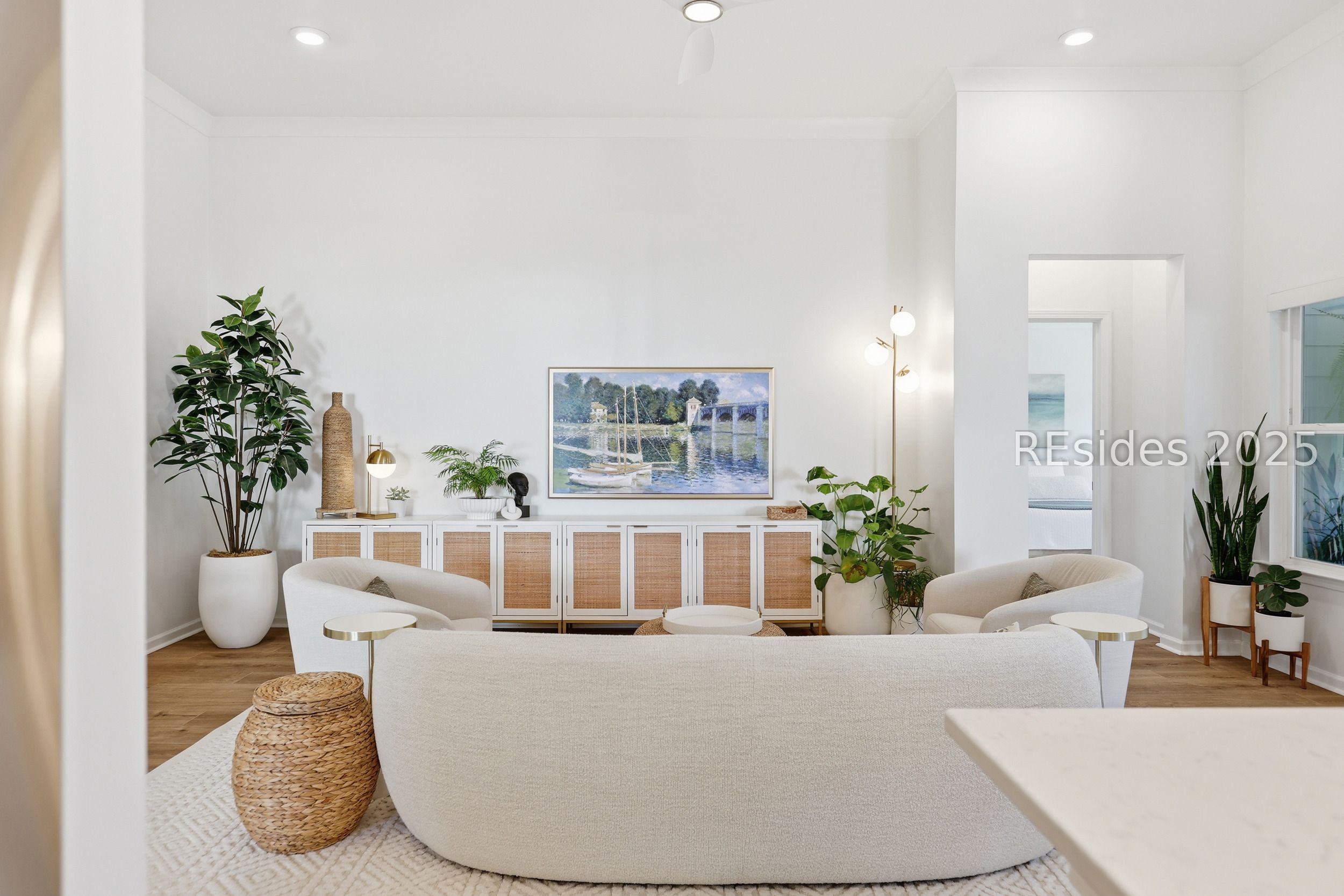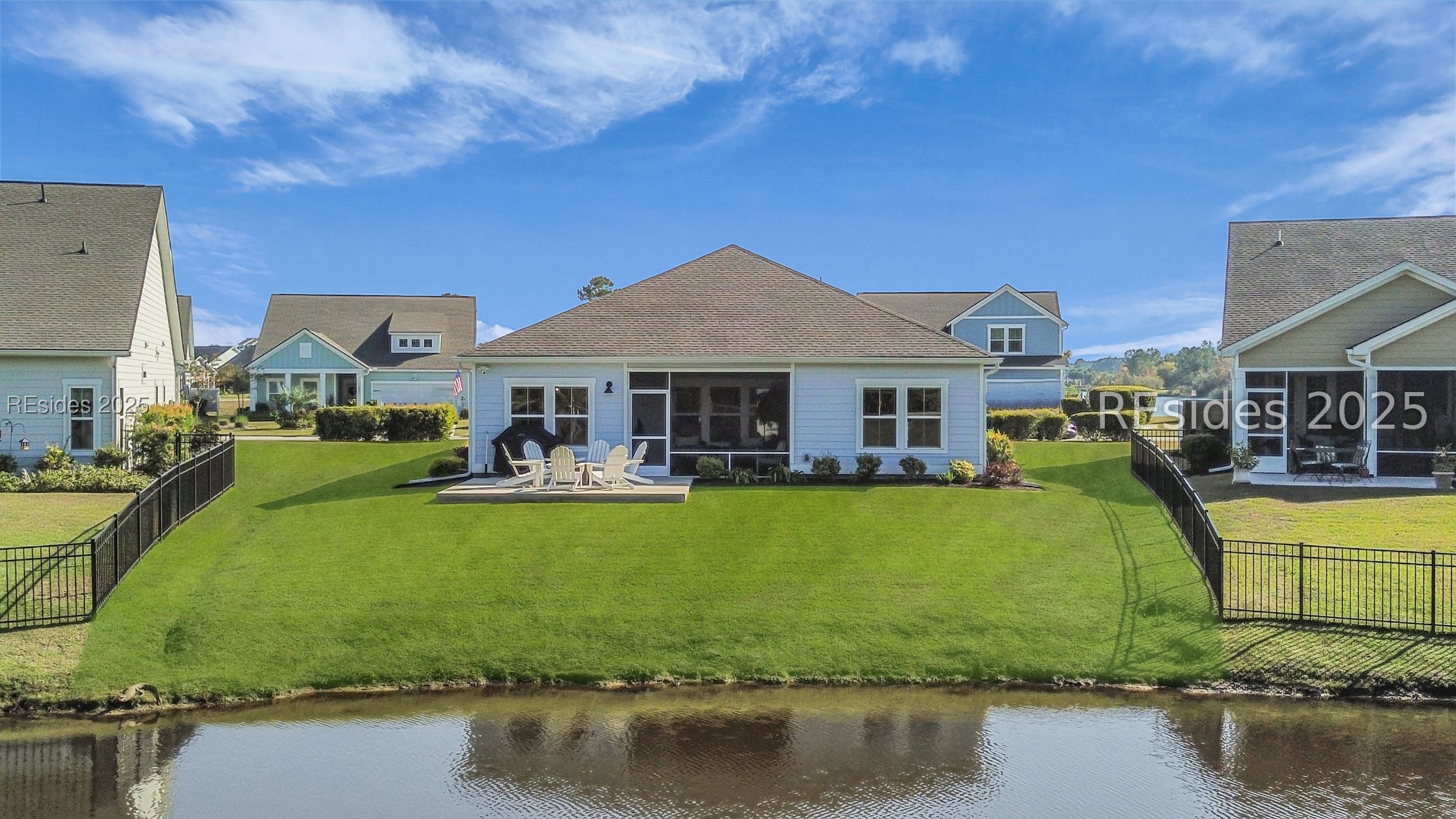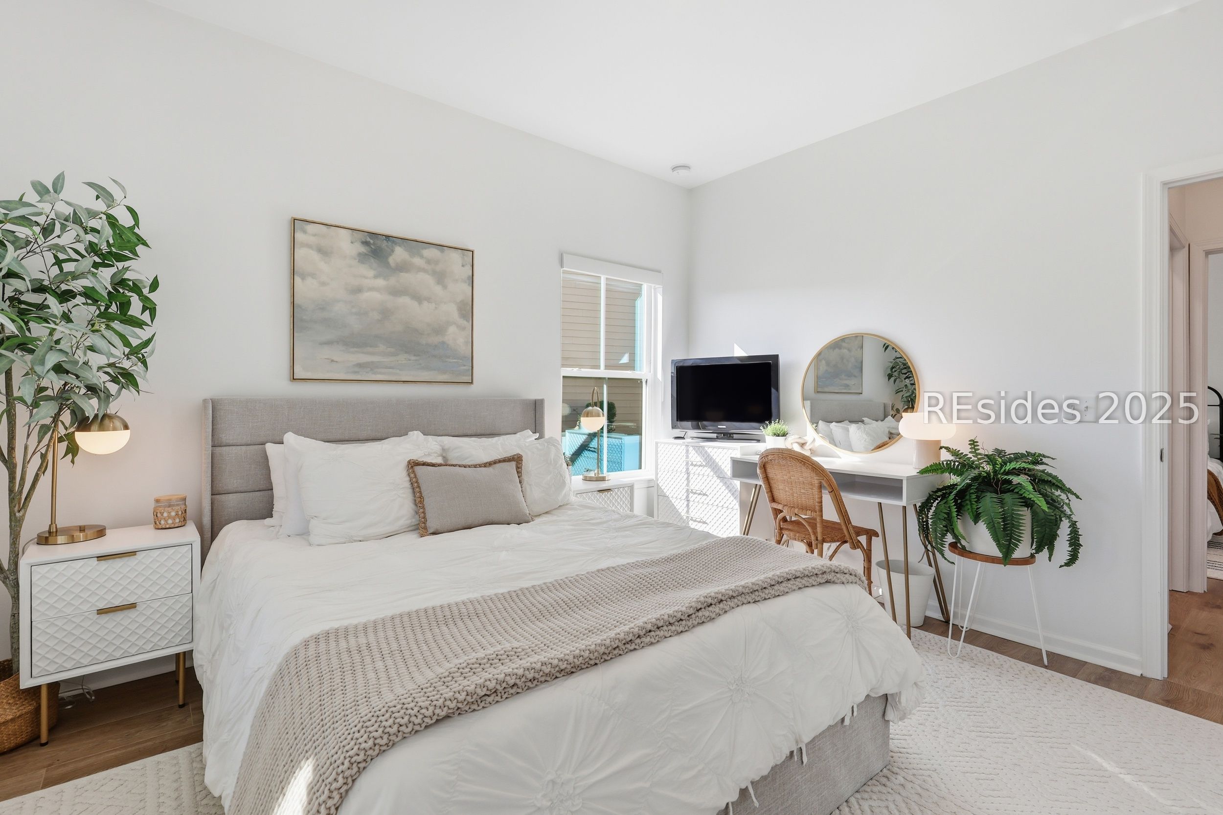 Enjoy lagoon and wooded conservation-easement views! Embrace the relaxed, Lowcountry lifestyle in this pristine 3 BR/2Bath Hilton Head Lakes home with Hardiplank siding, built in 2023 and better than new. Perfectly positioned on a quiet, gated cul-de-sac stree, this home offers an open layout filled with thoughtful upgrades - tall ceilings, crown moulding, gourmet kitchen, and a cozy office or den. You'll love the warm pine flooring, custom lighting, motorized blinds throughout and epoxy garage floors. High tech features include a Ring doorbell and Ring Security, front door smart lock, MyQ garage door opener and exterior garage light timer. Both front and back screened lanais make it easy to enjoy the Lowcountry breeze while sipping your morning coffee. The Public Golf Club at Hilton Head Lakes feautres a Tommy Fazio-designed 18-hole championship couse, a 36 acre practice facility, pool, fitness, social activites and a cafe. POA includes irrigation. Meticulously maintained - this one truly has it all!