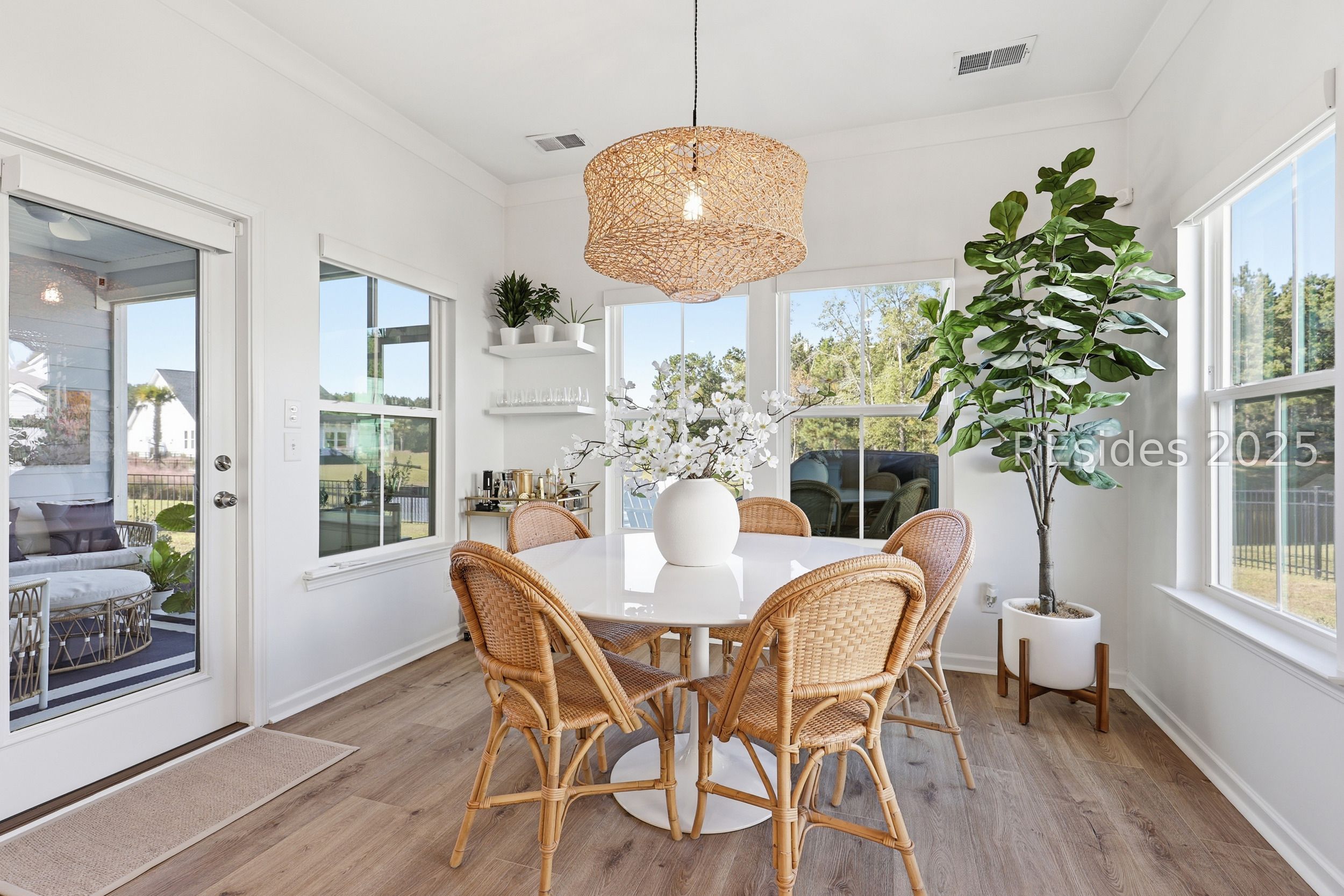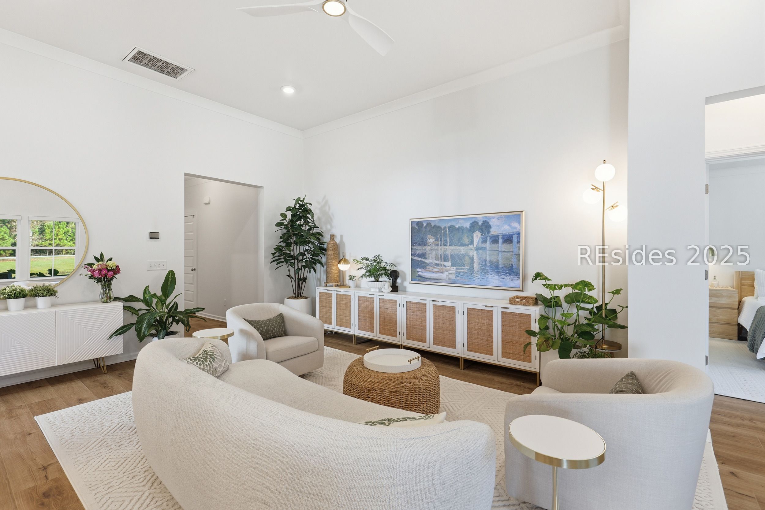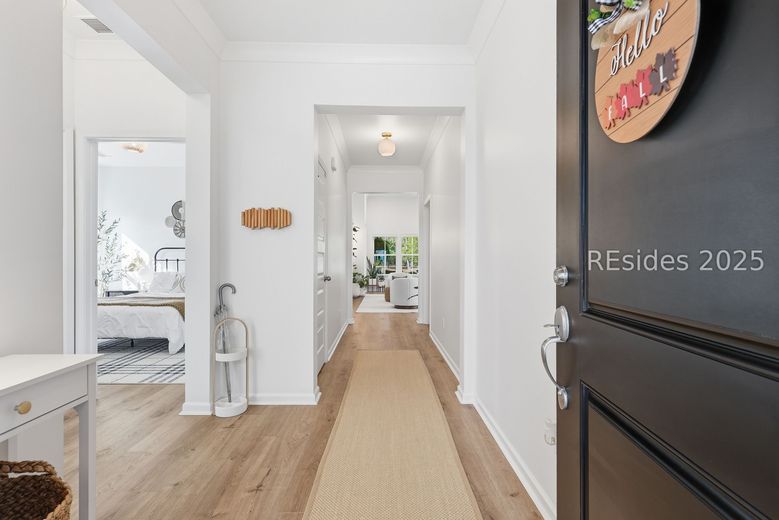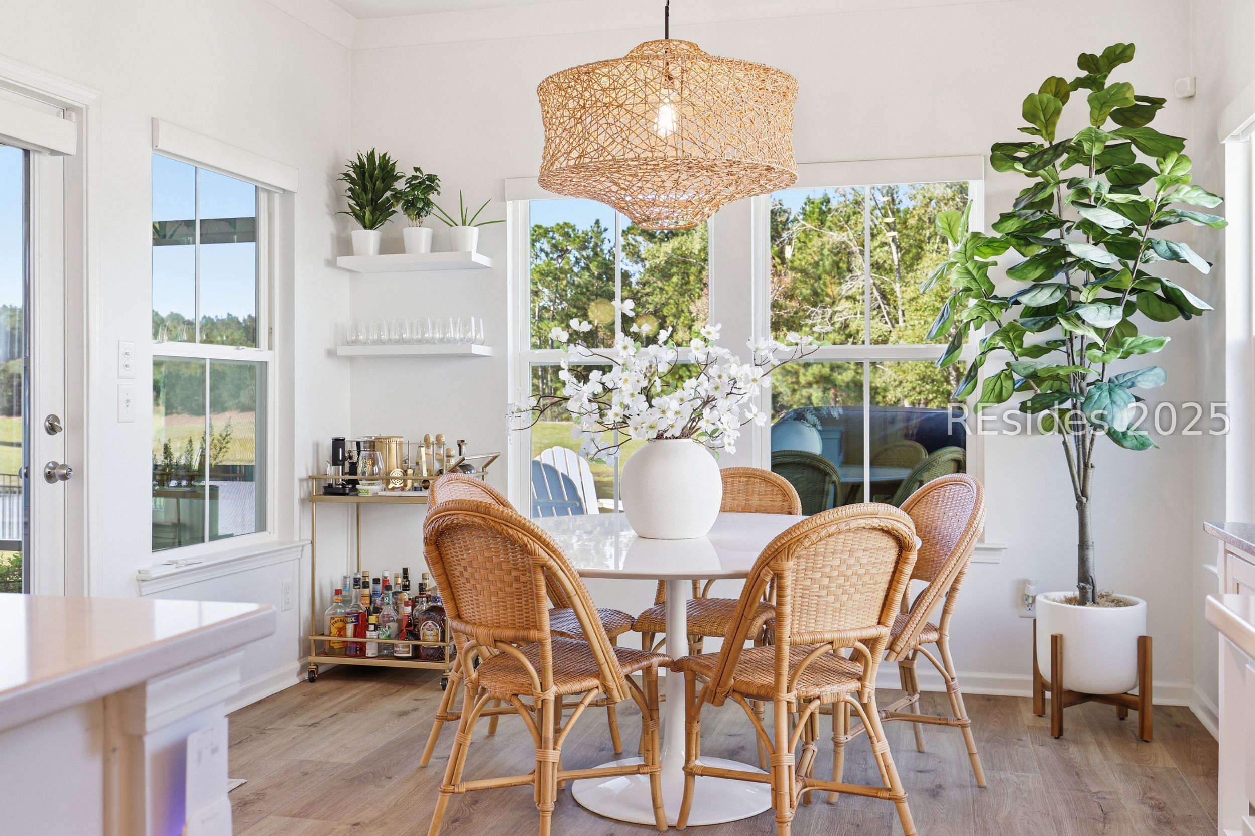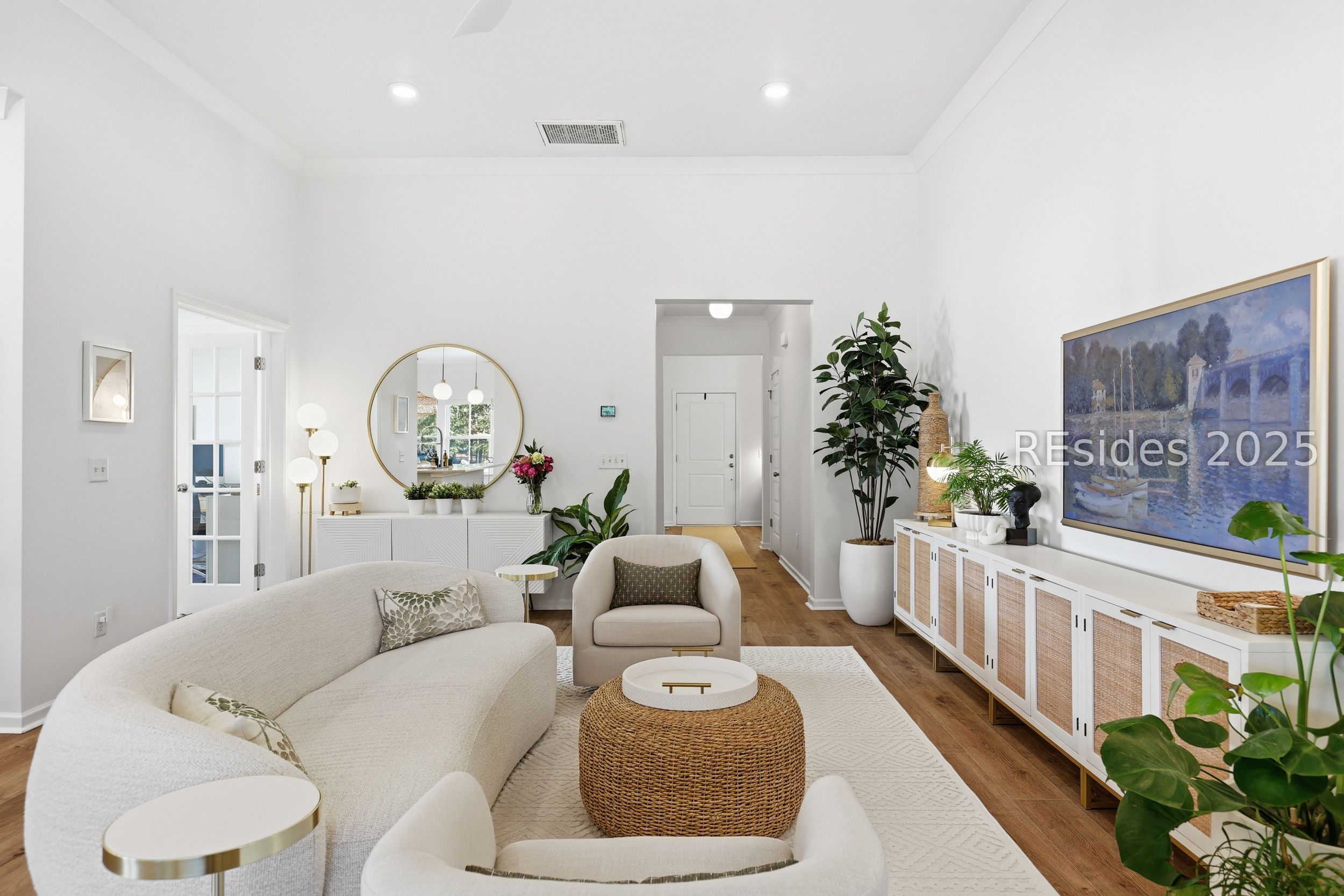 Enjoy lagoon and wooded conservation-easement views! Embrace the relaxed, Lowcountry lifestyle in this pristine 3 BR/2Bath Hilton Head Lakes home with Hardiplank siding, built in 2023 and better than new. Perfectly positioned on a quiet, gated cul-de-sac stree, this home offers an open layout filled with thoughtful upgrades - tall ceilings, crown moulding, gourmet kitchen, and a cozy office or den. You'll love the warm pine flooring, custom lighting, motorized blinds throughout and epoxy garage floors. High tech features include a Ring doorbell and Ring Security, front door smart lock, MyQ garage door opener and exterior garage light timer. Both front and back screened lanais make it easy to enjoy the Lowcountry breeze while sipping your morning coffee. The Public Golf Club at Hilton Head Lakes feautres a Tommy Fazio-designed 18-hole championship couse, a 36 acre practice facility, pool, fitness, social activites and a cafe. POA includes irrigation. Meticulously maintained - this one truly has it all!