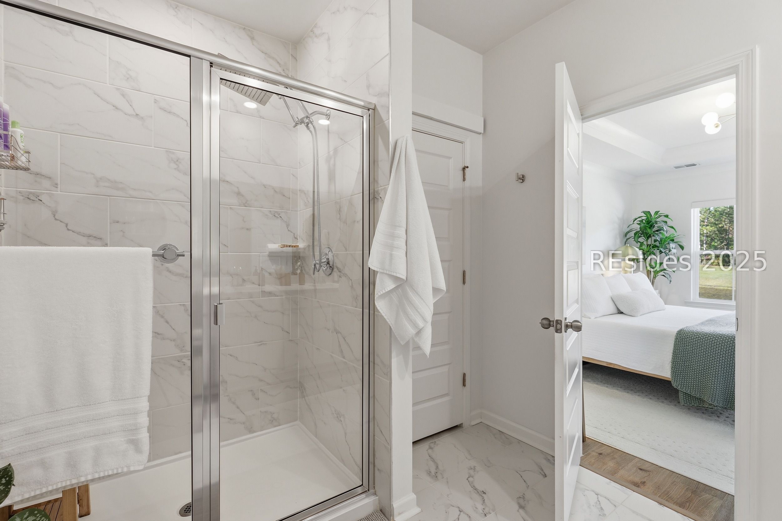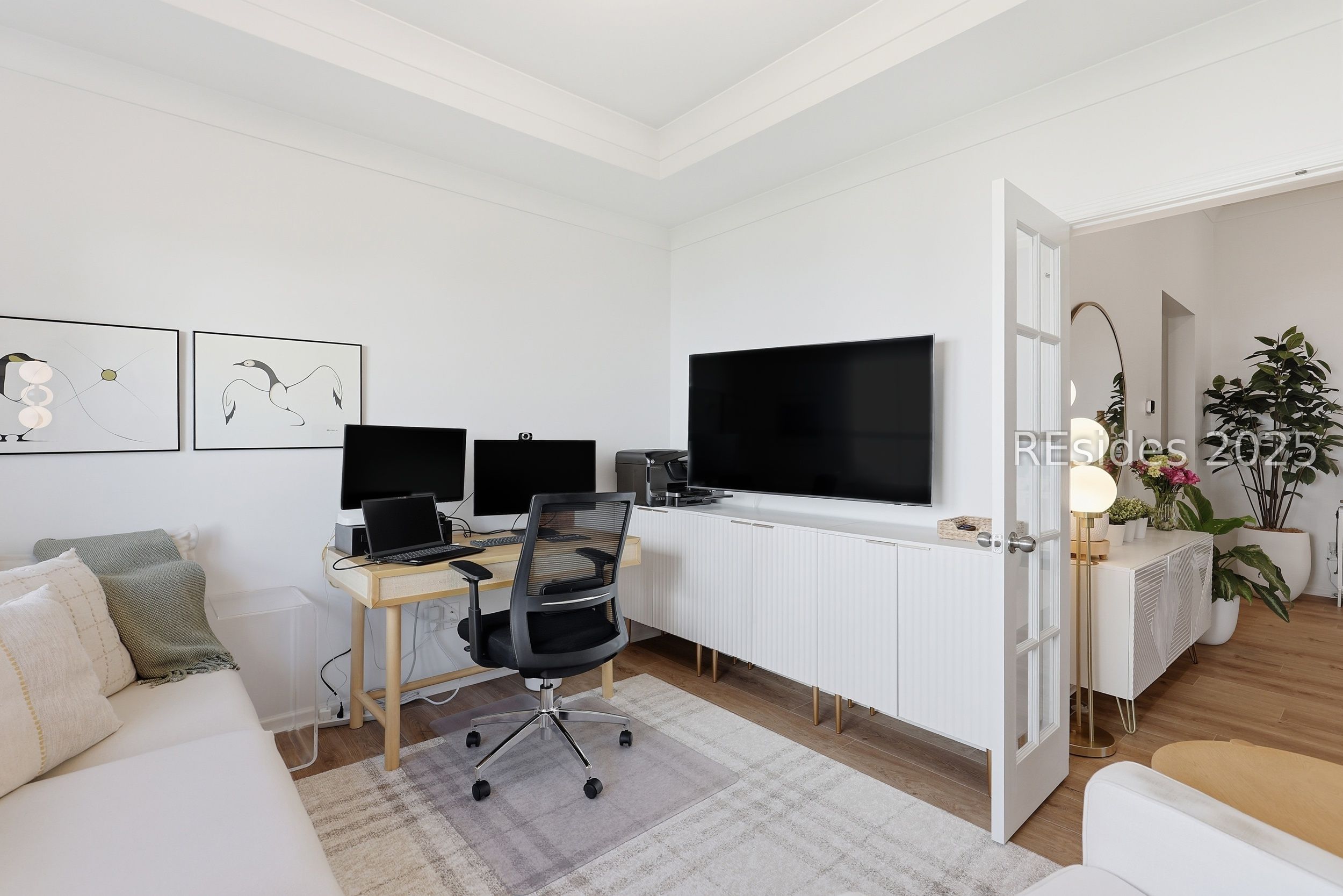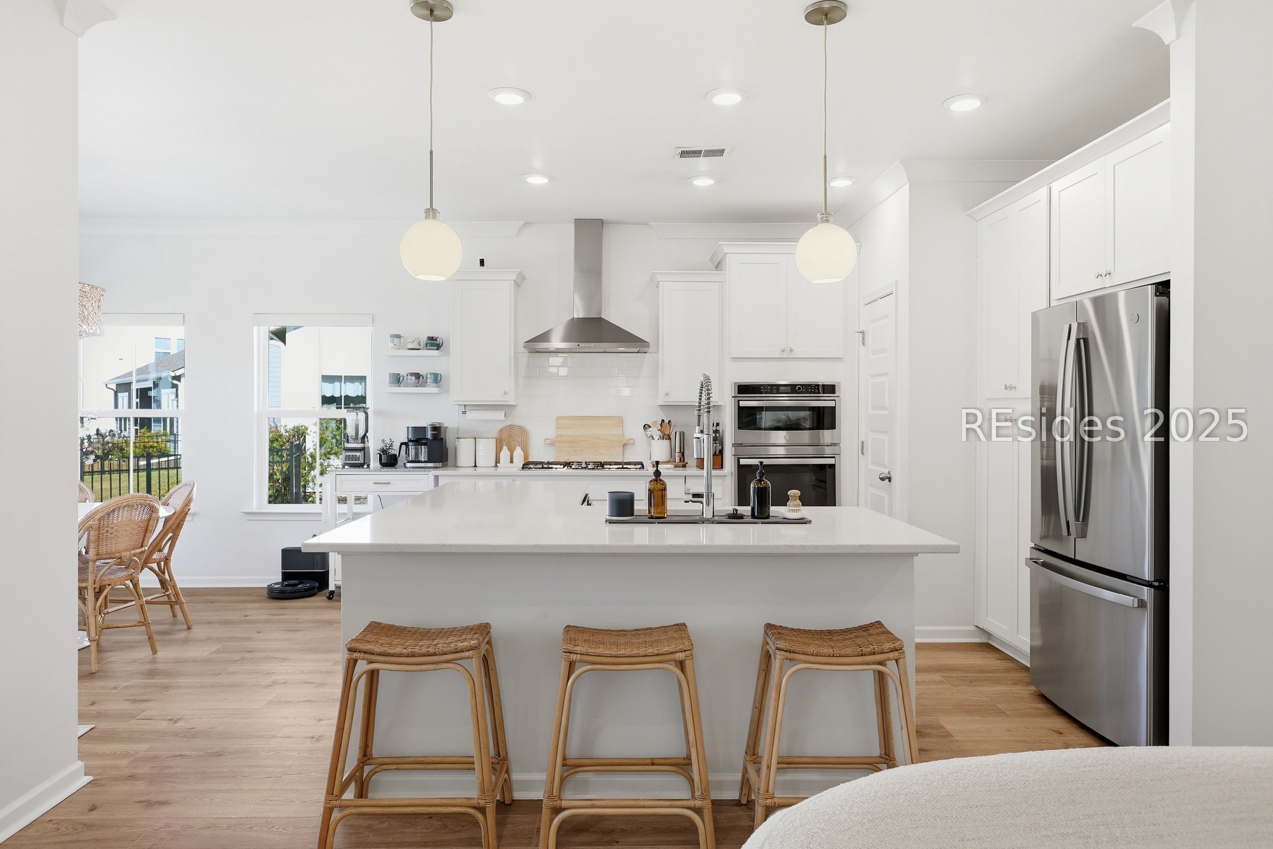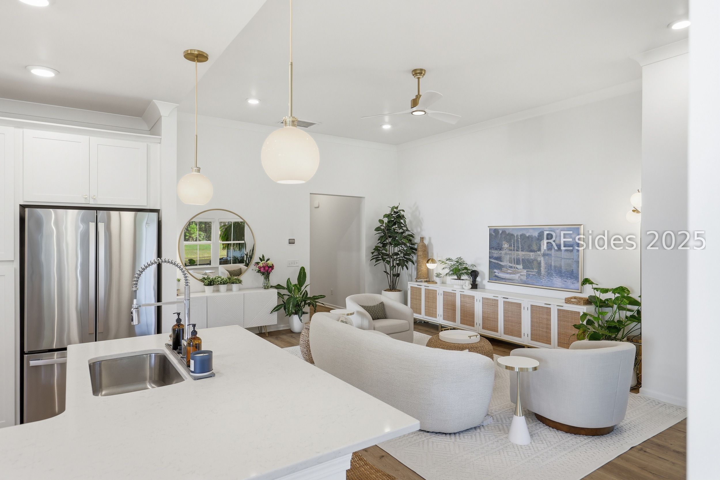 Enjoy lagoon and wooded conservation-easement views! Embrace the relaxed, Lowcountry lifestyle in this pristine 3 BR/2Bath Hilton Head Lakes home with Hardiplank siding, built in 2023 and better than new. Perfectly positioned on a quiet, gated cul-de-sac stree, this home offers an open layout filled with thoughtful upgrades - tall ceilings, crown moulding, gourmet kitchen, and a cozy office or den. You'll love the warm pine flooring, custom lighting, motorized blinds throughout and epoxy garage floors. High tech features include a Ring doorbell and Ring Security, front door smart lock, MyQ garage door opener and exterior garage light timer. Both front and back screened lanais make it easy to enjoy the Lowcountry breeze while sipping your morning coffee. The Public Golf Club at Hilton Head Lakes feautres a Tommy Fazio-designed 18-hole championship couse, a 36 acre practice facility, pool, fitness, social activites and a cafe. POA includes irrigation. Meticulously maintained - this one truly has it all!