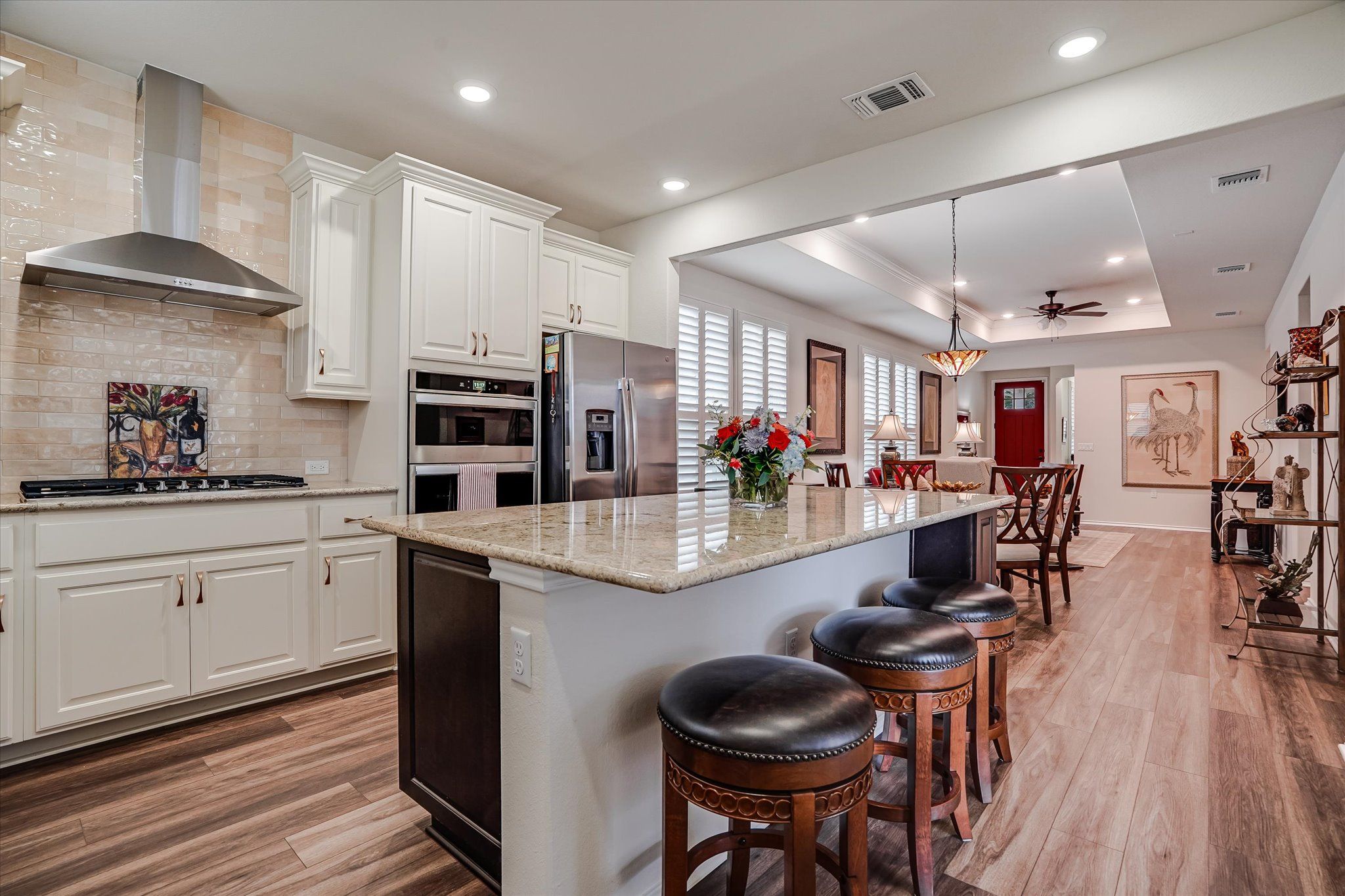 - Built-In Gas Oven, Built-In Gas Range, Dryer, Dishwasher, Exhaust Fan, Microwave, Refrigerator, Stainless Steel Appliance(s), Vented Exhaust Fan, Washer
