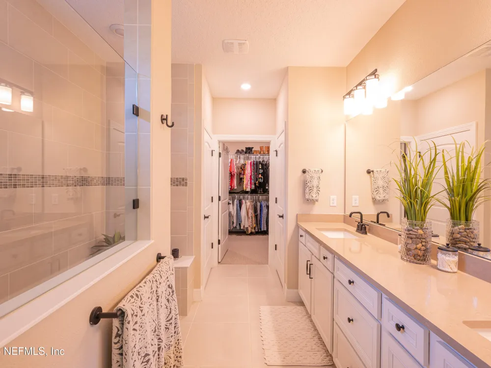 Beautiful home on a preserve lot. This popular Palmary open floor plan offers two bedrooms, two full bath and a spacious flex room. Built in drop zone from garage entry. Epoxied garage floor with 4 foot extention. Extended screened lanai facing a private back yard with tranquil preserve view.Located in the active 55+ community of Del Webb Nocatee. The community includes a restaurant, club house, work out room, two pools, Large outdoor Jacuzzi, pickle ball courts, tennis courts, bocci ball courts, and numerous clubs and activities. The residents also have access to all the Nocatee Community amenities including Splash and Spray parks, concerts in the park and numerous special events.