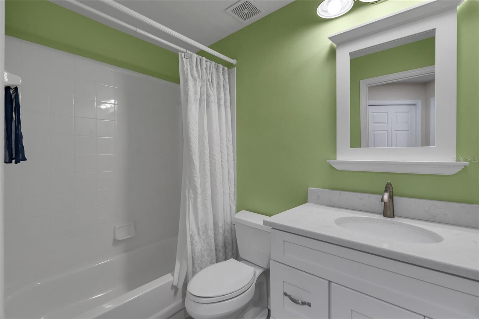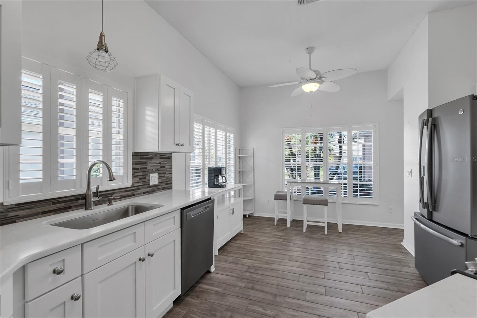 AGGRESSIVELY PRICED and MOVE-IN READY, this highly sought-after RidgeMont model is located in the 55+ guard-gated Ridgewood Lakes – High Vista community in Davenport. Homes in this community are rarely available, and this residence stands out with a BRAND-NEW ROOF INSTALLED IN 2025, extensive system upgrades, and a valuable BONUS ROOM THAT CAN FUNCTION AS A THIRD BEDROOM. Just a short walk from the private High Vista clubhouse, the home offers a bright, open layout with NEW SLIP-RESISTANT PORCELAIN TILE FLOORING, updated lighting, ceiling fans, and abundant natural light throughout the main living areas. The eat-in kitchen features QUARTZ COUNTERTOPS, soft-close cabinetry, a glass tile backsplash, and newer appliances, including a DISHWASHER REPLACED IN 2023. Plantation shutters frame the dining nook, and the kitchen flows seamlessly into the living room, highlighted by crown molding and sliding glass doors that open to the enclosed, south-facing lanai. The lanai extends the living space and overlooks a paved patio, providing a comfortable setting for relaxing or entertaining while maintaining privacy. The split-bedroom floor plan offers both comfort and flexibility. The primary suite includes a walk-in closet and a FULLY RENOVATED PRIMARY BATHROOM COMPLETED IN 2024 WITH QUARTZ COUNTERTOPS, PORCELAIN TILE FLOORING, A PORCELAIN TUB SURROUND, AND A NEW TOILET. On the opposite side of the home, the guest bedroom is located near a full bath, along with a DOUBLE-DOOR BONUS ROOM THAT IS LARGE ENOUGH TO BE USED AS A THIRD BEDROOM, home office, or flex space, adding significant functionality and long-term value. Additional improvements include a WHOLE-HOUSE WATER PURIFICATION SYSTEM INSTALLED IN 2022, a NEW HOT WATER HEATER IN 2022, and a NEW HVAC SYSTEM WITH BUILT-IN UV LIGHTS INSTALLED IN 2022. ALL COUNTERTOPS THROUGHOUT THE HOME ARE QUARTZ. The attached two-car garage includes a utility sink, shelving, attic access, and an automatic opener. The home IS BEING SOLD FURNISHED, offering a truly turnkey opportunity. Residents of High Vista enjoy exclusive access to a private clubhouse with a heated pool and spa, fitness center, library, pub, and an active calendar of social events. The community also offers walking and biking trails, pickleball, tennis, bocce, and shuffleboard courts, and is adjacent to the White Heron Golf Club. HOA SERVICES INCLUDE LAWN CARE, HIGH-SPEED INTERNET, BASIC CABLE, TRASH PICKUP, AND 24-HOUR STAFFED SECURITY. Conveniently located near shopping, dining, medical facilities, and major roadways with easy access to I-4, Orlando, and Central Florida attractions, this home delivers exceptional value, lifestyle, and low-maintenance living in one of Davenport’s most desirable 55+ communities.
