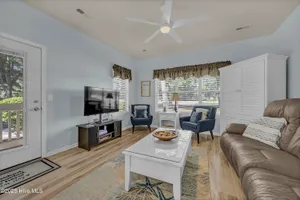 First-Floor End-Unit Condo in River Creek II - Sea Trail Plantation. This furnished 2-bedroom, 2-bathroom first-floor end-unit condo is now available in River Creek II, ideally located in the heart of Sunset Beach within the vibrant community of Sea Trail Plantation. The ground-level setting provides maximum convenience--no stairs to climb, easy access to parking, and the added privacy of an end location with abundant natural light. As you step inside the main villa, you'll find a welcoming unit. The cozy living room offers direct access to a private patio, where you can enjoy peaceful views of the surrounding greens. The kitchen is designed for efficiency, while a comfortable bedroom and full bath provide restful accommodations. For convenience, a stackable washer and dryer, as well as a hot water heater are included. The tasteful furnishings--sofas, chairs, tables, and more--make this space move-in ready. The lockout suite expands the possibilities of this property. It features an open layout with a bed, sofa, dresser, and TV, creating a self-contained living space. A kitchenette with a refrigerator, microwave, and sink allows for easy meal preparation. With its own private entry, this suite is ideal for visiting guests, extended family, or as a rental opportunity to generate additional income. Living in Sea Trail Plantation means access to an unmatched collection of amenities. You'll enjoy both indoor and outdoor pools, a sauna, and a fitness studio offering yoga and Pilates. Outdoor recreation includes tennis and pickleball courts, bocce, horseshoes, and scenic walking trails. The property is located on the Maple Course, one of Sea Trail's three premier golf courses, giving you direct access to championship play. Additional conveniences include exclusive private parking at Sunset Beach, just a short distance away, as well as community clubhouses with dining, lounges, and full-service golf shops.