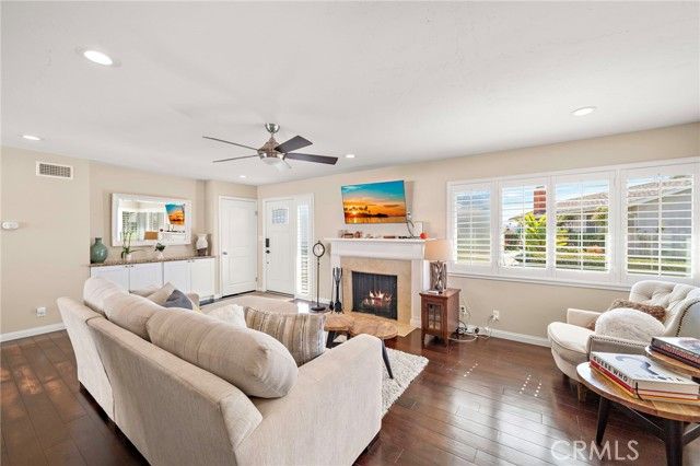 Welcome to 213 Monte Vista, nestled in the highly sought-after Bay Cliff Village community. This spacious single-level home offers the perfect blend of comfortable coastal living and a relaxed seaside lifestyle, with the captivating Pacific Ocean just moments away and refreshing ocean breezes year round. Designed for 55+ living, this charming beachside residence provides both comfort and convenience in an unbeatable location. The bright and inviting living area features a cozy fireplace and warm wood flooring that flows seamlessly throughout the home, creating a welcoming and open atmosphere. The beautifully updated kitchen boasts crisp white cabinetry, granite countertops, and stainless steel appliances. A spacious dining area with sliding glass doors with plantation shutters opens to the large backyard, where a private patio creates a serene retreat, perfect for relaxing or entertaining family and friends. The generous primary suite offers mirrored closet doors and an en-suite bathroom complete with a dual-sink vanity and granite countertops. The secondary bedroom is also spacious and features mirrored closet doors, providing comfort and flexibility for guests or a home office. With only one attached wall, it feels like a stand alone home. The attached garage offers secure parking along with an additional assigned parking space conveniently located next to the home. Residents of Bay Cliff Village enjoy a prime coastal location within walking distance to the beach and scenic bluff-top walking trails, and just a short drive to the San Clemente Pier, local restaurants, and the San Clemente Outlets. Perched on a bluff above the ocean, this exceptional property offers incredible coastal weather, refreshing ocean air, and the perfect opportunity to enjoy the very best of Southern California beach living!