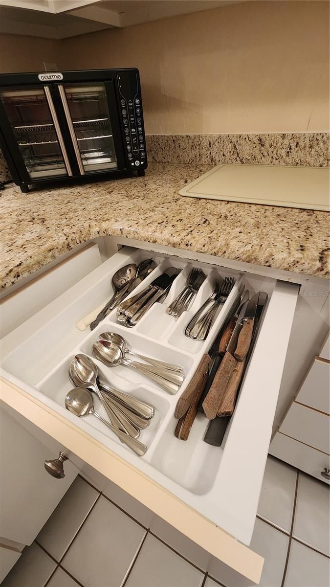 - Ceiling Fan(s), Elevator, Living/Dining Room, Main Level Primary, Stone Counters, Window Treatments