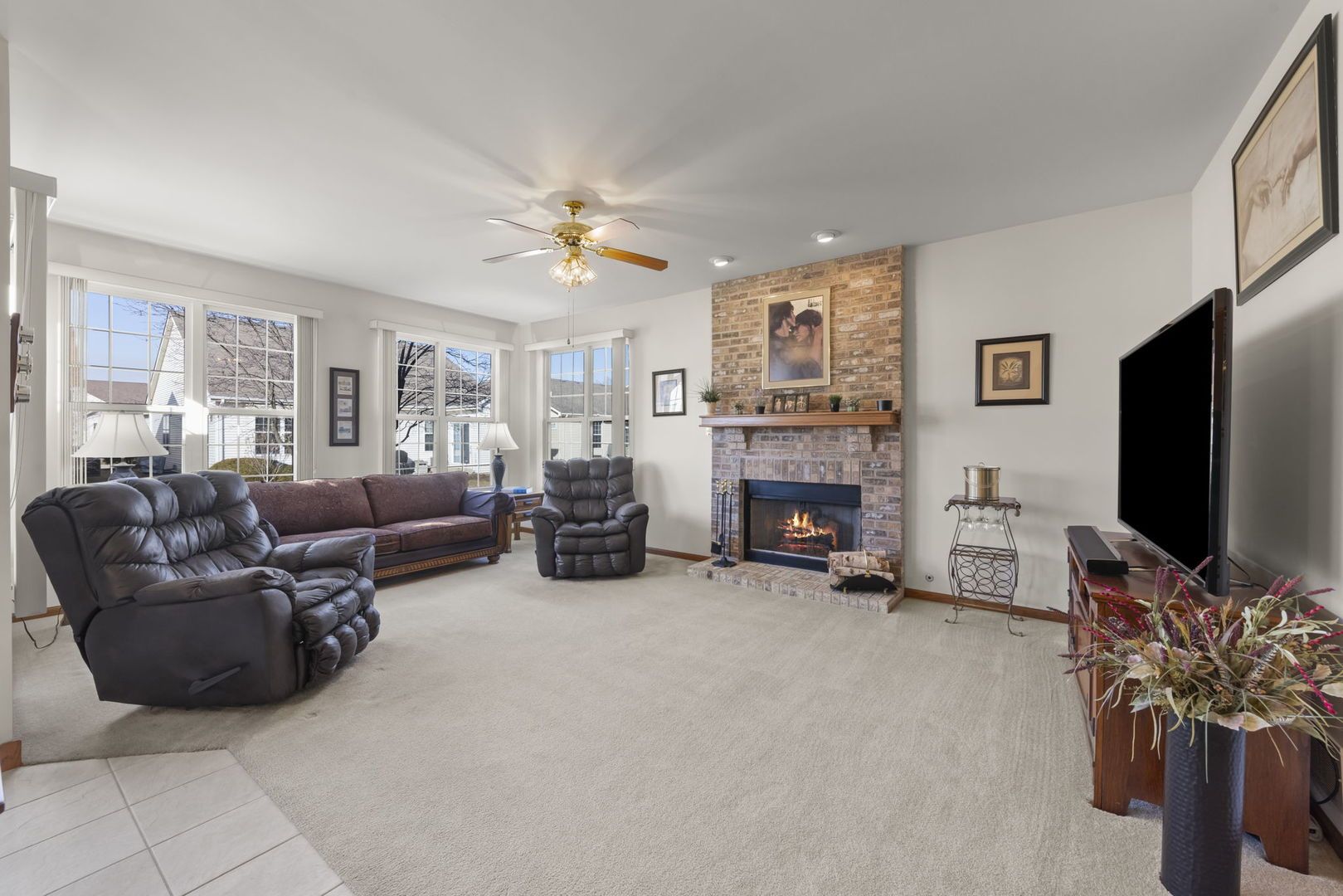 Welcome to one of the most exceptional Greenbriar models to ever hit the market-an incredibly rare dual primary suite home with a massive finished basement, ideally located within walking distance to the clubhouse and resort-style amenities in the highly sought-after Carillon Lakes 55+ community. This beautifully maintained residence offers 2 spacious primary bedrooms, 3 full baths, and a versatile den/office, along with a large separate living room, formal dining room, and an extended family room designed for both comfort and entertaining. The open-concept layout features 9-foot ceilings and abundant windows that fill the home with natural light, creating a bright and airy feel throughout. The extended family room showcases a cozy fireplace with gas starter and gas logs, while the kitchen is appointed with 42" raised panel cabinetry, stainless steel appliances, Corian countertops, a breakfast bar, and two generous pantries. The sunny eating area opens through sliding glass doors to a stunning 12' x 25' brick paver patio overlooking serene, stocked fishing lakes-an ideal setting for morning coffee or evening gatherings. The luxurious primary suite offers a spacious 15' x 17' bedroom with room for a sitting area, two closets including a large walk-in, and a private bath with double vanity, separate shower, and soaking tub. The second primary suite features a walk-in closet and private access to a full bath, perfect for guests or related living. The den can easily serve as a third bedroom, and the separate laundry room includes a full-size washer, dryer, and utility sink. What truly sets this home apart is the extraordinary 36' x 41' finished basement-complete with a full bath and an enormous storage area-making it the only Greenbriar of its kind with this amount of additional living and storage space. The home also features a 2-car attached garage with insulated and painted walls and a durable epoxy-coated floor, offering both functionality and a polished finish. Major updates include a new roof and water heater in 2020 and a new furnace and air conditioner in 2022. Residents of Carillon Lakes enjoy an 18,000-square-foot clubhouse with indoor and outdoor heated pools, hot tub, state-of-the-art fitness center, aerobics and dance studio, ballroom, hobby and game rooms, over 40 clubs, pickleball and tennis courts, bocce ball, a 3-hole golf course, three stocked lakes, scenic walking and biking paths, community garden plots, and even a separate pool and playground for visiting grandchildren-all conveniently located near shopping, dining, and major highways. This is truly a one-of-a-kind opportunity-schedule your private showing before it's gone.