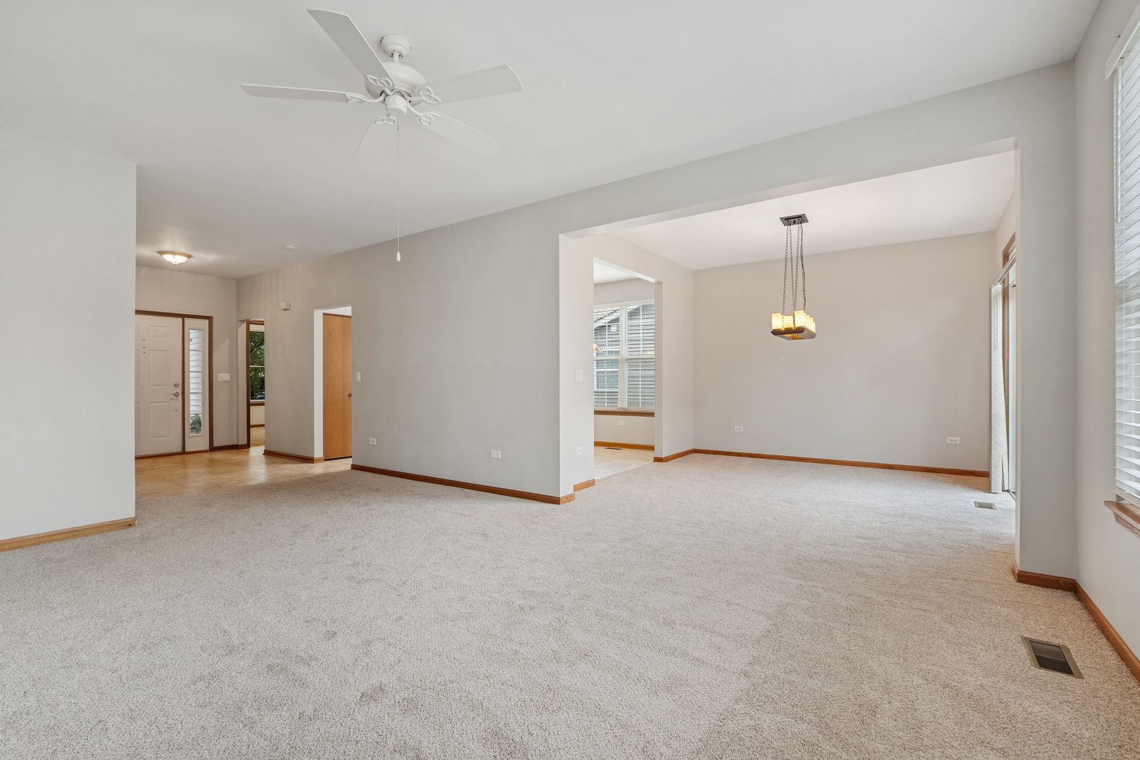 Move-in ready RANCH on one of the largest lots in Carillon Lakes 55+ Gated Community! Great Townhome alternative, with more windows, more privacy, with the same full service of the HOA! Premium location with a spacious backyard and pond views from the front. UPDATES THROUGHOUT - Furnace - 2024, Paint & Carpet 2025, Newer Washer & Dryer, Updated Hot Water Heater, MyQ garage door opener. This 2 bed, 2 baths model, features an open layout, 9' ceilings, and plenty of storage space. The living and dining can fit most any furniture combination. Fantastic open floor plan. Living room is flooded with natural light. Dining area with newer chandelier and sliding doors to patio. Eat-in kitchen features oak cabinets, great counter space, appliances, planning desk, and plenty of space for a table! Primary suite offers walk-in closet and private bath with double vanity, soaking tub, and separate shower. Second bedroom ideal for guests, office, or hobbies. Enjoy the private patio with gas line for grilling. 2-car garage, excellent storage, and radon system. Resort-style amenities: gated community, private clubhouse, pools, fitness center, golf, tennis, lakes, and walking paths. PRIME LOT-don't miss out!