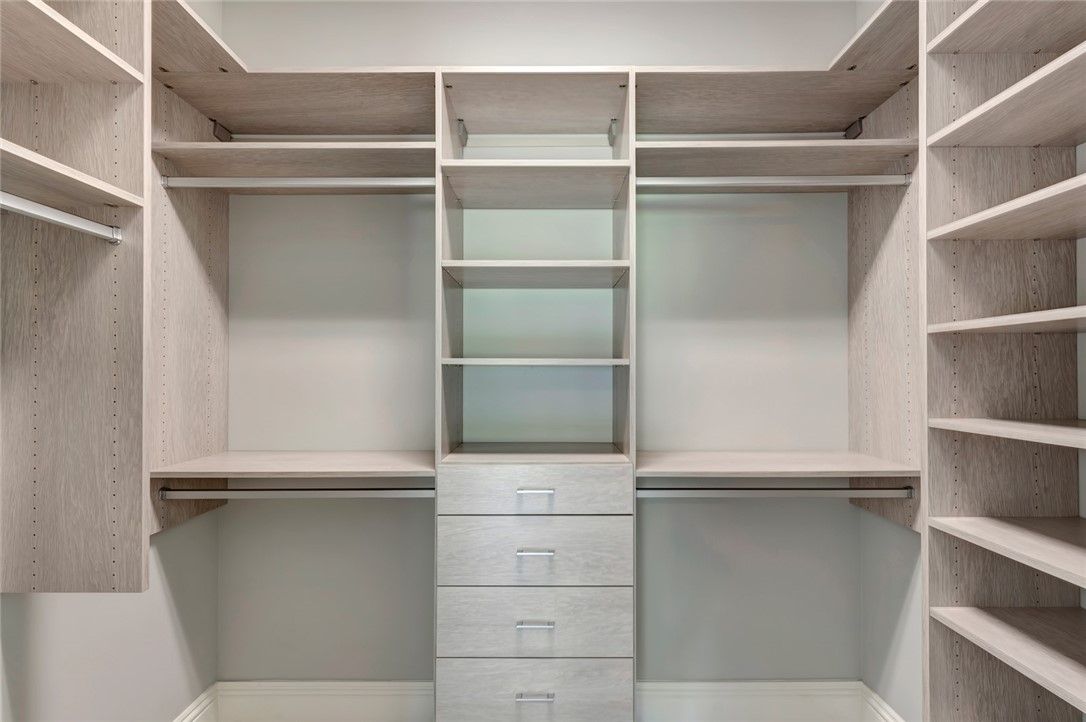 - Closet Cabinetry, Crown Molding, High Ceilings, Kitchen Island, Primary Downstairs, Split Bedrooms