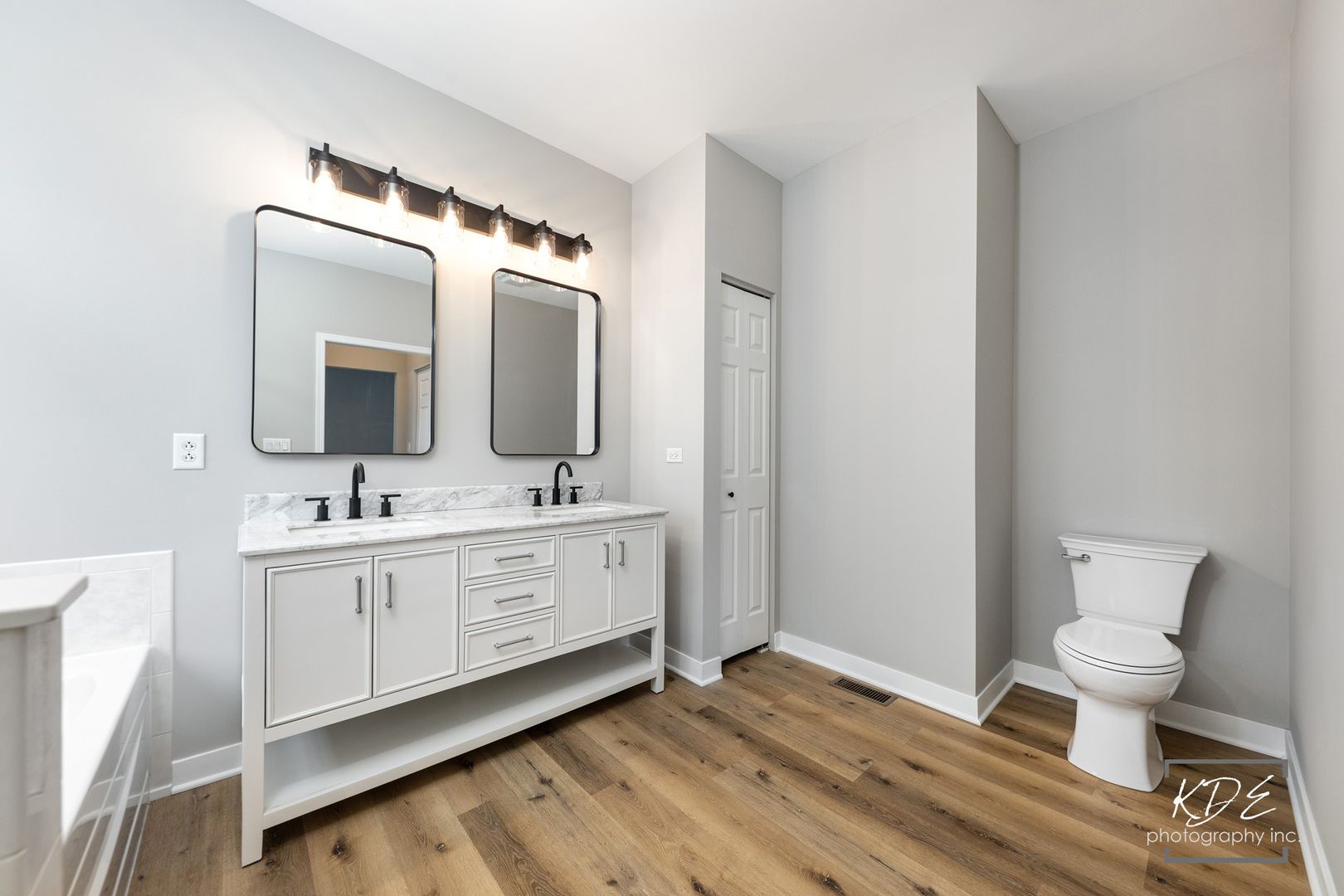 Stunning remodeled 3 bedroom & 3 bathroom Ranch home in Carillon Lakes! Feels like new construction with a total renovation, all while in the established 55+ community of Carillon Lakes. Enter into the spacious living room and dining room with new vinyl plank flooring, paint, custom trim work and light fixtures throughout. The office features a newly added french door and is located off the living room. The gourmet kitchen features new custom white cabinetry, under & above cabinet lighting, quartz countertops/backsplash, expanded island with waterfall quartz top, and new stainless steel appliances. Kitchen over looks the family room featuring a fireplace and sliding glass door to the backyard. Master bedroom suite features new carpet, two walk-in-closets and renovated bathroom. Finished basement offers a 3rd bedroom, full bathroom, and additional family room/recreation room area, plus tons of storage. In the backyard, enjoy the composite deck for relaxing and enjoying the outdoors. 2 car garage drywalled with a new epoxy floor. Carillon lakes has so much to enjoy: Lakes, walking paths, Clubhouse, fitness area, pools, 3 hole golf course, many organized activities to enjoy! Welcome Home.