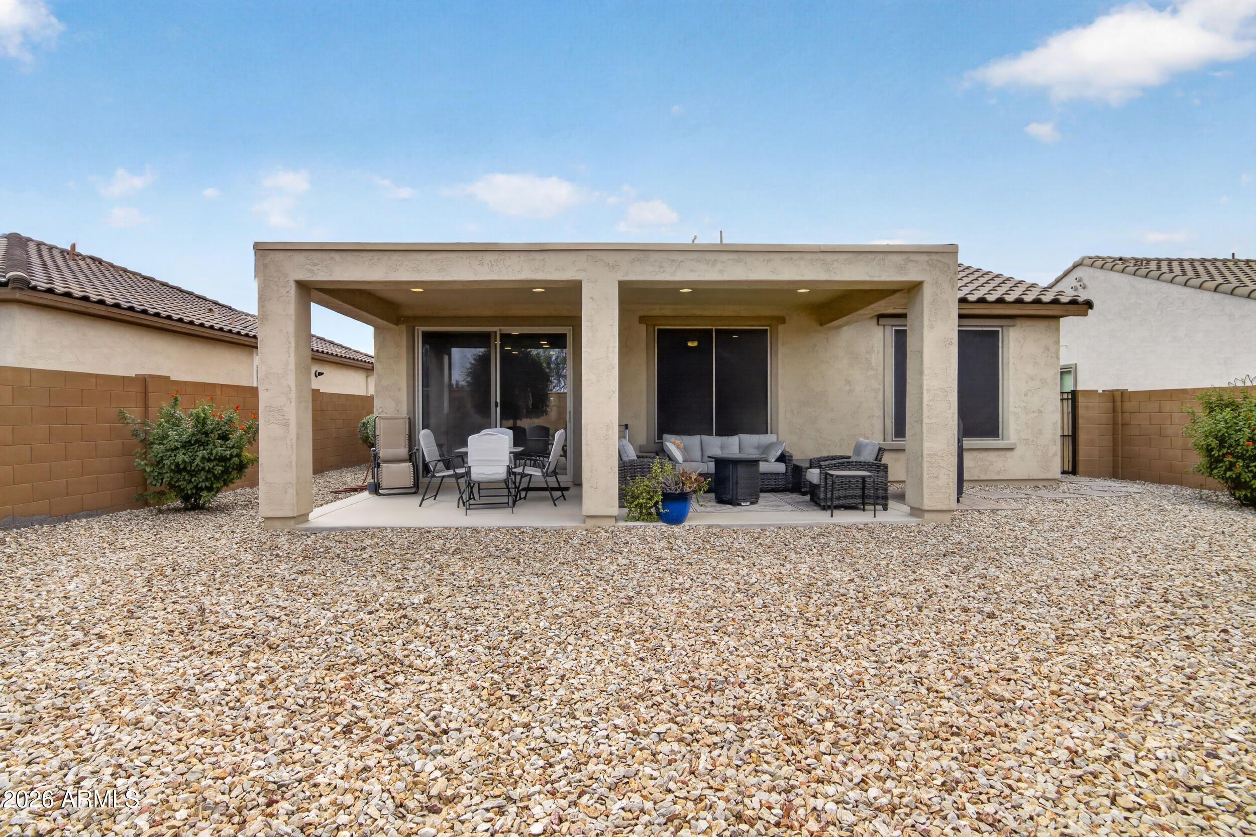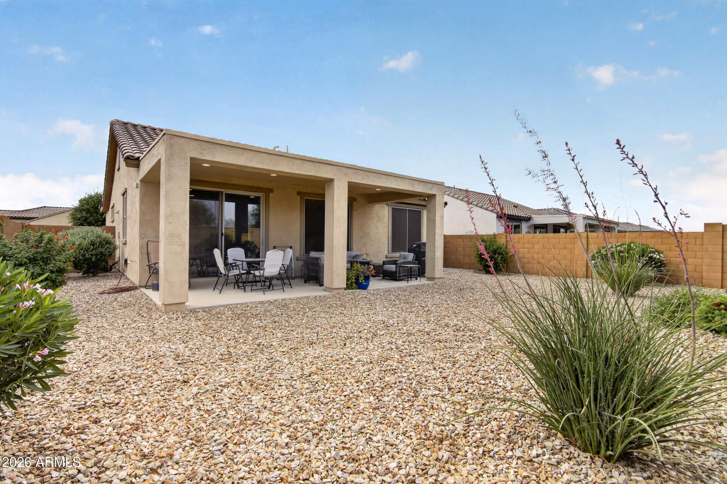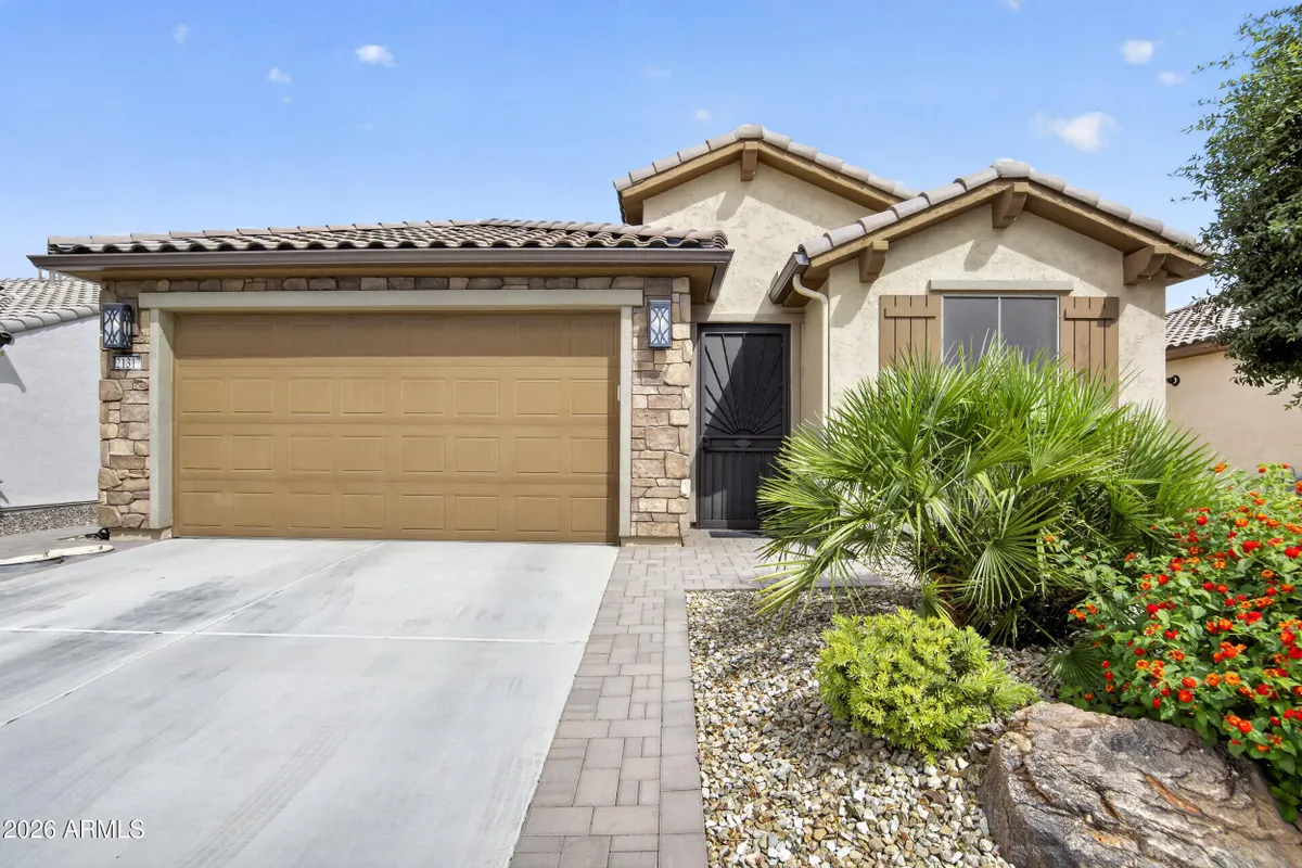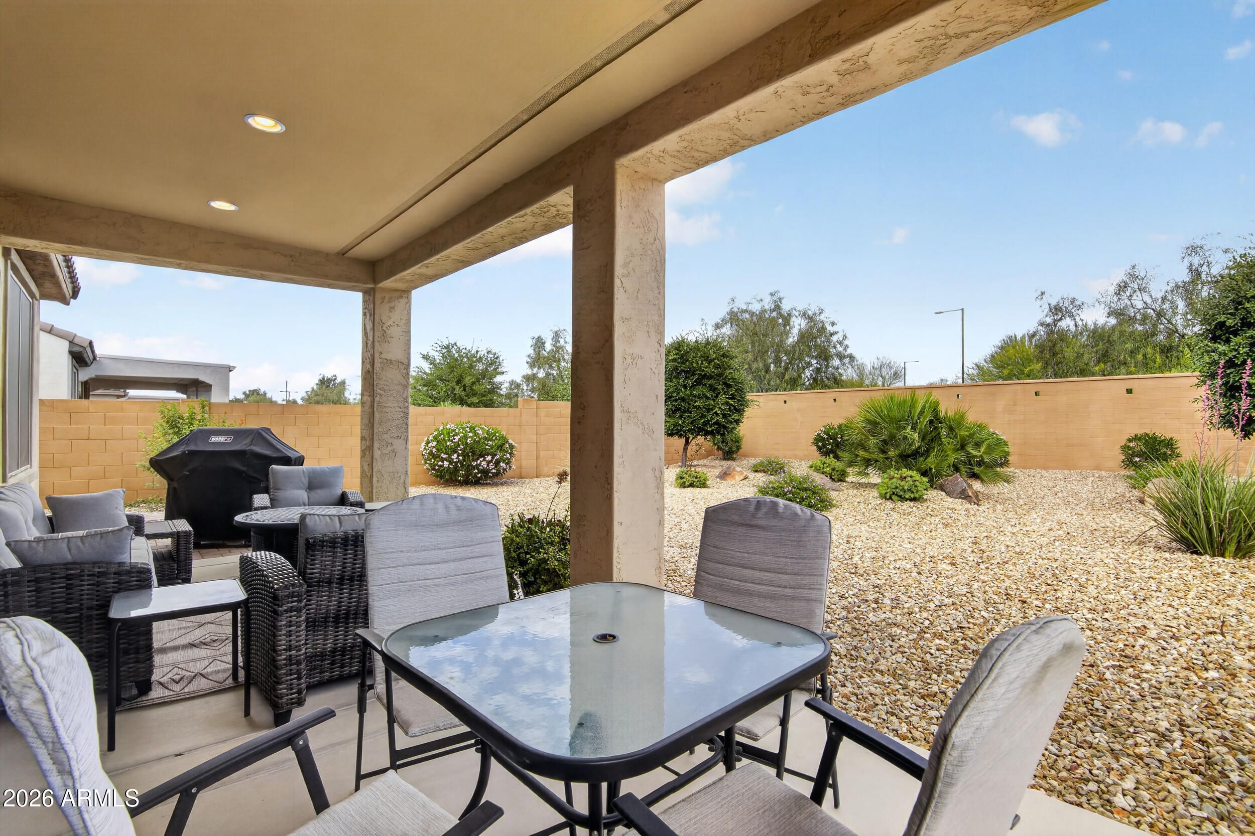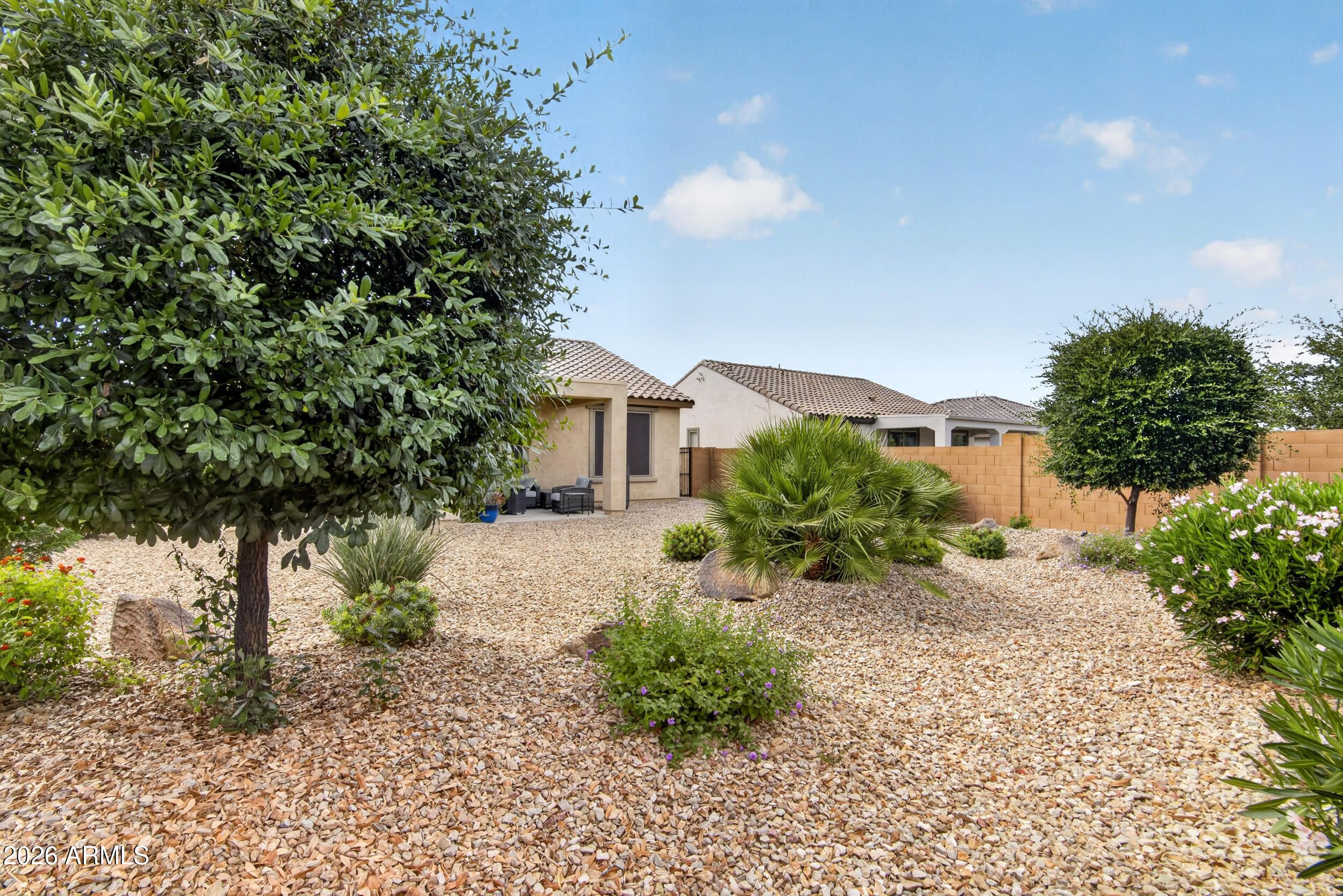 Beautifully maintained Traverse floorplan in Sun City Festival featuring a bright open layout and upgraded finishes throughout. The kitchen offers granite countertops, stainless steel appliances, upgraded cabinetry, and a large island that flows seamlessly into the dining and living areas, creating a comfortable and connected space. Split primary suite includes a spacious bedroom, dual sink vanity, and walk in closet. Additional highlights include a well sized laundry room and a 2 car garage with built in cabinets and workspace. Enjoy the extended covered patio and low maintenance desert landscaping in a private backyard designed for easy living. Located in Sun City Festival with resort style amenities including golf, pools, fitness center, and an active lifestyle. Sun City Festival is one of the Northwest Valley's premier 55+ active adult communities, designed for low maintenance living and a vibrant, social lifestyle. Residents enjoy access to two recreation centers featuring resort style pools and spas, state of the art fitness centers, group fitness studios, indoor walking track, and outdoor gathering spaces. The community offers a wide range of activities including pickleball, tennis, bocce ball, and numerous clubs, classes, and social events throughout the year. Golf enthusiasts will appreciate the 27 hole championship golf course managed by Troon Golf, offering scenic desert views and a top tier playing experience. Additional highlights include on site dining, arts and crafts studios, and hobby spaces such as a woodshop, creating opportunities to stay active, engaged, and connected. Sun City Festival is built around convenience, community, and lifestyle, offering residents the ability to enjoy an active and social environment with low maintenance living.
