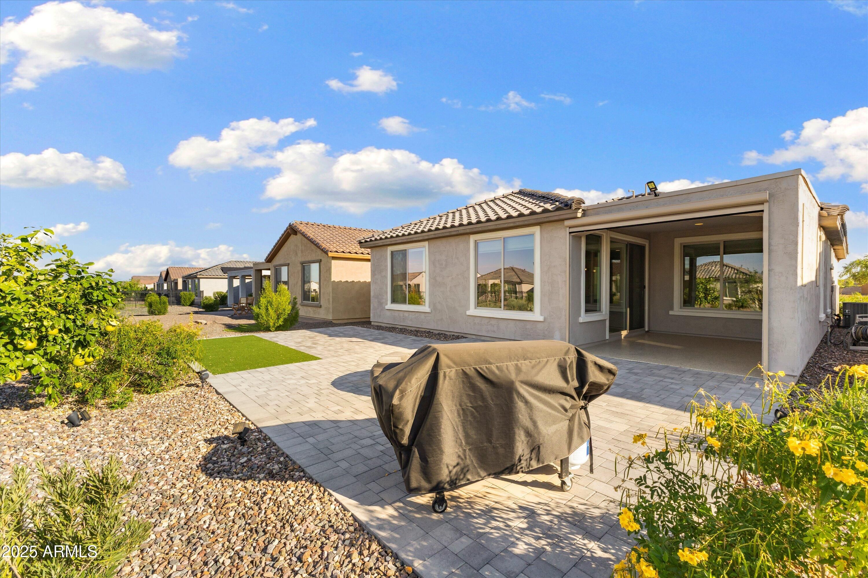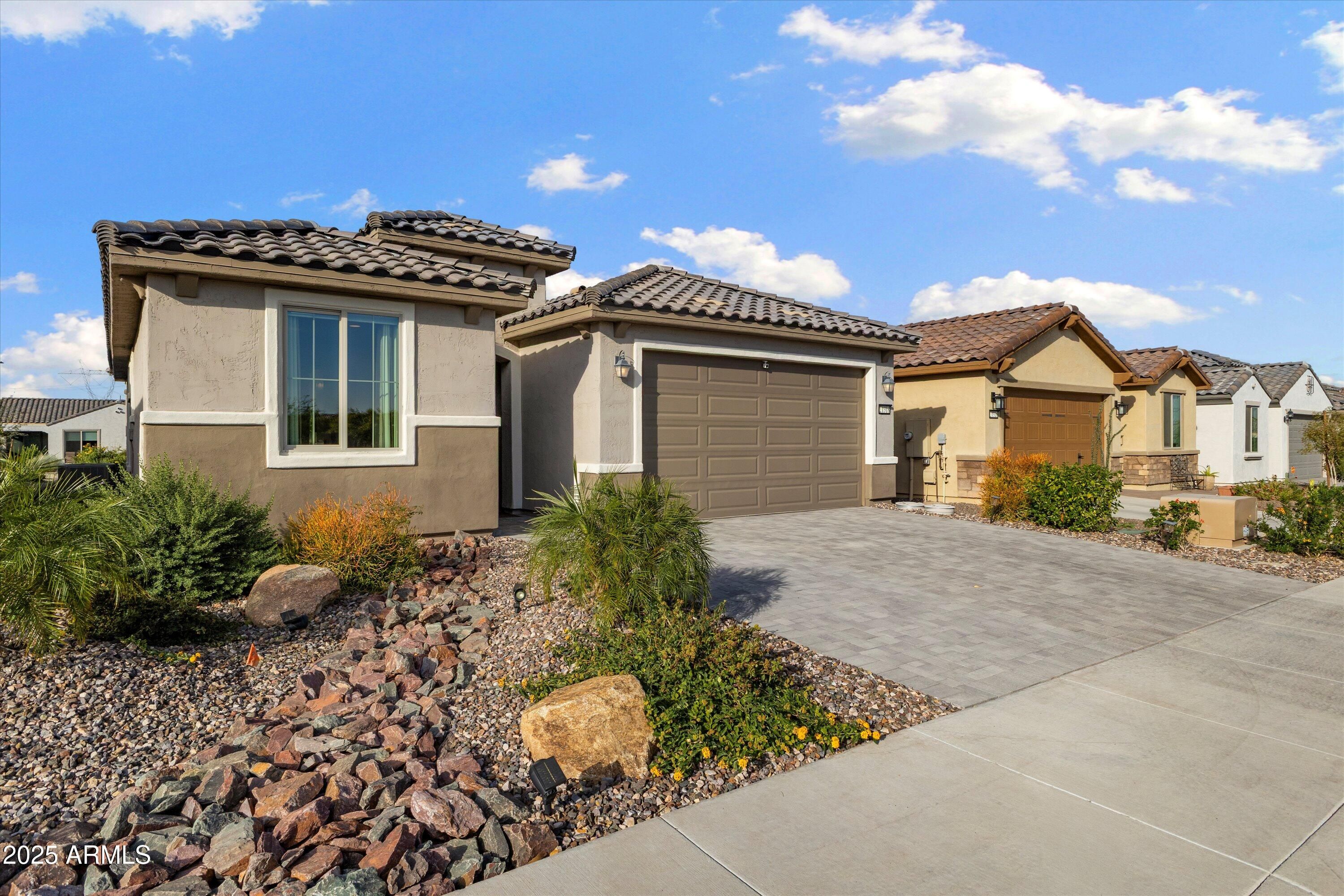 Almost New Odyssey - Move In Ready! Nicely Landscaped, Paver Driveway & Walkway. Family Room has Tile Floors, Media Wall, Custom Blinds & Electric Fireplace. Kitchen features Granite Counters, Tile Backsplash, Gas Range, Pull-out shelves, Upgraded Cabinets & Appliances, R.O. system, Walk-In Pantry, & Pendant Lights! Large Owner Suite with Barn Door to a full Bath that has Granite Counter, Dual Sinks, Glass & Tile Shower, and a large Walk-In Closet. The Guest bedroom is split from the master & has an adjacent full bath, providing privacy for guests. The Laundry Room has lots of cabinets & a Sink! 4 ft extended garage features a water softener and tankless water heater. You'll love the beautiful backyard with extended Paver Patio, Fire Pit, Electric Shades, Mountain & Sunset Views!