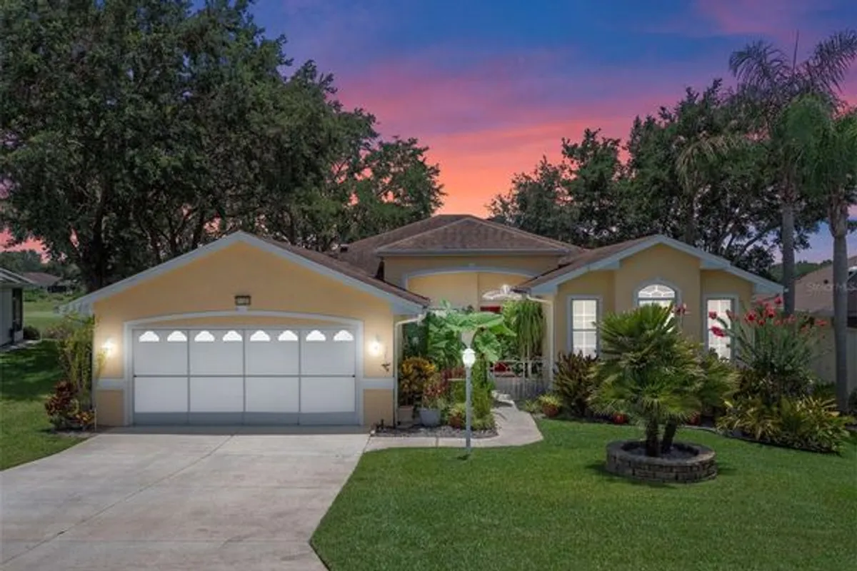 Welcome to Royal Highlands, where luxury meets tranquility in this stunning Duchess model home. Nestled in the heart of a sought-after 55+ golf community, this meticulously maintained residence boasts over 2300 square feet of under-air living space, offering three bedrooms, two full baths, and an expanded 29’ deep garage. As you approach the iron gate, the soothing sounds of the water feature and Koi Pond greet you, setting the tone for the lush landscaping that surrounds the exterior. Inside, the natural beauty continues with a welcoming and comfortable interior that piques the senses. Whether you prefer formal or casual dining, this home has it all, making entertaining friends and family a breeze. The guest area ensures a warm and comfortable stay for your visitors, while the third bedroom offers versatility as a den, office, or music/craft room. The kitchen is a chef's dream, featuring a full stainless steel appliance package, recipe windows, pantry, disposal, and an accented coffee or dry bar. The wood kitchen cabinets with pull-outs and a pass-through for entertaining guests add to the convenience. This exceptional home also includes an inside laundry room, tray ceilings, arched windows, architectural accents, a large and inviting Florida Room, tropical shades, irrigation, a gas line for the BBQ grill, and updated lighting and fans. The mindful details continue with crown molding, a garage workbench, attic storage, pocketed French Doors, a 2025 HVAC system, and a 2015 roof. Don't miss the best opportunity of 2025 to own a golf-front home with water views of the conservation! Royal Highlands offers a full-service restaurant on campus, driving range, fitness center, two pools, and numerous courts. The Great Hall features a large dance floor and performance stage, perfect for social gatherings. Conveniently located near MCO, amusement parks, shopping, restaurants, and the Chain of Lakes, this home is a true gem in Central Florida's 55+ living community. Come see what Royal Highlands has to offer and make this beautiful home yours today!