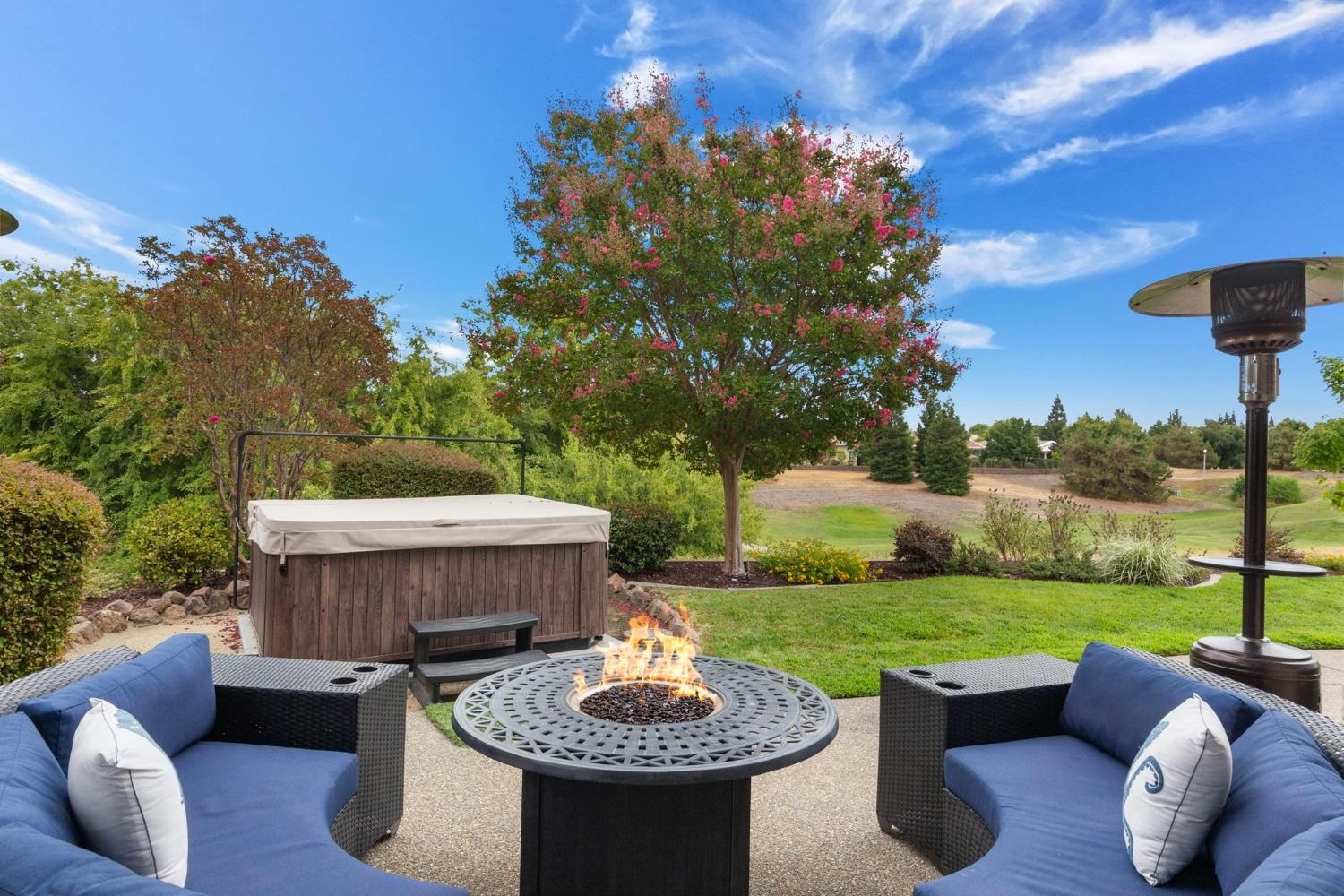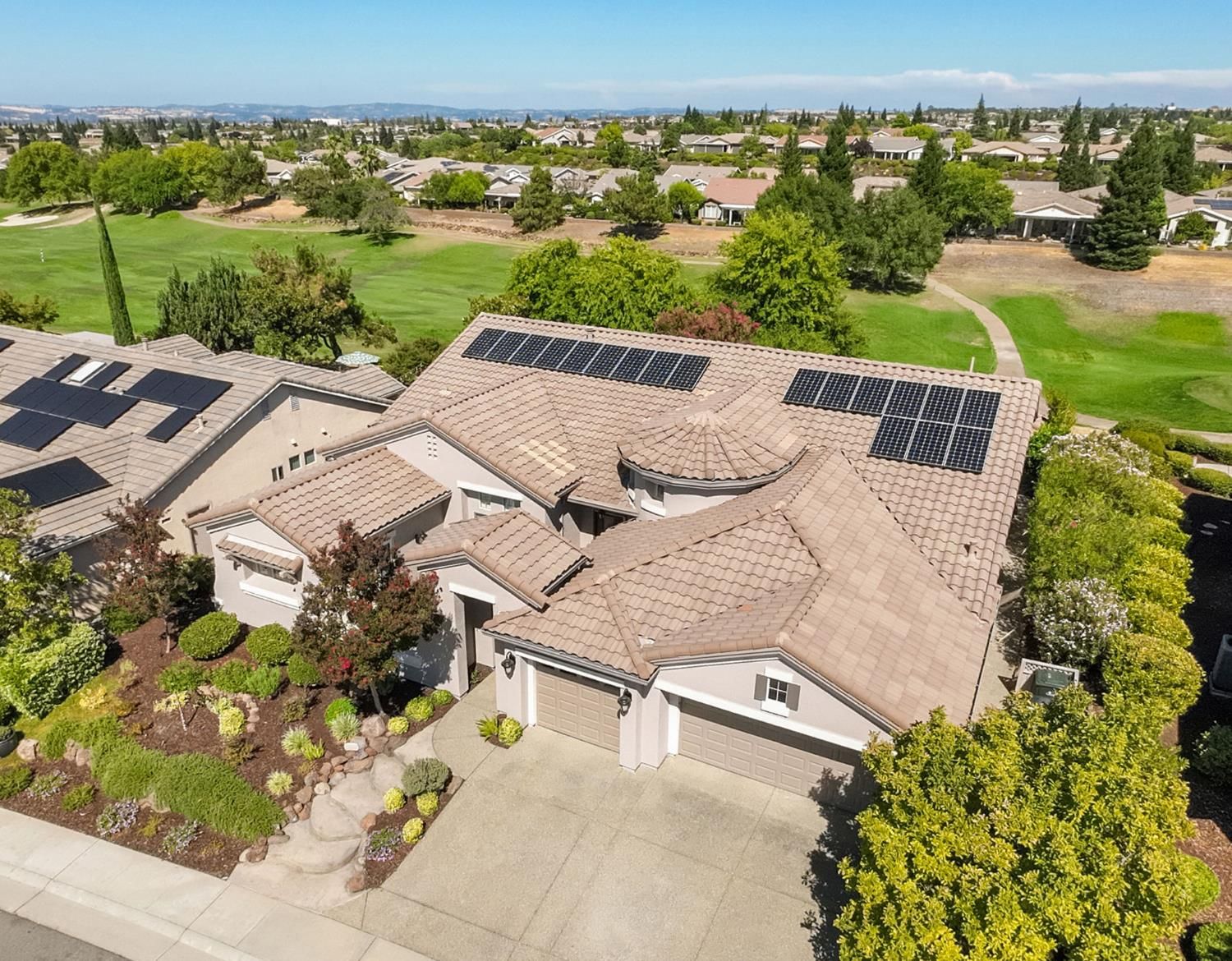 GOLF COURSE LUXURY 3BR + CASITA - OWNED SOLAR - NEWER SPA (2024) - EV CHARGING STATION - Welcome to your dream retreat on the 14th hole! This beautifully updated 3 BR, 2 bath golf course home offers an open backyard, view of the course & a lifestyle of comfort, elegance, & convenience. Step into the expansive great room with soaring ceilings, bathed in natural light & anchored by a stunning large gas fireplace with raised hearth - perfect for cozy evenings or entertaining. Open-concept kitchen flows seamlessly with the living area, creating a spacious & airy feel throughout. Enjoy the elegance of NEWER PLANTATION SHUTTERS & MOTORIZED BLINDS (2022), & the peace of mind that comes with OWNED SOLAR INSTALLED IN 2022, EV charging station, & newer furnace (2023). NEWER SPA (2024) adds a relaxing touch to your backyard oasis. SPACIOUS PRIMARY SUITE features private backyard access, 3 CUSTOM-ORGANIZED CLOSETS, & a luxurious en-suite bath. A flexible-use CASITA WITH COURTYARD access is perfect for a home office, or a studio. Additional features include: 3 CAR GARAGE with built-in cabinets & workbench - CENTRAL VAC & WHOLE HOUSE FAN - NEWER UPGRADES THROUGHOUT (2022) - LOW-MAINTENANCE LANDSCAPING WITH LAWN AREA IN BACK WITH DESIRABLE NE GOLF COURSE VIEW - This is resort-living at its finest in a great location. Don't miss your chance to own this golf course gem!