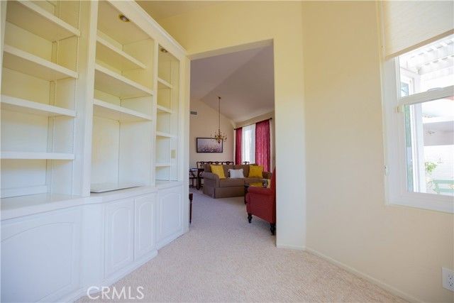 Come and see this charming single-story home located in the highly desirable Palmia senior 55+ community! This unit offers a unique location with more privacy as there is no one behind the property and the back patio looks out onto a big, beautiful greenbelt. It has newer windows and an open floor plan. The master bedroom offers entry to the patio through beautiful sliding doors and also has a large bathroom with double sinks. The garage has everything you need, with lots of storage cabinets, shelving and 2 large ceiling racks. A versatile den compliments the large living room, and you can choose to eat in the formal dining area or the cute kitchen nook! This home is a short, easy walk to the beautiful clubhouse and pool where you can also enjoy many amenities such as tennis courts, golf course, pickleball, bocce ball, shuffleboard, a grand ballroom, billiard room, exercise room and lots of fun activities! The community is gated with a security guard and controlled access. HOA dues include internet and ownership also comes with Lake Mission Viejo membership. This gem is perfectly nestled in one of the most sought-after neighborhoods, close to all kinds of shopping and restaurants, and is perfect for peaceful and quiet living in a premium adult community.