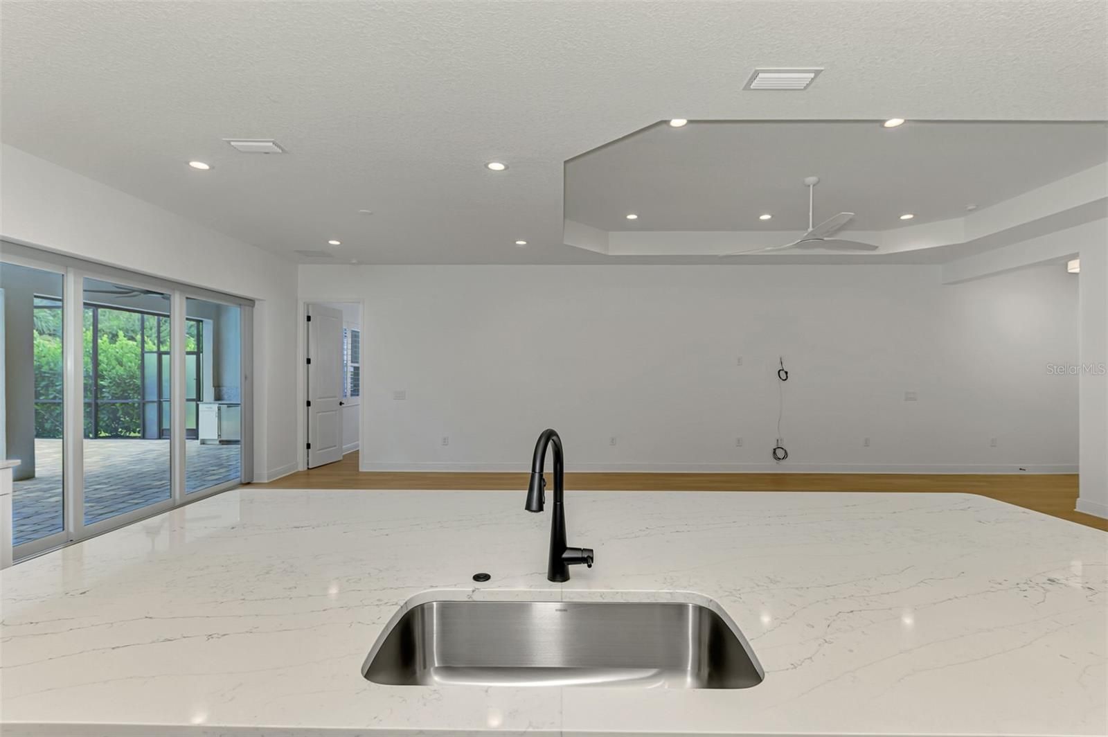 - Built-in Features, Ceiling Fan(s), Eat-in Kitchen, High Ceilings, Kitchen/Family Room Combo, Open Floorplan, Solid Surface Counters, Solid-Wood Cabinets, Walk-In Closet(s), Window Treatments