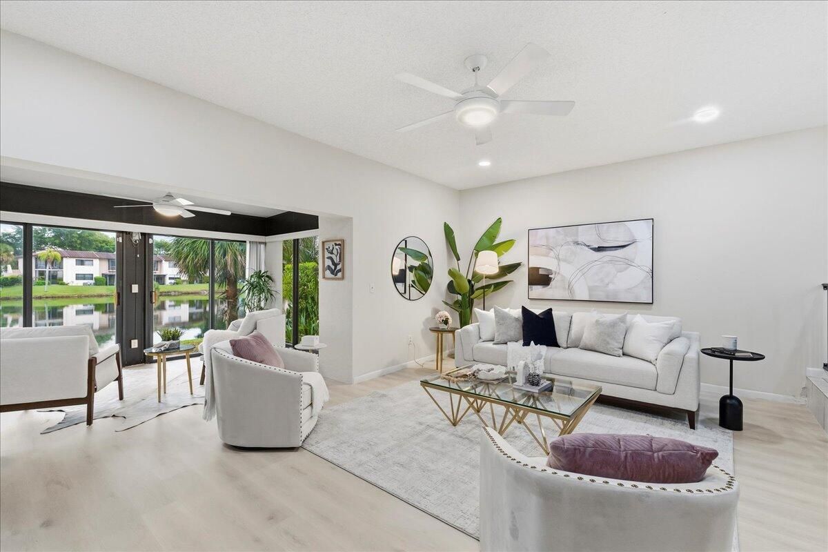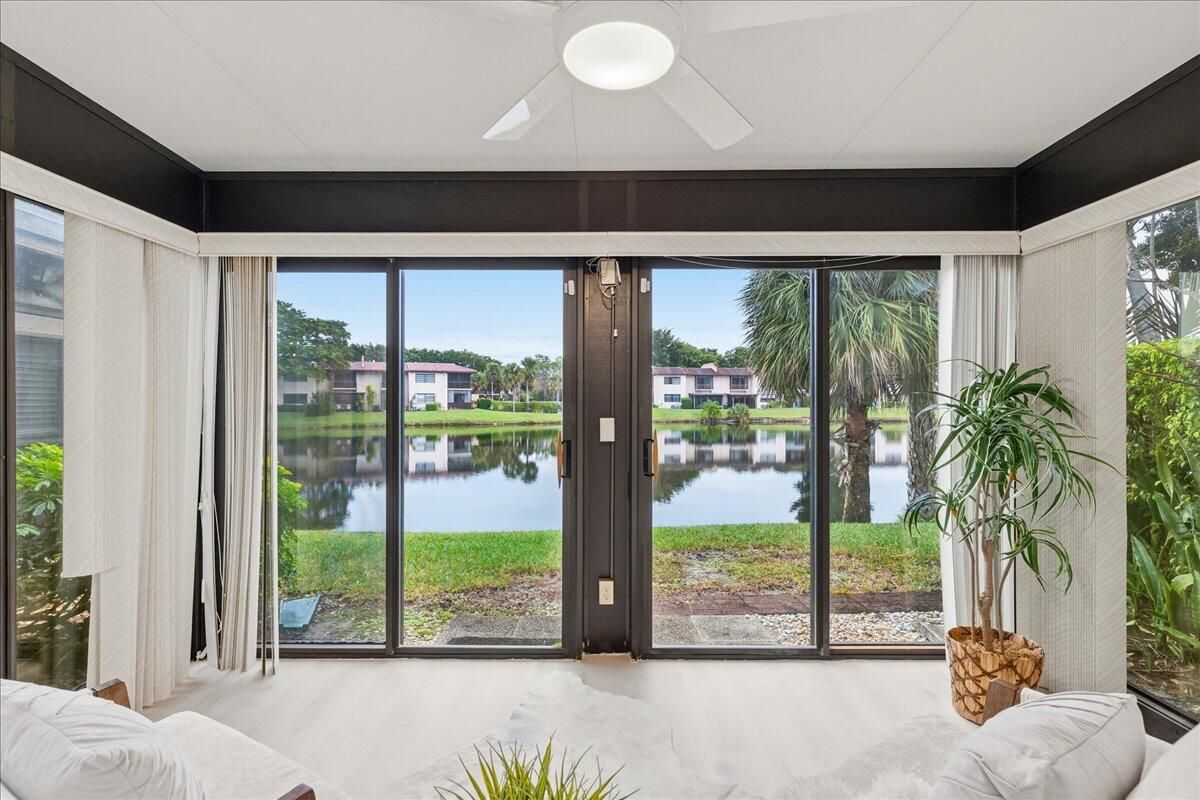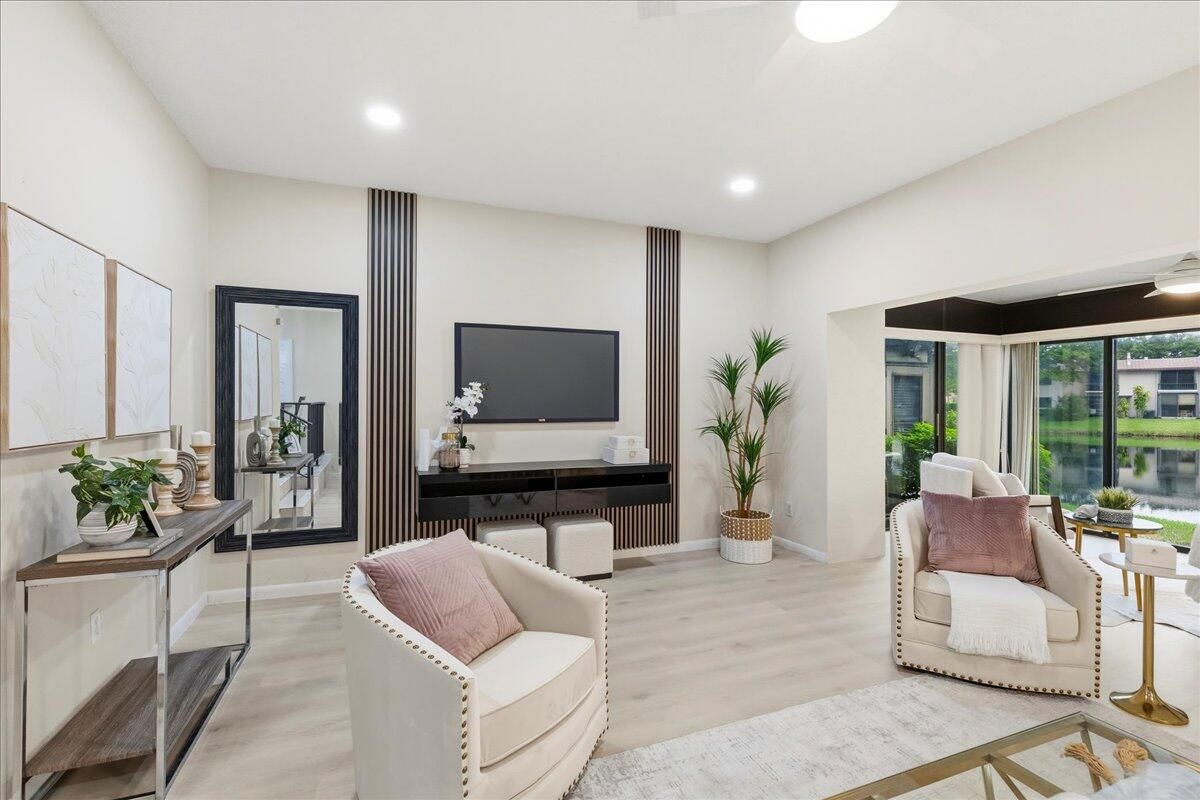 Wake up to soft morning light and tranquil lake views in this beautifully updated 2-bedroom, 2.5-bath townhome nestled within the sought-after 55+ community of Boca Lago. This home captures stunning sunrises over the water,best enjoyed from the Florida room or the screened-in balcony off the primary suite, where mornings feel calm, private, and effortlessly serene. A recently remodeled open-concept kitchen is designed for everyday living and entertaining, featuring a large quartz center island, stainless steel Samsung appliances, soft-close cabinetry, and modern finishes.The thoughtfully updated bathrooms continue the elevated feel with designer accents, including quartz countertops, porcelain wall tile, LED mirrors, and a spa-inspired shower that adds a touch of luxury to daily routine. Wood flooring flows throughout the first floor, while spacious bedrooms offer walk-in closets and comfortable retreats on the upper level. Recent updates include a brand new roof, 2022 A/C and water heater, and new LG washer and dryer, as well as smart-home features, including a ready-to-connect security system for added peace of mind. Ideally positioned on one of the premier parcels within the highly desirable, gated community of The Vistas at Boca Lago, this home is conveniently located near the community pool and clubhouse, as well as the Boca Lago Golf & Country Club, where memberships are available but NOT mandatory. Just minutes from the turnpike, shopping, dining, and entertainment, this residence perfectly blends comfort, convenience, and serene lakefront living in the heart of Boca Raton.