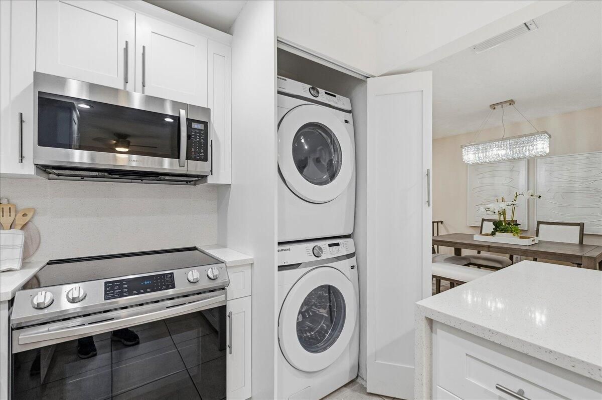 - Dryer, Disposal, Dishwasher, Electric Range, Ice Maker, Microwave, Refrigerator, Washer