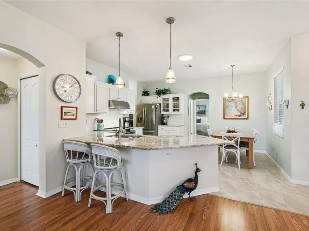 - Ceiling Fan(s), Eat-in Kitchen, High Ceilings, Kitchen/Family Room Combo, Living/Dining Room, Open Floorplan, Solid Surface Counters, Solid-Wood Cabinets, Walk-In Closet(s)