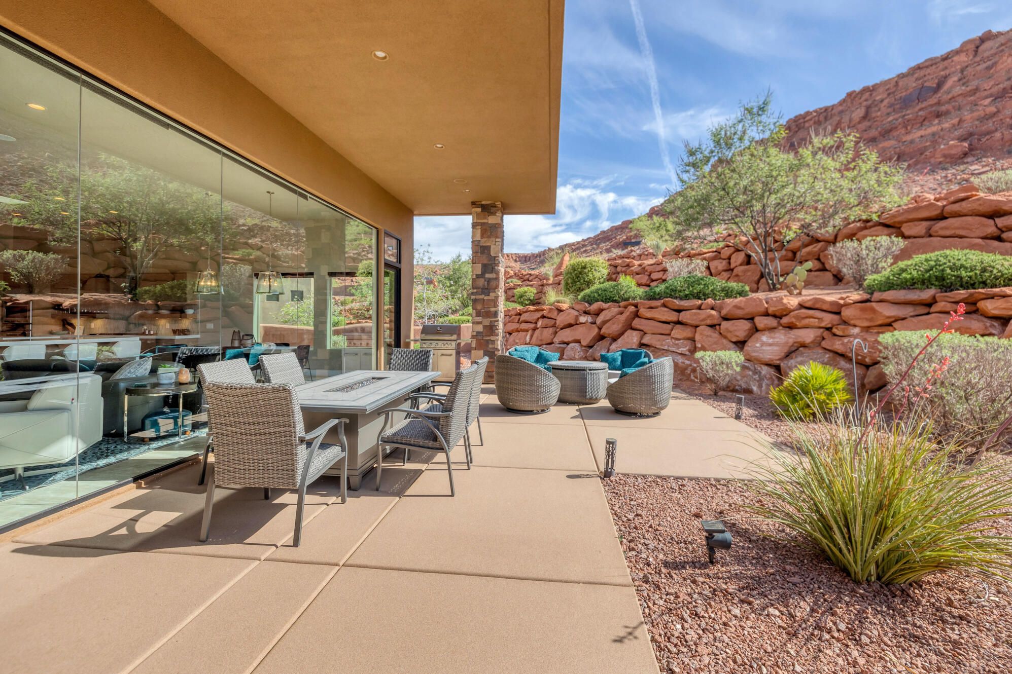 Tucked inside the highly sought-after Entrada community, this beautifully appointed home offers the perfect blend of luxury, comfort, and iconic Southern Utah scenery. Previously enjoyed as a private vacation retreat, the property has been meticulously maintained and is now being offered fully furnished--making it truly move-in ready or ideal as a second home. Featuring three spacious bedrooms and three well-designed bathrooms, the layout provides both privacy and functionality for family and guests. The open-concept living space is filled with natural light and seamlessly connects to a thoughtfully designed kitchen and dining area, perfect for entertaining or relaxing after a day outdoors. Step outside to your own private backyard oasis, where you'll find stunning, unobstructed red rock views that capture the essence of St. George living. Whether you're enjoying a quiet morning coffee or an evening sunset, the setting is both peaceful and unforgettable. Located within the gated Entrada at Snow Canyon community, residents enjoy access to world-class amenities, including golf, fitness facilities, and scenic walking trails. This is a rare opportunity to own a turnkey home in one of Southern Utah's most desirable neighborhoods.