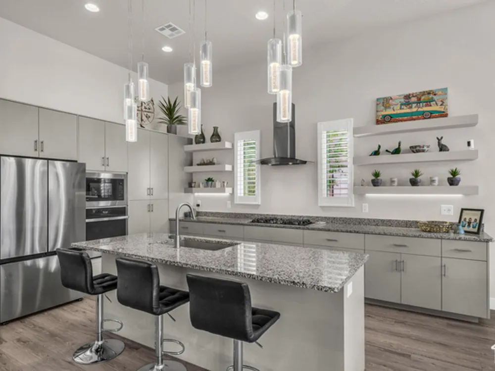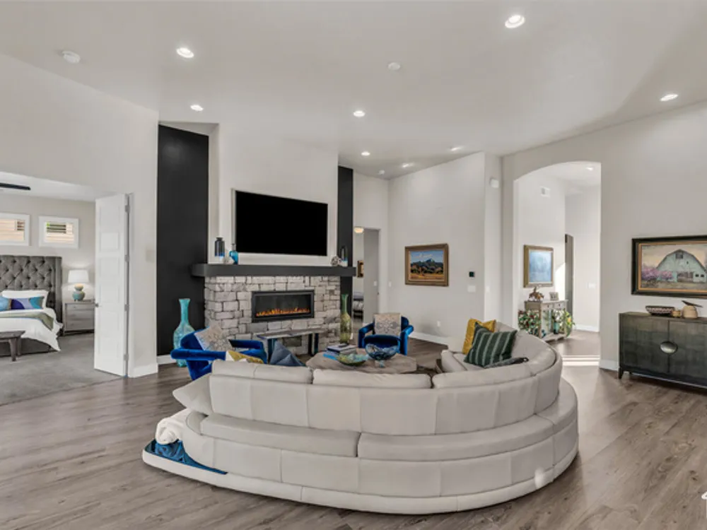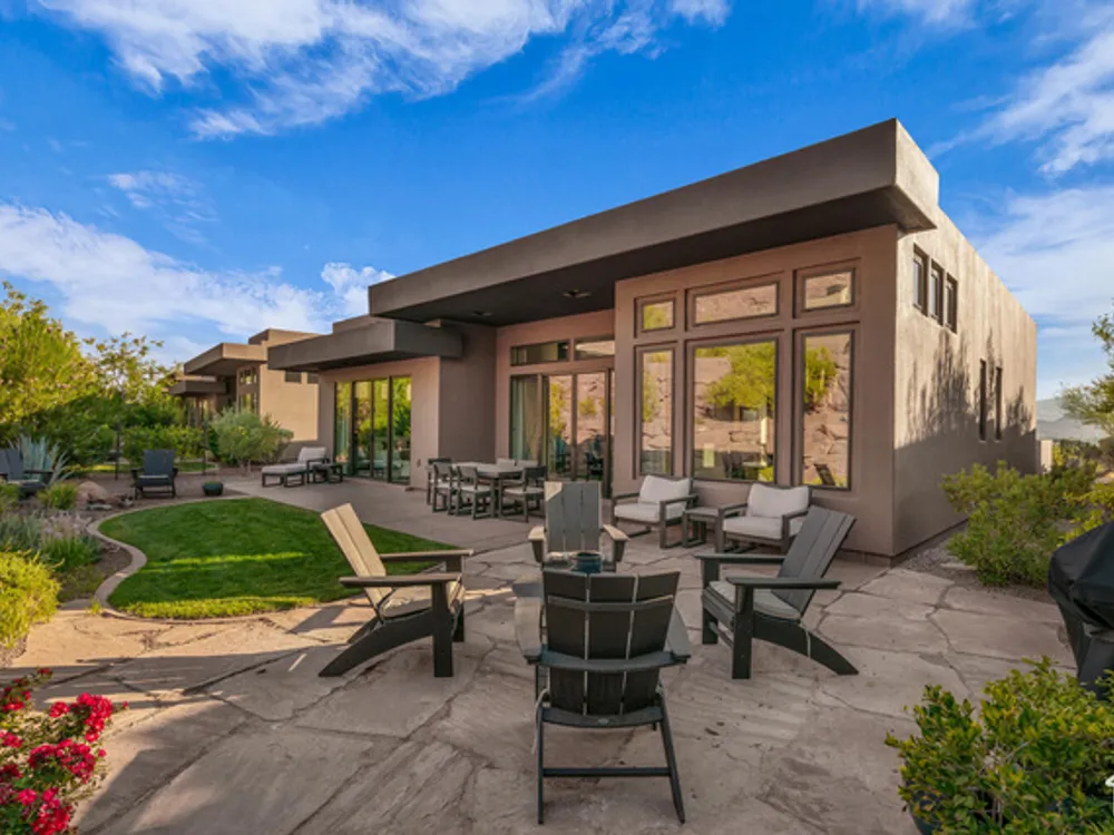 Experience sophisticated desert living in this exceptional contemporary home - the final residence constructed in this highly sought-after community. Designed to capture natural light and surrounding beauty, this immaculate property showcases clean architectural lines, open spaces, and designer finishes throughout. The private backyard is an entertainer's dream, featuring a new privacy wall, soothing water fountain, and multiple patio areas ideal for relaxation or gatherings - all set against the backdrop of breathtaking red rock views. Interior highlights include a newly added bar area, new flooring, and automated curtains and shades. The chef's kitchen boasts a new oven, new refrigerator, and gas cooktop, complemented by modern cabinetry and sleek surfaces.