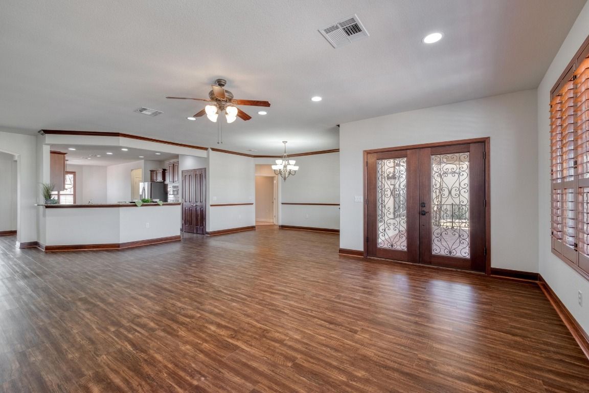 - Breakfast Bar, Ceiling Fan(s), Chandelier, Crown Molding, Separate/Formal Dining Room, Double Vanity, Entrance Foyer, French Door(s)/Atrium Door(s), Granite Counters, Kitchen Island, Multiple Dining Areas, Main Level Primary, NoInteriorSteps, Open Floorplan, Pantry, Recessed Lighting, Soaking Tub, Walk-In Closet(s)