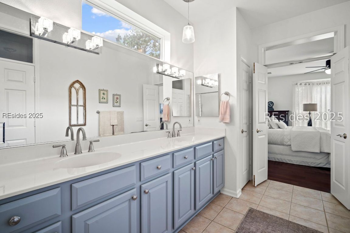 Welcome to 214 Hampton Circle in Sun City Hilton Head-an upgraded Ranier model that perfectly blends comfort, style, and Lowcountry charm. This thoughtfully designed home offers 3 bedrooms (or 2 plus an office/den) and 2 full baths, with every detail chosen for both beauty and function. The chef's kitchen impresses with quartz countertops, a large island with breakfast bar, tile backsplash, new refrigerator and gas range, and custom cabinetry with roll-out shelving and under-cabinet lighting. Engineered hardwood and tile flooring flow throughout-no carpet-creating a modern, easy-care aesthetic. The owner's suite features a lovely bay window filled with natural light, while the spacious guest bedroom provides privacy and comfort for visitors. Enjoy quiet mornings or evening gatherings on the screened porch overlooking a peaceful, private view.