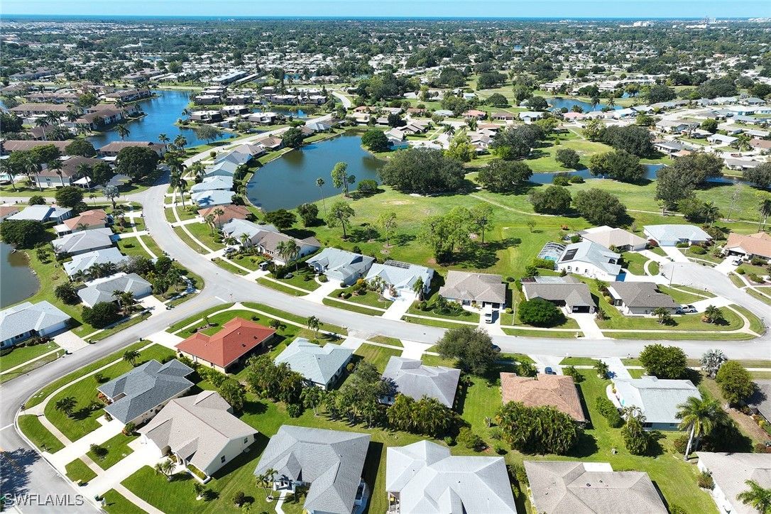 Welcome to Riviera Golf Estates, a popular 55-plus community in the heart of Naples offering a relaxed, yet active lifestyle. This charming three-bedroom, two-bath home offers a great value in a private tropical setting. Neutral tile flooring throughout main living areas, an open floor plan with great room, split bedrooms to ensure privacy, an enclosed lanai(den) with patio access, two-car garage, utility room with cabinets, washer, dryer and sink. Primary bedroom offers private bath and a spacious 9-by-9-foot walk-in closet. Roof replaced in 2016, air conditioner in 2022, water heater in 2024 and newer kitchen appliances. Enjoy the tranquil, tropical yard with ample opportunities for gardening. Many community amenities including pickleball, tennis, bocce court, an exercise room, billiards, a large heated pool with lap lanes and a vibrant clubhouse with frequent social events. High-speed internet is also included in the low HOA fees. In a quiet and friendly neighborhood, just minutes from top-rated restaurants, shopping and beautiful Gulf beaches, this home offers a nice affordable option as either seasonal housing or a year-round residence.