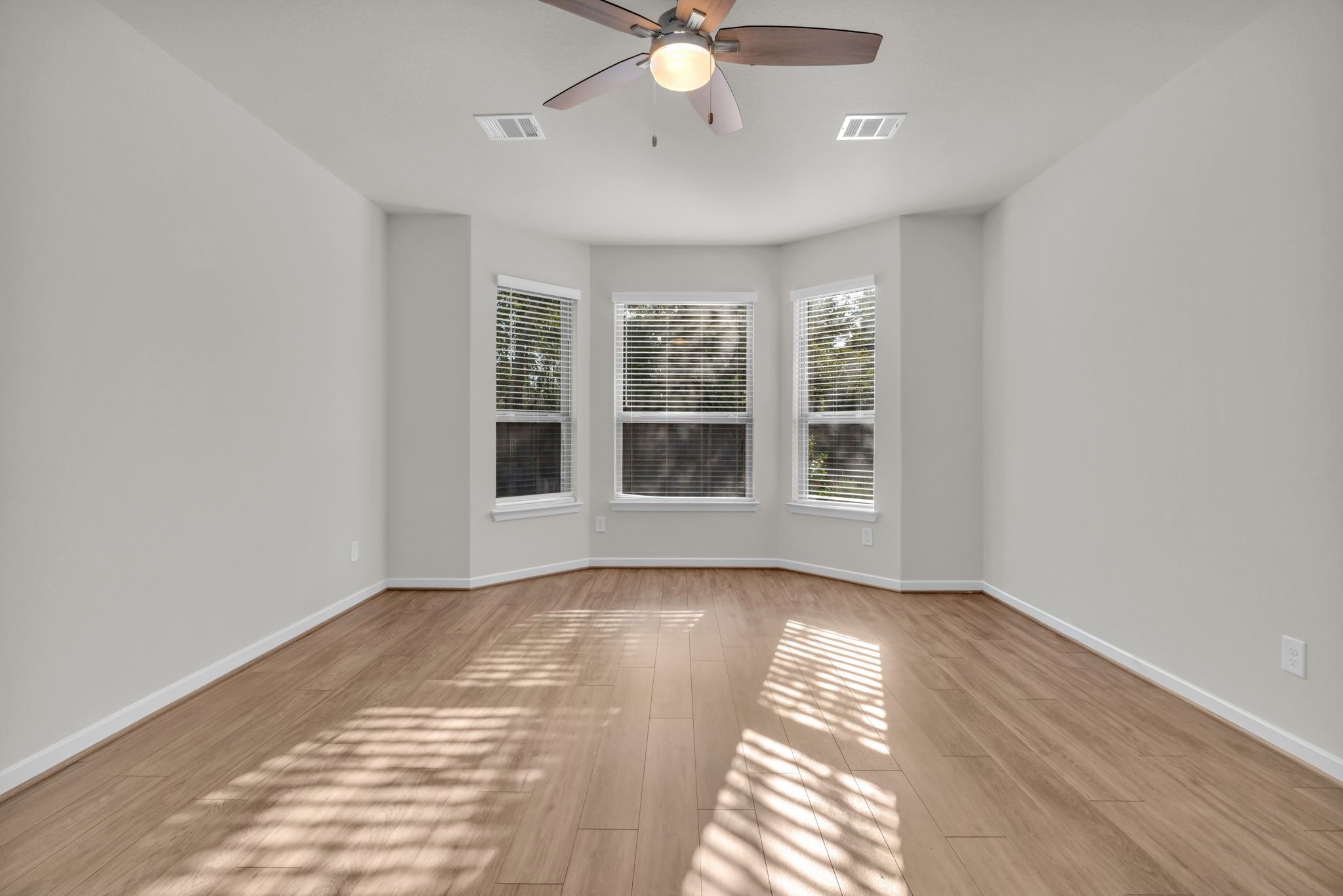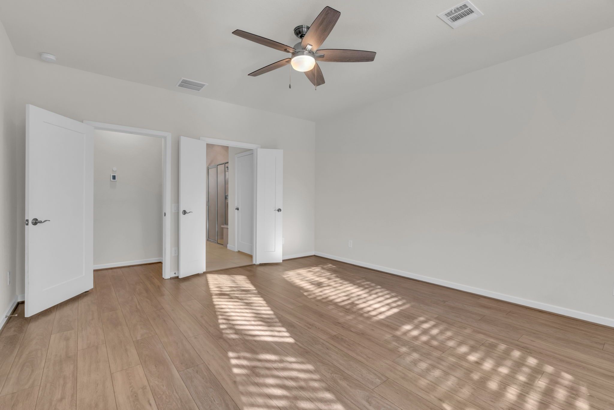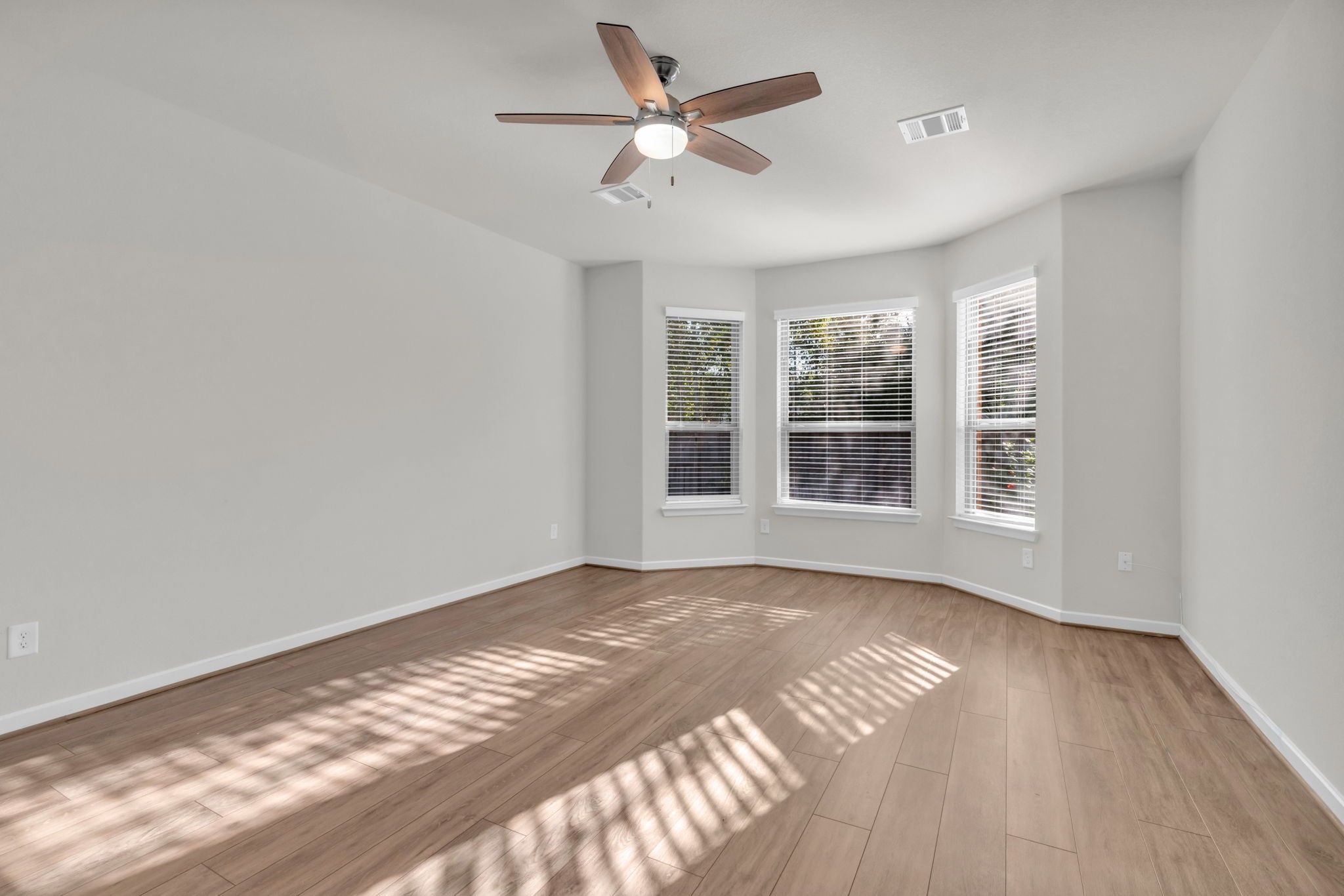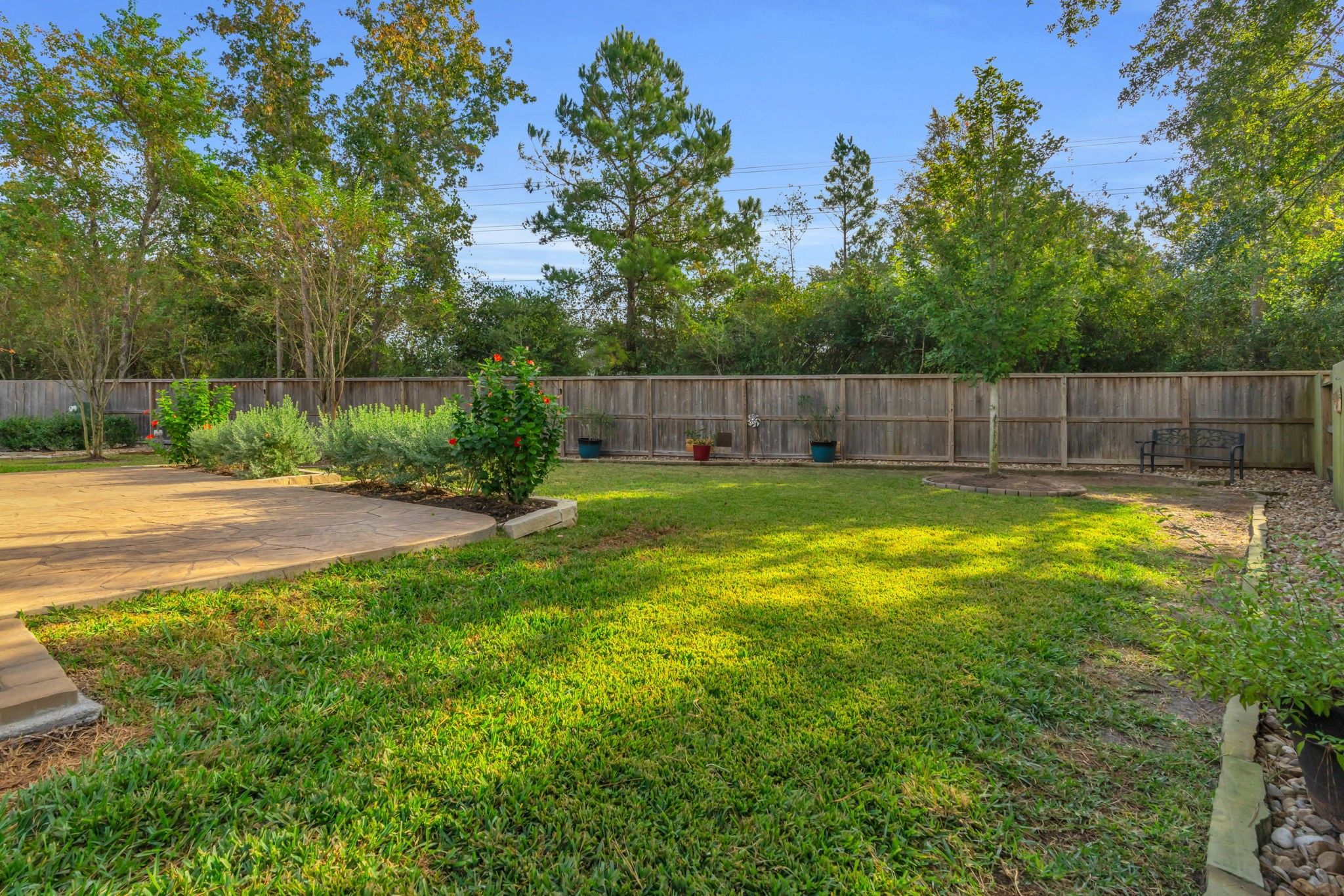 Reduced!! Resort-style living in Bonterra at Woodforest, a premier 55+ active adult community. This beautiful home offers three bedrooms with study, with both the primary suite and one secondary bedroom with ensuite baths perfect for guests. Throughout the home, luxury vinyl plank flooring provides beauty and easy maintenance. The chef-inspired kitchen showcases a free-standing quartz island, wire-rack pull-out in lower cabinets, along with a refrigerator with craft ice maker.The neutral interior flows into the screened-in patio and extended stamped-concrete outdoors, ideal for relaxing or entertaining. The backyard has a peaceful green space with no rear neighbors, and three newly planted trees.This home also offers a whole-house generator, whole-house water softener system, a garage with upgrades including a 5-foot side extension, a 4-foot length extension, and overhead storage racks. Custom wire-rack shelving is also installed in the front bedroom closet for added organization.