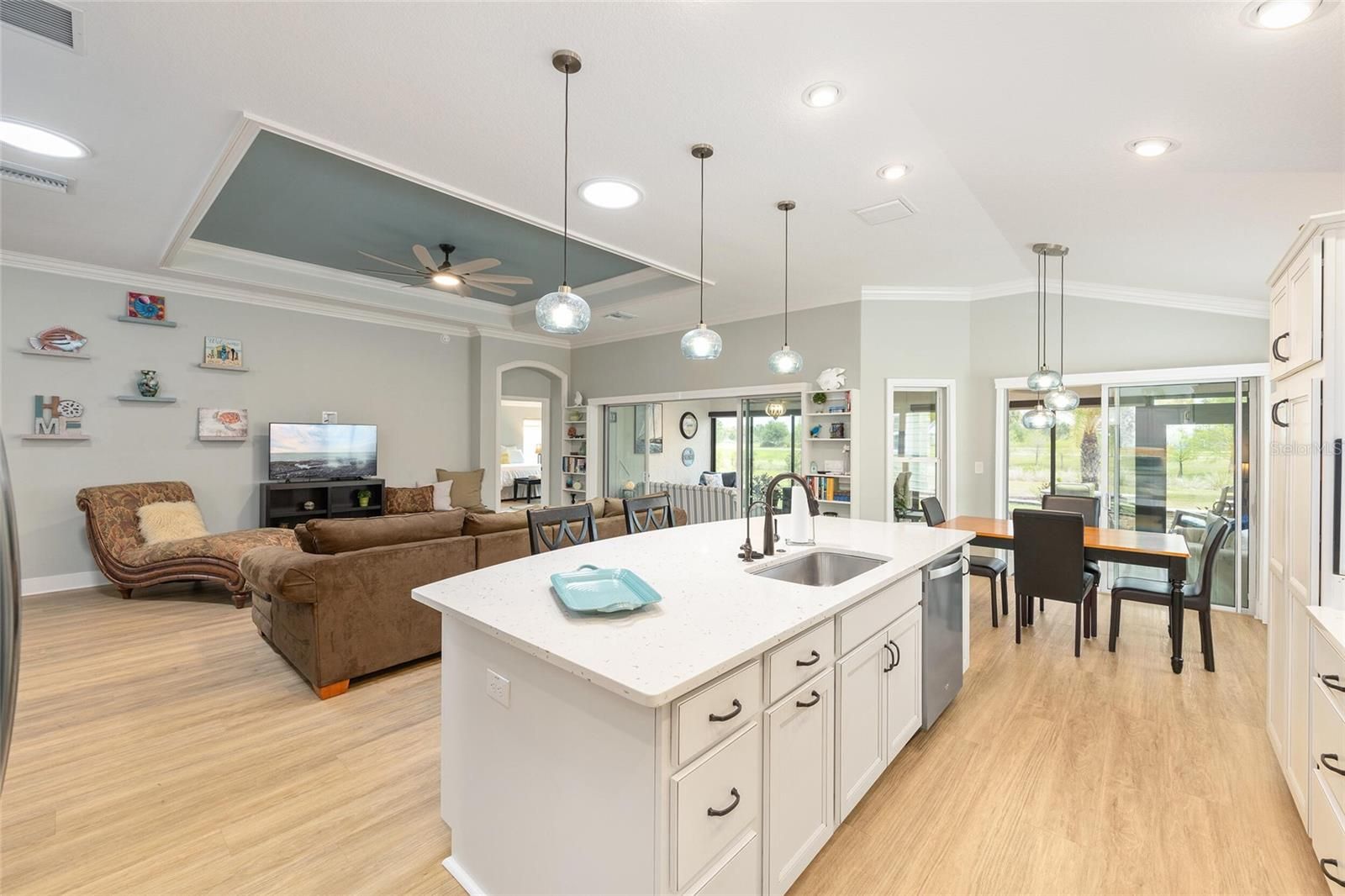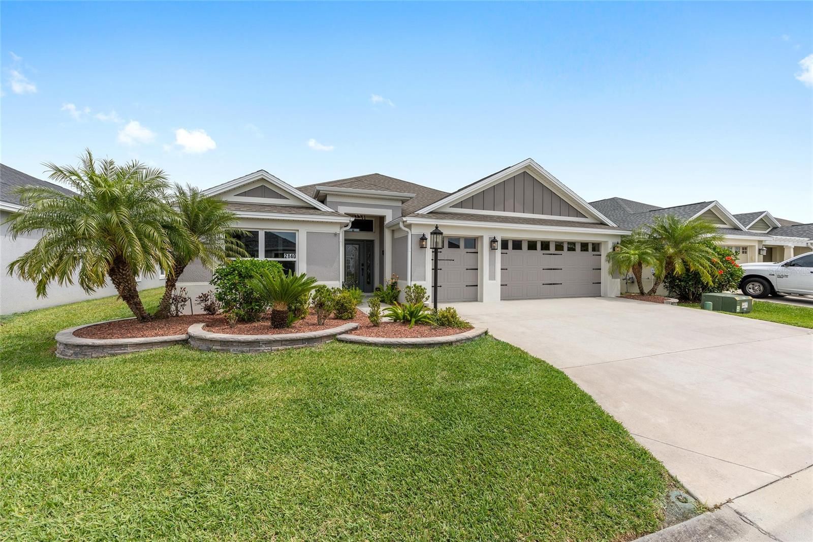 ** WATERFRONT ** ROOM FOR A POOL ** GLASS ENCLOSED LANAI ** OVERSIZED 2 CAR + GOLF CAR GARAGE w/AC ** $100,000 in UPGRADES ** MOTIVATED SELLER ** FURNITURE AND GOLF CAR PACKAGE AVAILABLE **. Stunning waterfront 3-bed, 2-bath expanded Iris in the Village of McClure, minutes from golfing, shopping, dining, recreation, and Eastport Town Center. This exceptional home features a stretched 2-car plus golf cart garage, 350 sq. ft. glass-enclosed climate-controlled lanai, room for a pool, and over $100,000 in premium upgrades. Previously owned by an interior decorator, it shines with plank flooring, crown molding, custom trim and closets, plantation shutters, solar tubes, designer lighting, and fresh professional paint. The open living area boasts a dramatic tray ceiling, while a versatile flex space works as a dining area, office, or cozy nook. A gourmet kitchen highlights quartz counters, tile backsplash, stainless appliances, cabinetry with under-cabinet lighting, and a counter-height island. The expanded primary suite wows with water views, tray ceiling, walk-in closet, and spa-like bath with dual quartz vanities and tiled Roman shower. Two additional bedrooms, guest bath, paver patio, private backyard, professional landscaping, and oversized garage with attic storage complete this luxurious home, where serene waterfront living meets endless Villages adventures—golf cart and furniture package negotiable so you can enjoy it all in style! THE VILLAGE OF MCCLURE Living in the Village of McClure means having it all right at your doorstep! From the Longleaf and Loblolly Executive Golf Courses to the relaxing Willow Tree Recreation Area with its adult pool, there’s always something to enjoy. Looking for more activity? The Everglades Recreation Complex delivers with a sports pool, fitness programs, softball, pickleball, and even RC car and boat tracks for a little extra fun. Dog owners will love nearby Dudley Canine Park, and with Magnolia Plaza and Eastport just down the road, shopping, dining, and everyday essentials are always close by. It’s easy to see why the Village of McClure is such a desirable place to call home.