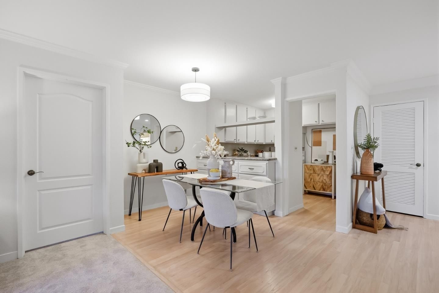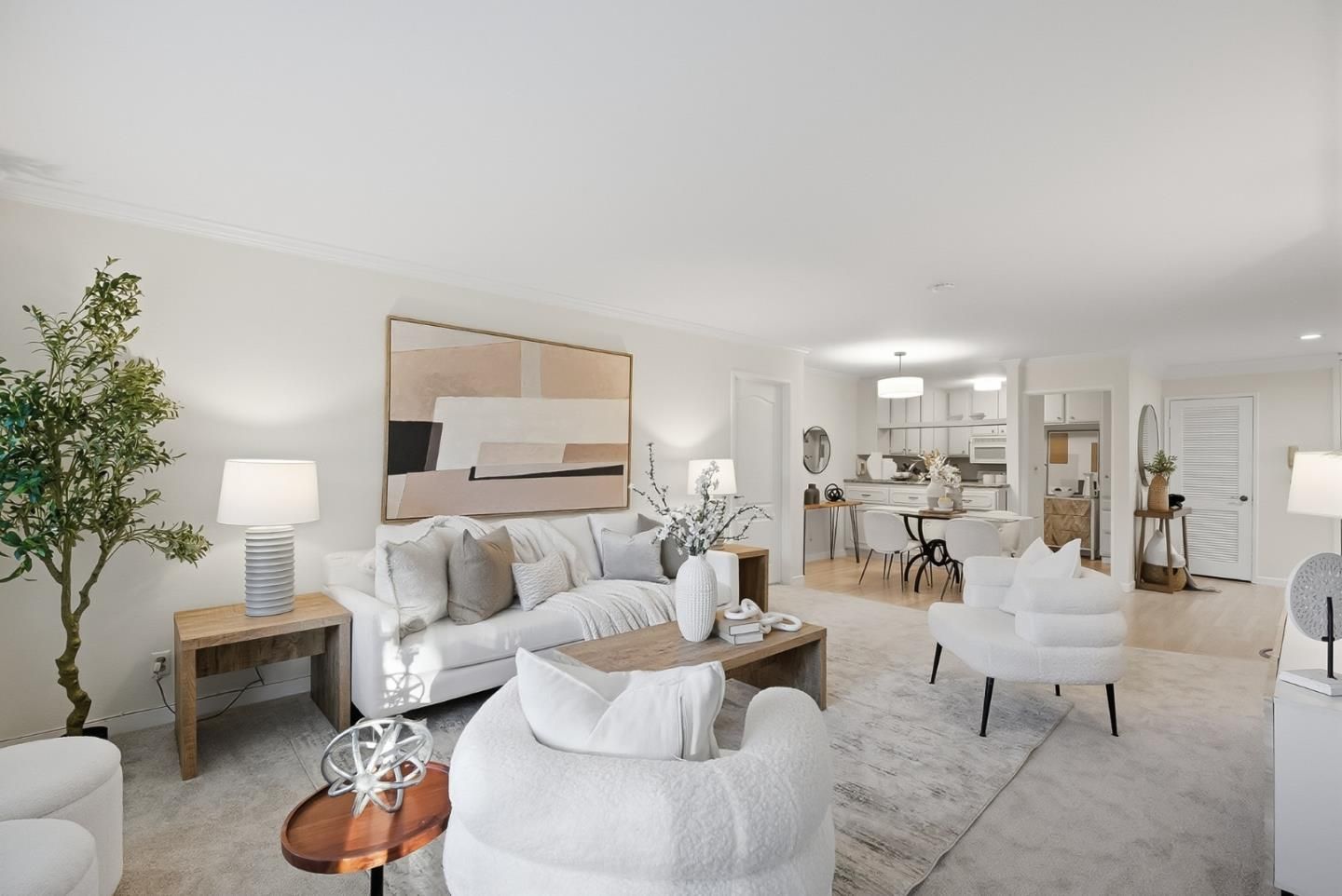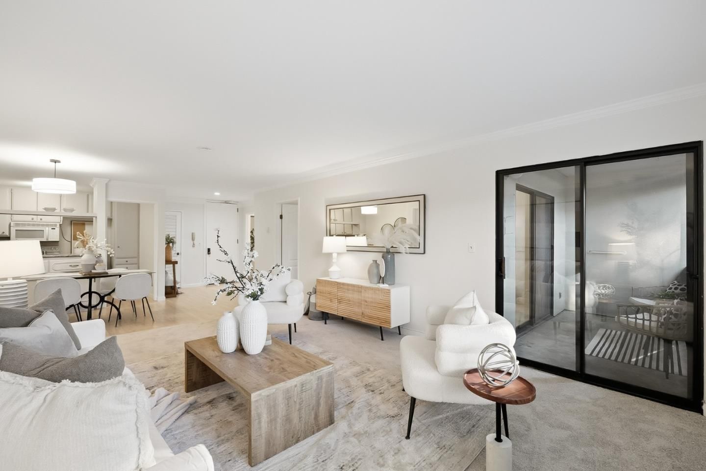 Unit E102 - Located in the highly desirable Menlo Commons gated 55+ community, this beautifully updated first-floor residence offers comfort, convenience, and easy living. The thoughtfully designed floor plan features two spacious bedrooms and two full baths, ideal for everyday living or hosting guests. The updated kitchen showcases refinished wood flooring, stone countertops, and abundant cabinetry, opening to the dining area and inviting living room. A large picture window fills the space with natural light, while a sliding glass door leads to a private balcony, perfect for relaxing outdoors. The oversized primary suite offers a generous walk-in closet, extra-large vanity, and stall shower designed for comfort and functionality. Fresh interior paint, new carpet, luxury vinyl plank flooring, and in-unit laundry add to the move-in ready appeal. Menlo Commons offers secured entry, elevators, community pool, clubhouse, and fitness center, supporting an active and social lifestyle. Ideally located near Stanford Shopping Center, Stanford Hospital, Stanford University, downtown Menlo Park and Palo Alto, with convenient access to Highway 280, this home blends tranquility with everyday convenience.