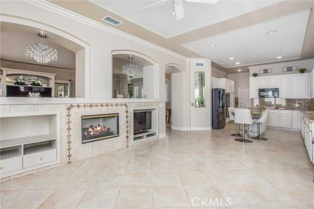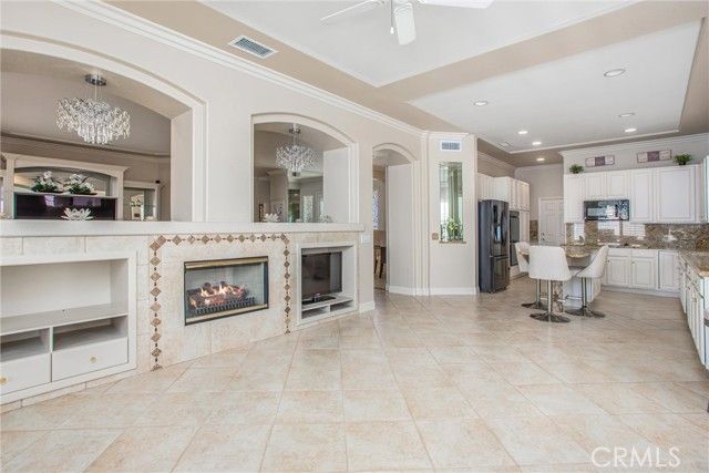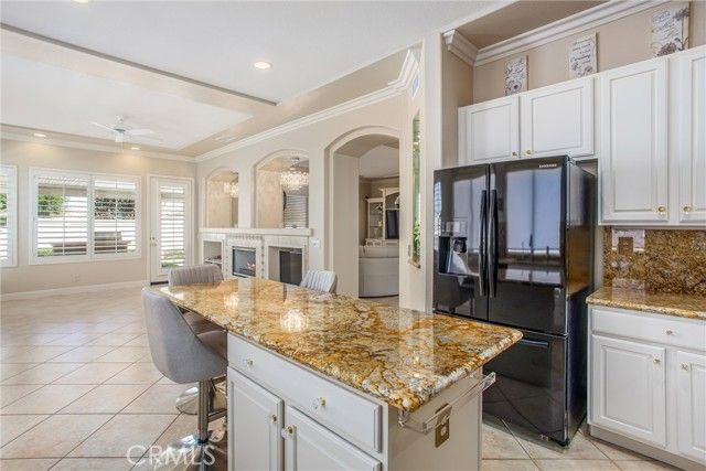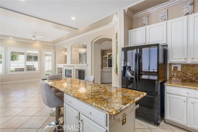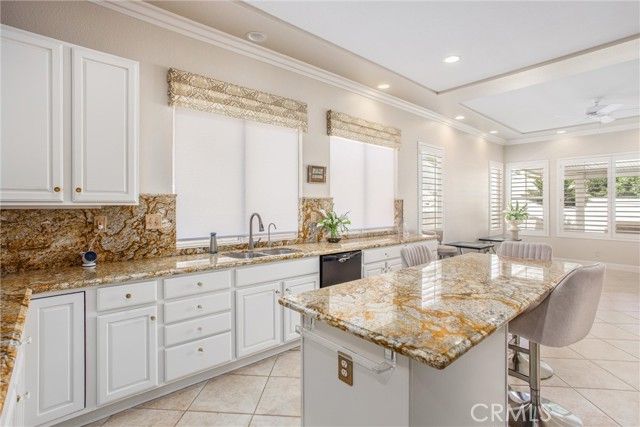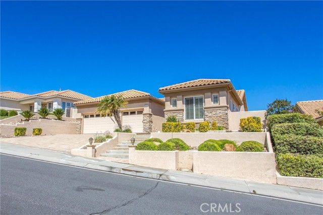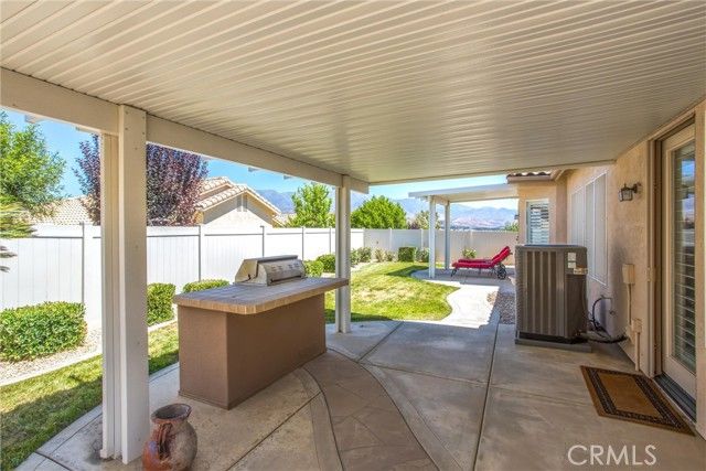 Welcome to this stunning Wisteria model located in the highly sought-after Sun Lakes Country Club, a premier 55+ resort-style community offering abundant amenities. This is the largest single-story floor plan in Sun Lakes, featuring 2 bedrooms, a den/office, and 3 bathrooms. The open-concept layout is enhanced by natural light and sweeping views of majestic San Gorgonio Mountain, creating a warm, airy atmosphere. Enjoy a private backyard oasis with a built-in BBQ, as well as a spacious front porch perfect for relaxing. The kitchen offers generous counter space, granite countertops and ample cabinetry, ideal for both everyday living and entertaining. The primary suite is a true retreat with upgraded plantation shutters, and a luxurious bathroom featuring a soaking tub, walk-in shower, dual sinks, and a large walk-in closet. A thoughtfully placed guest bedroom and full bath provide comfort and privacy for visitors. ALL FURNITURE AVAILABLE. Additional features include: 3-car garage Fully equipped laundry room with sink and extra storage Access to world-class community amenities: 2 golf courses, multiple pools and spas, pickleball and tennis courts, ballrooms, billiards, fitness center, library, and restaurants. All of this just minutes from Morongo Casino, Cabazon Outlets, and Palm Springs. Schedule your private showing today!