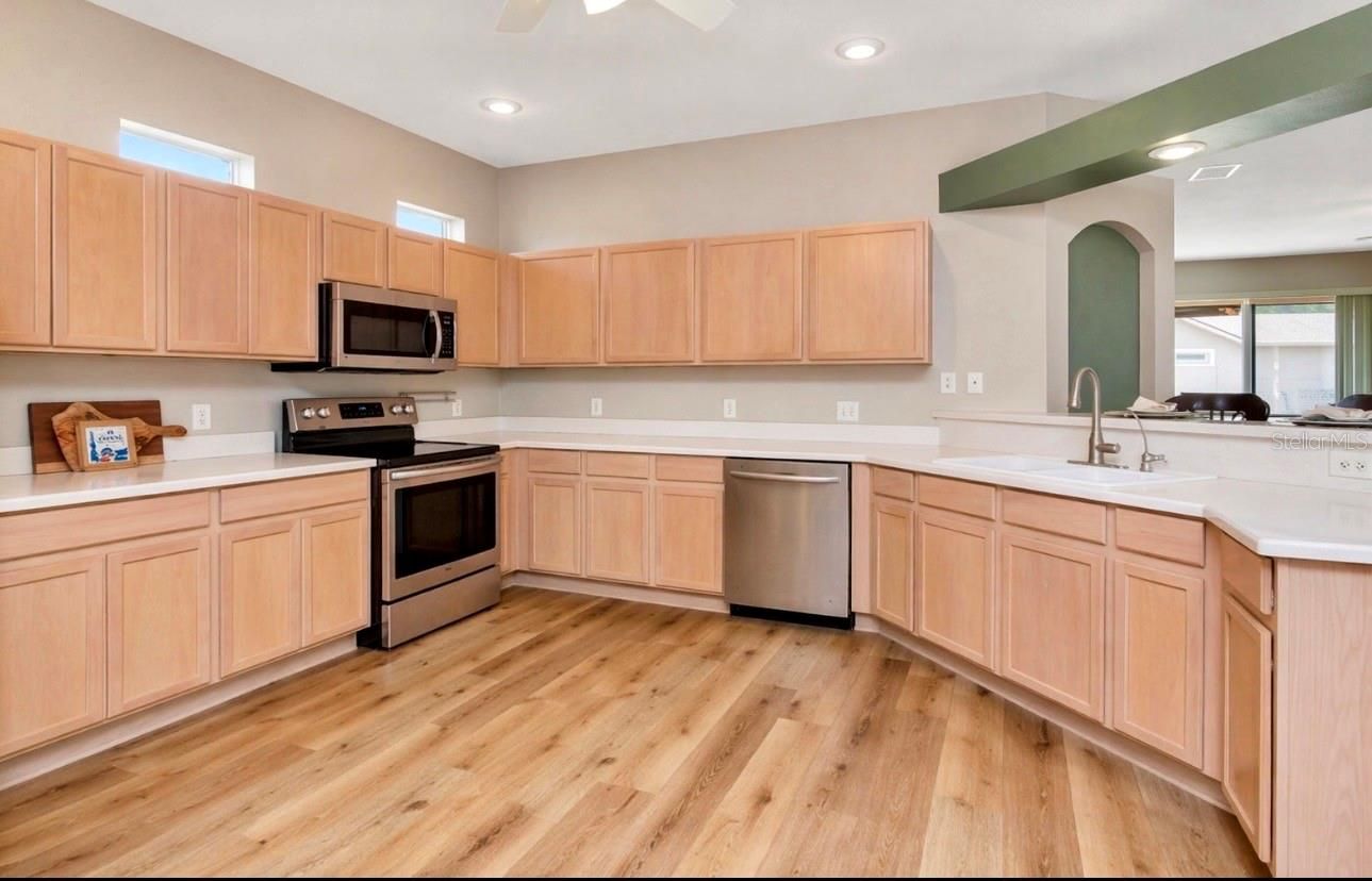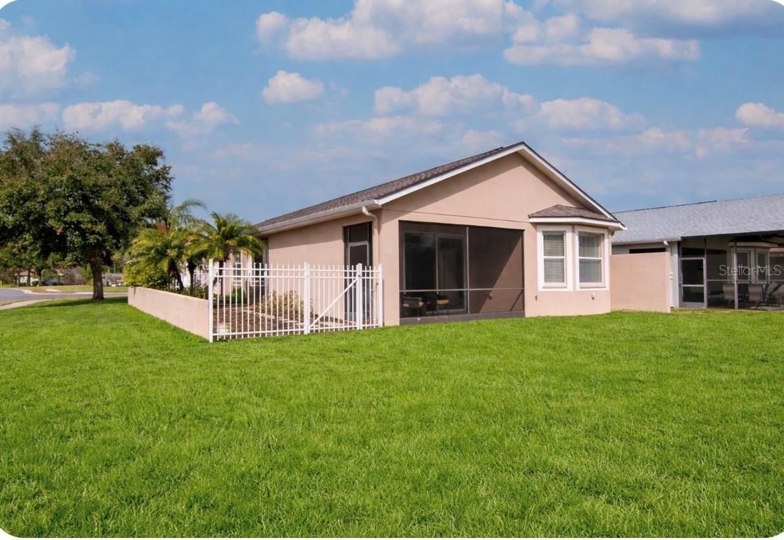 Move-In Ready + Brand-New Stainless Steel Appliances! Welcome to effortless Florida living in this beautifully maintained three-bedroom, two-bath, two-car garage courtyard home, perfectly positioned on an oversized corner lot in the highly sought-after Trovita III floor plan—one of the most desirable layouts in The Groves Golf & Country Club, a premier gated, golf-cart-friendly 55+ community in Land O’ Lakes. From the moment you enter through the private gated courtyard, you’re greeted with charm, privacy, and a warm sense of home. Inside, the residence feels light, bright, and inviting, featuring new flooring throughout and abundant natural light that enhances the open-concept living and dining areas—ideal for both relaxed everyday living and entertaining. The kitchen is a standout, now beautifully updated with a brand-new package of stainless steel appliances, offering a fresh, modern feel along with ample cabinetry and space for a cozy breakfast nook—perfect for morning coffee or casual meals with friends. The spacious primary suite serves as a peaceful retreat, complete with a charming bay window, dual sinks, and a generous walk-in closet. Guest bedrooms provide flexibility for visitors, hobbies, or a home office, while the interior laundry room adds everyday convenience. Step outside to discover a rare enclosed side yard, framed by walls and mature landscaping—offering exceptional privacy and versatility not often found in the community. Significant updates provide peace of mind, including a new roof (2023), newer AC (2020), fresh interior paint, and an upcoming exterior paint allowance, giving the new owner the unique opportunity to select their preferred color at no additional cost. Life at The Groves is all about active, social, and carefree living. Residents enjoy a vibrant clubhouse with a full-service restaurant, a packed calendar of activities, and resort-style amenities including an 18-hole, par-66 golf course designed by Gary Koch, pool and spa, fitness center, tennis and pickleball courts, bocce, shuffleboard, dog park, and community garden. The quarterly HOA offers exceptional value, covering roof replacement, exterior painting, cable, internet, and lawn care—so you can spend more time enjoying the lifestyle you’ve earned. Located just outside the gates, everyday conveniences—from shopping and dining to banking and salons—are all accessible by golf cart, with easy access to hospitals, Tampa International Airport, beaches, and top attractions. Move-in ready and meticulously cared for, this home is the perfect blend of comfort, style, and low-maintenance living—your ideal next chapter starts here.