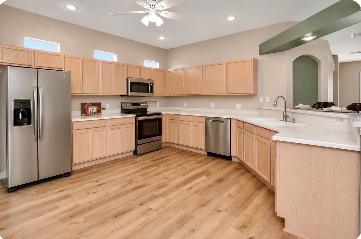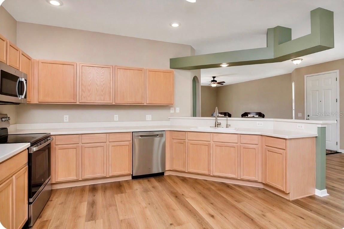 - Ceiling Fan(s), Open Floorplan, Solid-Wood Cabinets, Split Bedrooms, Thermostat, Walk-In Closet(s)