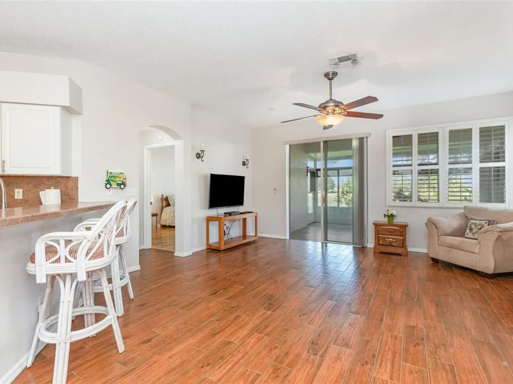 Welcome to your new maintenance-free Florida lifestyle in the highly sought-after Kings Point gated 55+ community! This spacious 2-bedroom, 2-bath condo with a 2-car garage is nestled on a peaceful cul-de-sac and features a bright open floor plan with a split-bedroom layout for added privacy. Enjoy the natural light pouring through the large windows, a fully equipped kitchen with breakfast nook, and a screened-in lanai perfect for relaxing or entertaining.