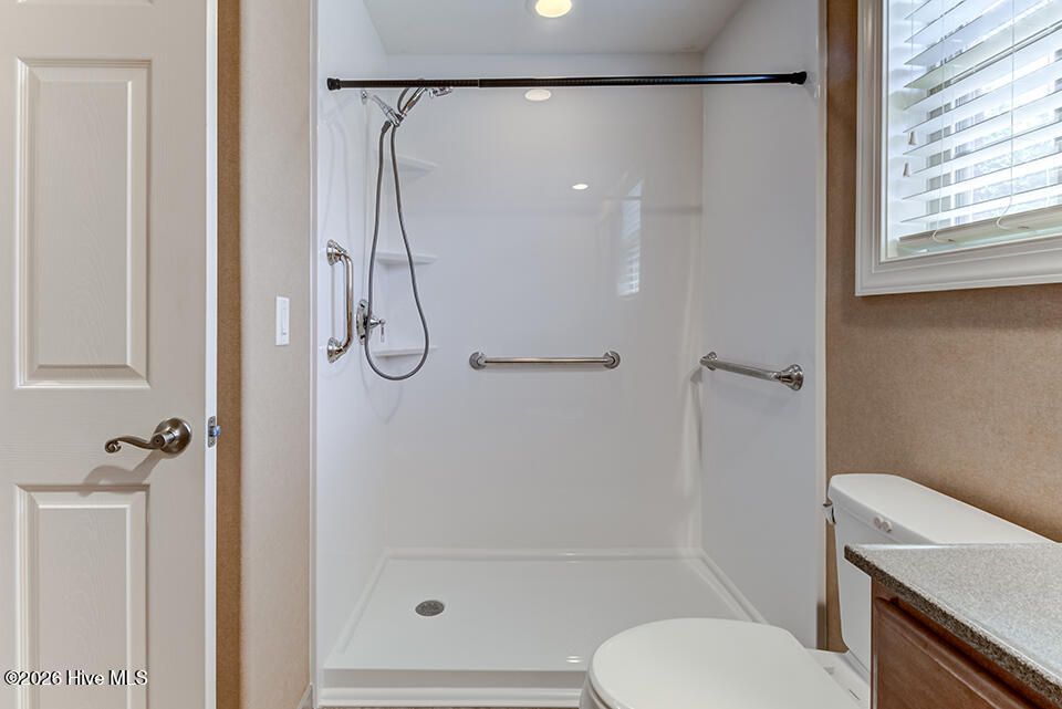 - Master Downstairs, Walk-in Closet(s), Vaulted Ceiling(s), Tray Ceiling(s), High Ceilings, Entrance Foyer, Solid Surface, Kitchen Island, Ceiling Fan(s), Reverse Floor Plan, Walk-in Shower