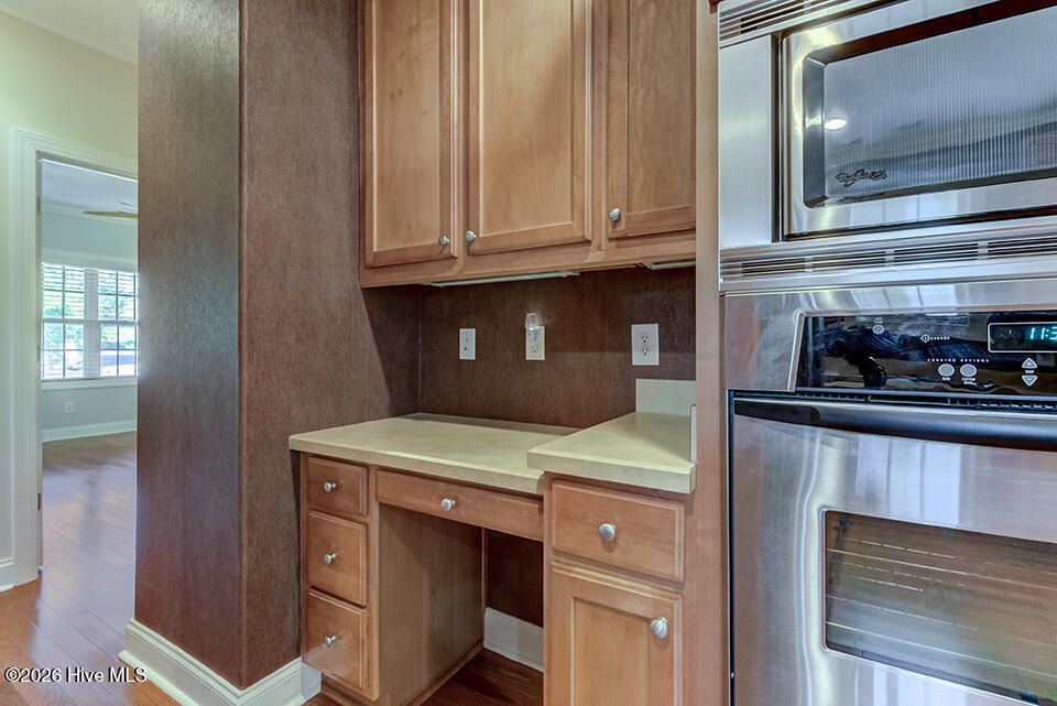 Spacious real brick 3 bedroom home with an extra long driveway and a rear 2 car garage! This home has an open floorplan with a glassed-in porch on .25 acre lot. Great location on short street with a cul-de-sac. Kitchen layout offers generous counter space, plenty of cabinets, a built-in desk, and a separate pantry. Stainless steel appliances include a wall oven and microwave.. Electric cooktop could easily be switched to propane gas by adding an exterior connection and tank. The owner suite boasts a large bedroom, tray ceiling, a walk-in shower, a jetted tub, and a large walk-in closet. The guest rooms are located on the opposite side of the home. The guest bathroom had a new walk-in shower installed in Feh 2023. KitchenAid Refrigerator, Speed Queen washer, and Speed Queen dryer convey. You will find premium HOA amenities at Brunswick Forest: 3 outdoor pools, 1 indoor pool, fitness rooms, a variety of exercise classes, tennis and pickleball courts, walking trails, and multiple scenic ponds. There is an optional golf membership for the on-site Cape Fear National Golf Course (complete with a pro shop and full service restaurant for members). At the front of the neighborhood, you will find a grocery store, drug store, multiple restaurants, medical offices, urgent care office, banks, a coffee shop, a pet supply store, a community meeting room, a gas station, and more. Brunswick Forest is located approximately 10 minutes from Wilmington, and is within 35-45 minutes of Wrightsville Beach, Carolina Beach, Southport, Oak Island, Holden Beach, Ocean Isle Beach, and Sunset Beach. There are 2 HOAs for this home: Brunswick Forest Master HOA and Jefferson Landing HOA. (Disclosure: Floors have experienced moisture damage. Seller is willing to provide a flooring allowance to the buyer. Ask listing agent for details.)