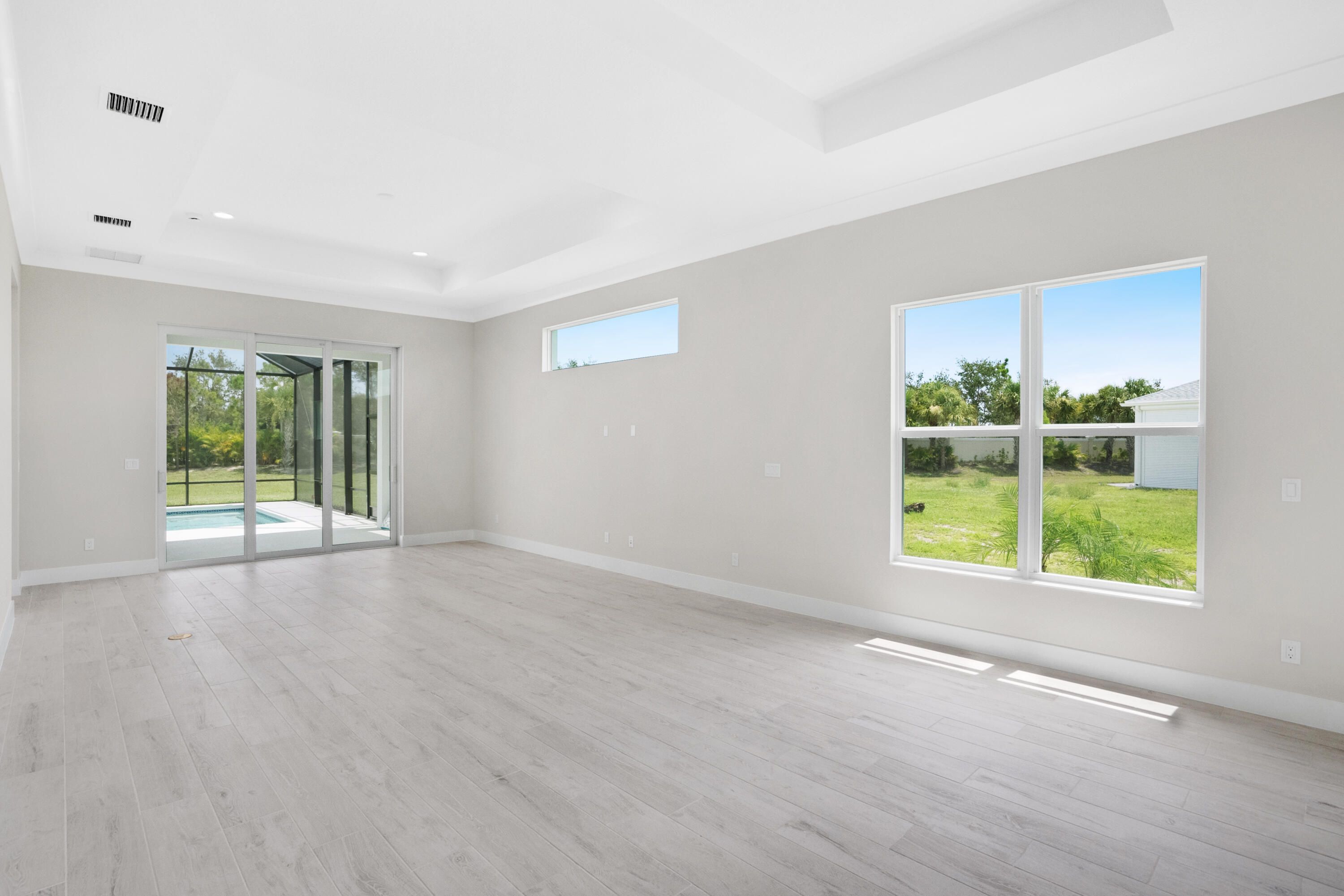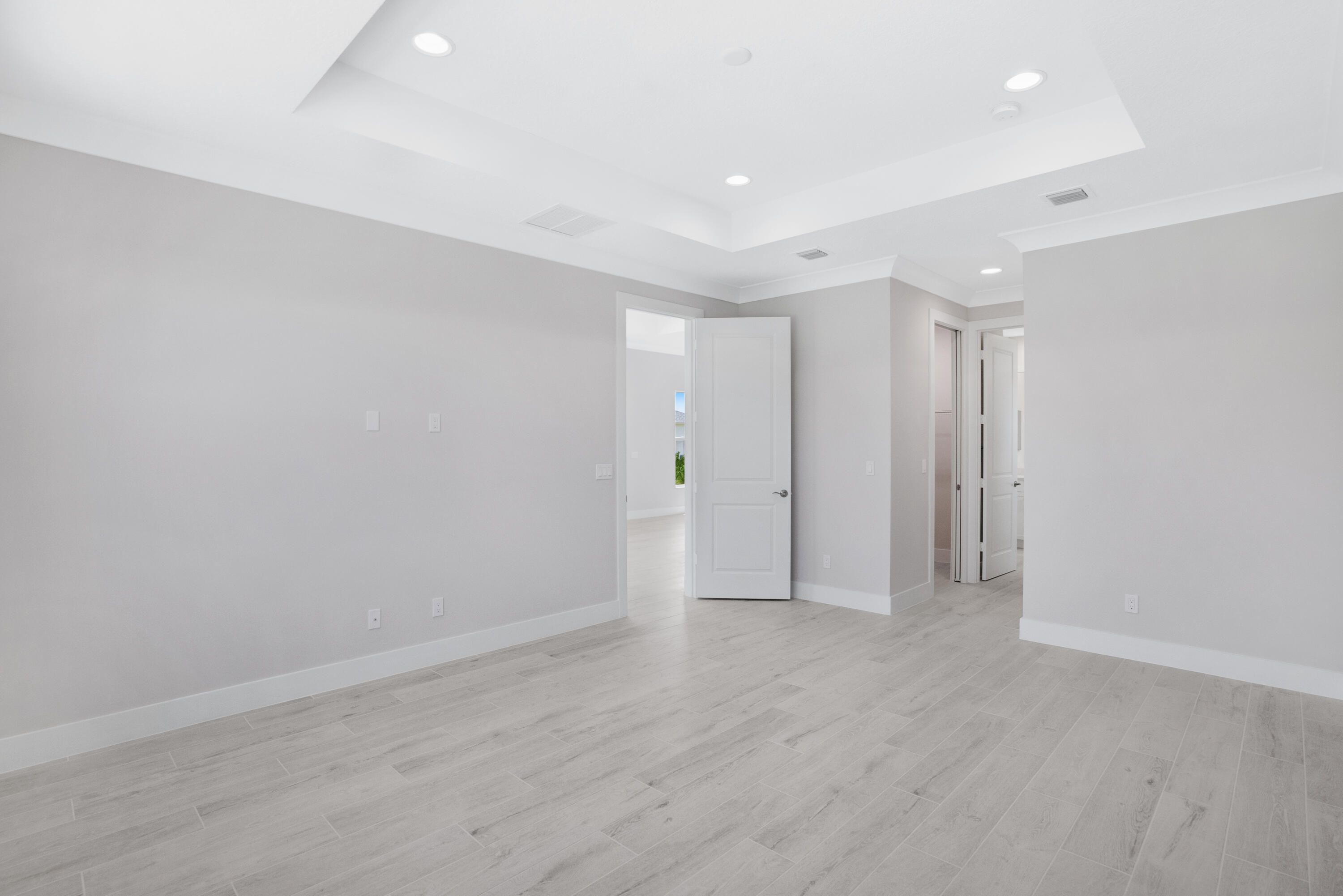 This popular Mirador floor plan is located on a stunning lot with a picturesque lake view. The kitchen has been upgraded with premium stainless steel Kitchen Aid appliances, elegant white cabinets featuring soft-close doors and drawers, and luxurious quartz countertops. The entire home is adorned with porcelain plank tile floors and crown moulding in the main living areas. Solid core doors and impact-resistant windows and doors are installed throughout the home.The Master Suite located at the rear is complete with a tray ceiling and large windows to allow plenty of natural lighting. The screened-in pool and lanai are perfect for those who want to enjoy the Florida lifestyle.The Falls neighborhood offers community walkways with a bridge to an island, as well as a community pool.