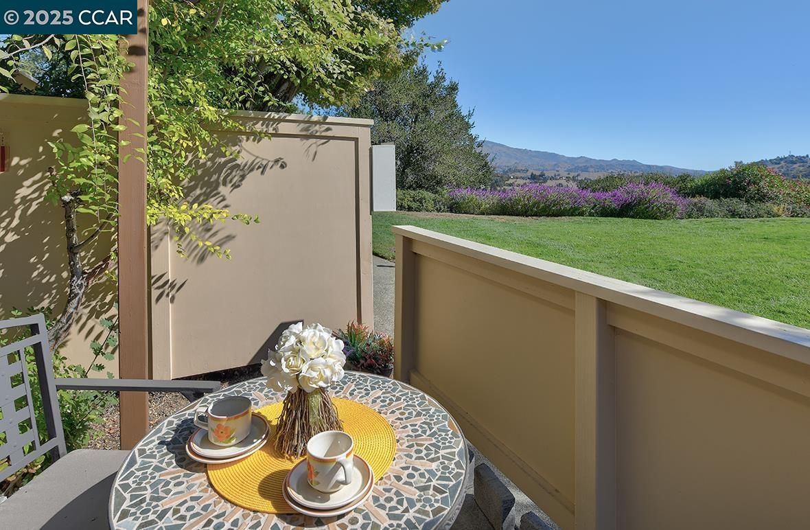 Location, location, location! Situated at the very end of the entry, atop a ridge overlooking downtown Walnut Creek and Mt. Diablo. One of a kind Mendocino model, corner unit with no upstairs or downstairs neighbor. Enjoy the unobstructed, breathtaking view from large private patio (200+SF), nestled under a pergola. Single-level, level-in property with no stairs whatsoever. The kitchen has been remodeled to create a beautifully open floor-plan. Newer cabinets with large pull-out drawers and granite counters. Hard surface flooring throughout. Updated bath, bedroom with no shared wall. Steps to carport with the maximum amount of custom storage, composed of 11 additional, locking cabinets.