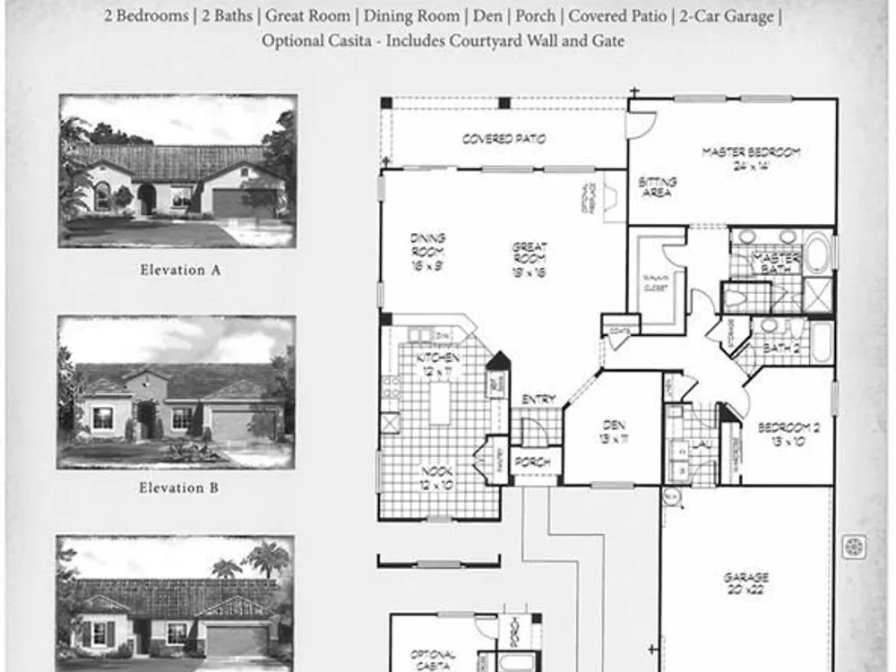Highly sought-after Lincoln Floor Plan with Detached Casita! This home offers approx. 2,400 sqft w/ 3 bedrooms + den, 3 baths, and a 2-car garage. Features include a gated courtyard w/ covered patio, spacious great room w/ ceiling fan, formal dining area, and an island kitchen with granite counters, upgraded maple cabinets, breakfast bar, nook, pantry, recessed lighting, r/o system, & stainless steel appliances. The owner’s suite offers a ceiling fan, walk-in closet, laminate wood flooring, patio access, and bath with dual sinks, garden tub, and shower. Detached casita w/ cf & full bath. Laundry room w/ cabinets, sink, & washer & dryer. Two-tone paint, diagonal tile, blinds & drapes, Ecobee thermostat, alarm, water softener, and garage with epoxy floor. Backyard features a covered patio with cf, gas BBQ stub, and mature low-maintenance landscaping. Enjoy all the amenities of Sun City Anthem’s 55+ community including golf, clubhouses, fitness center, pools, tennis, pickleball, and more!