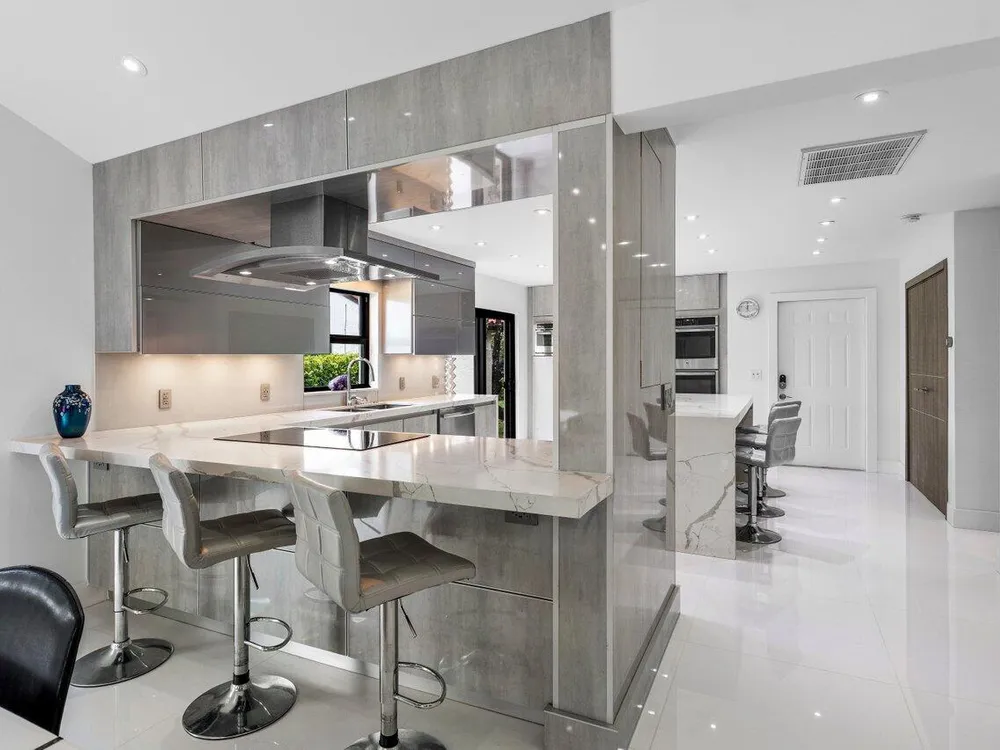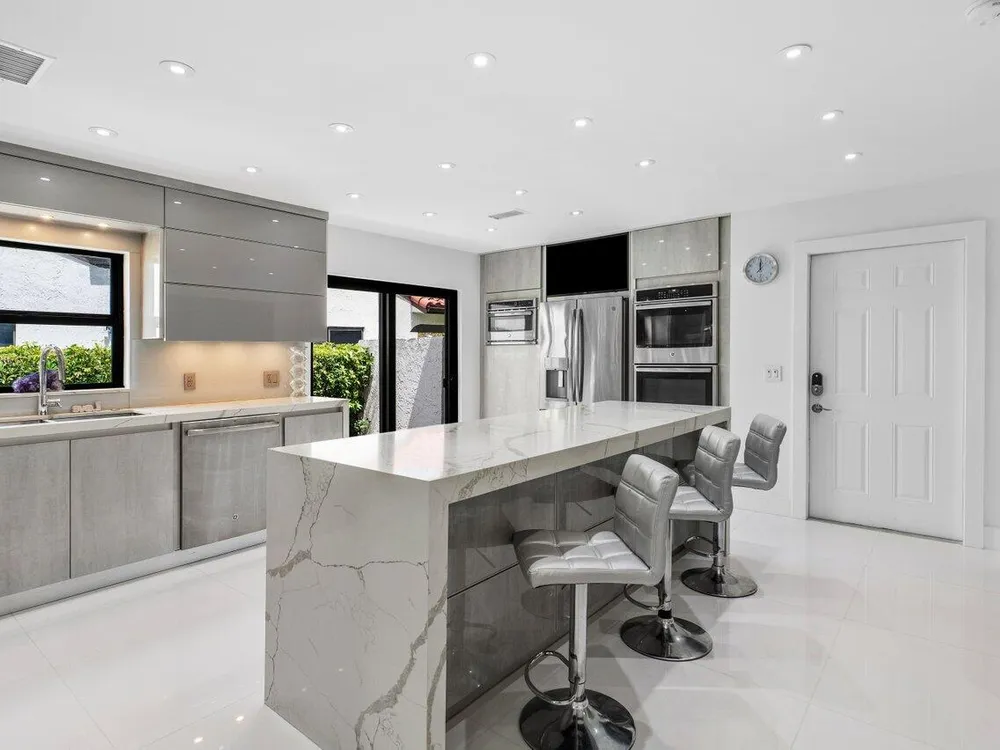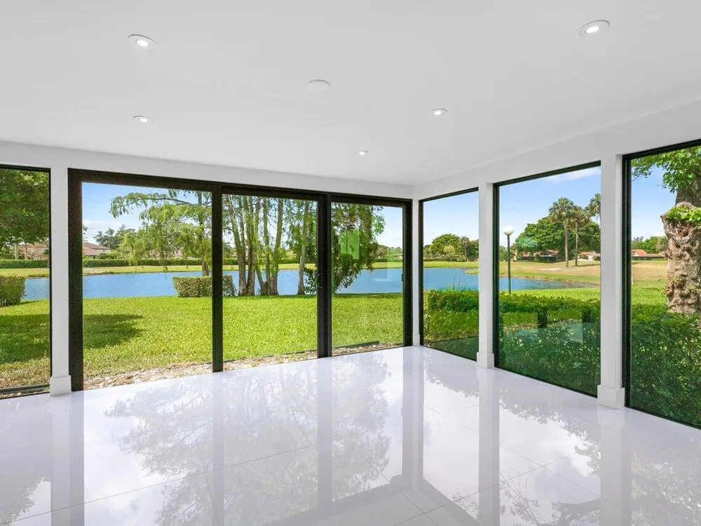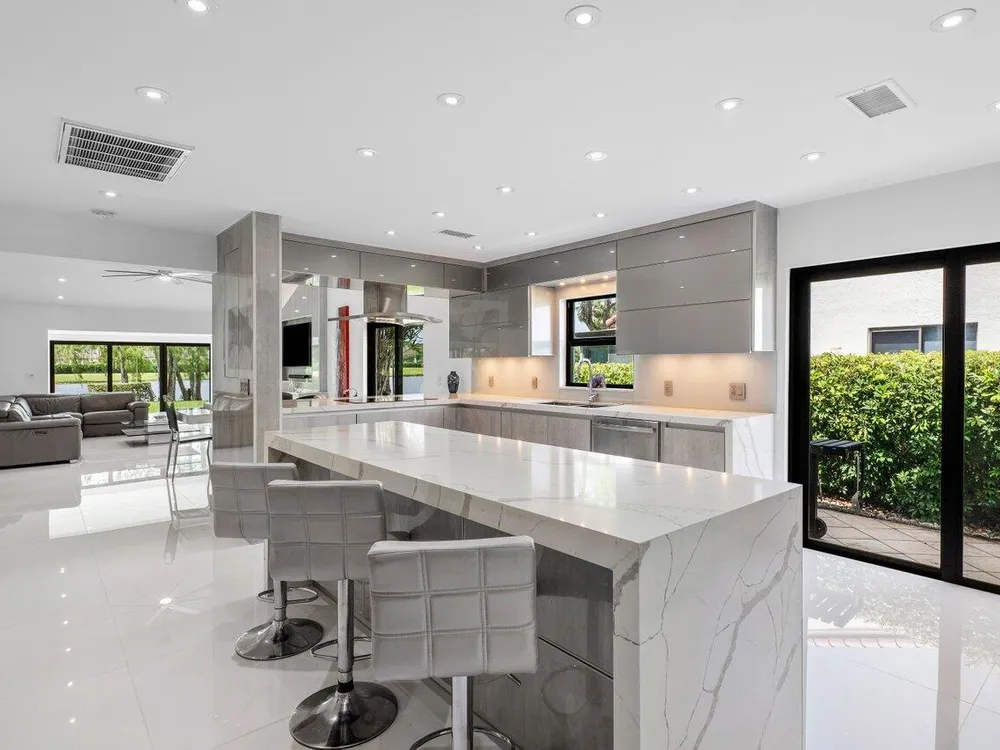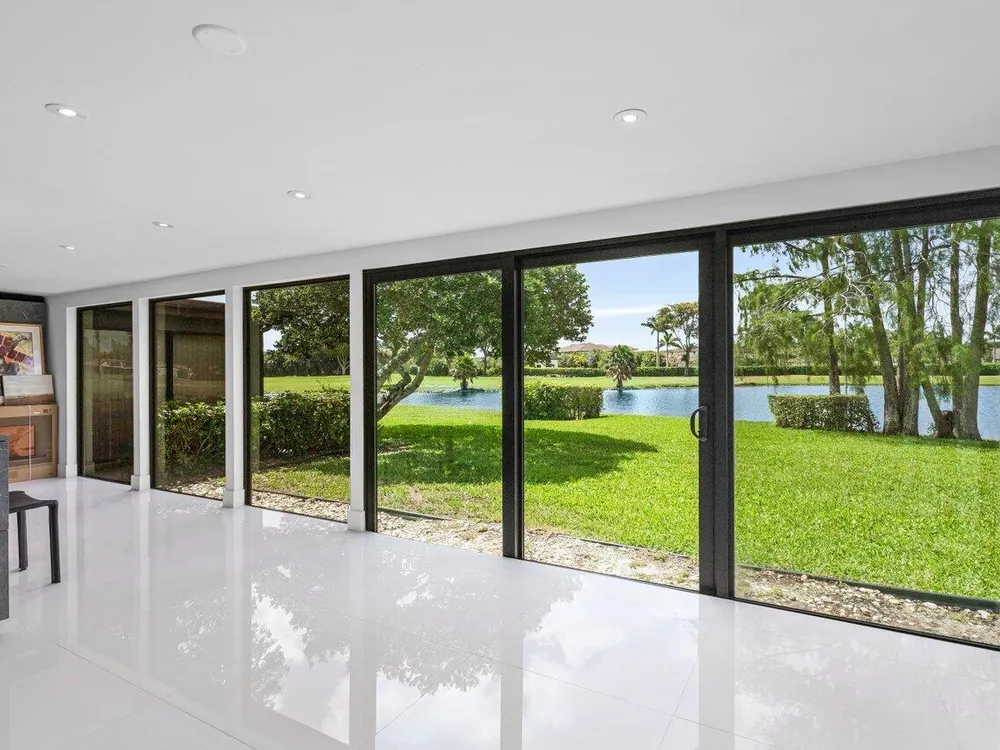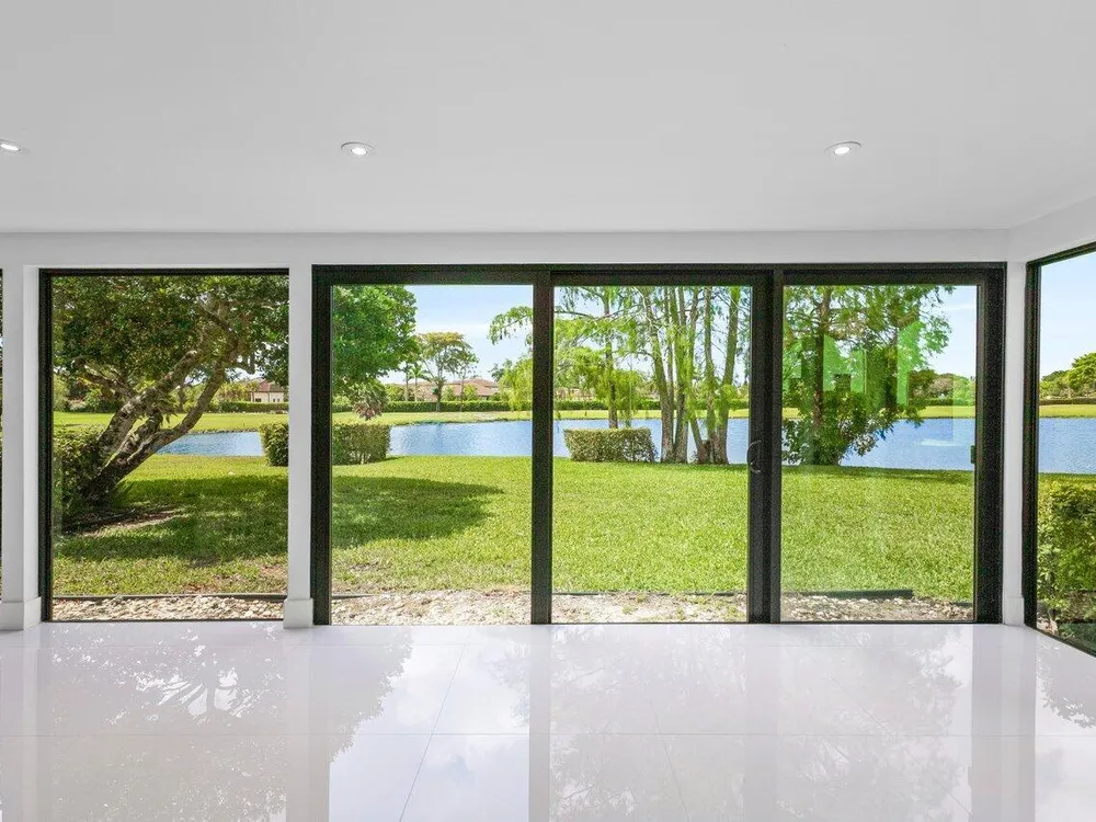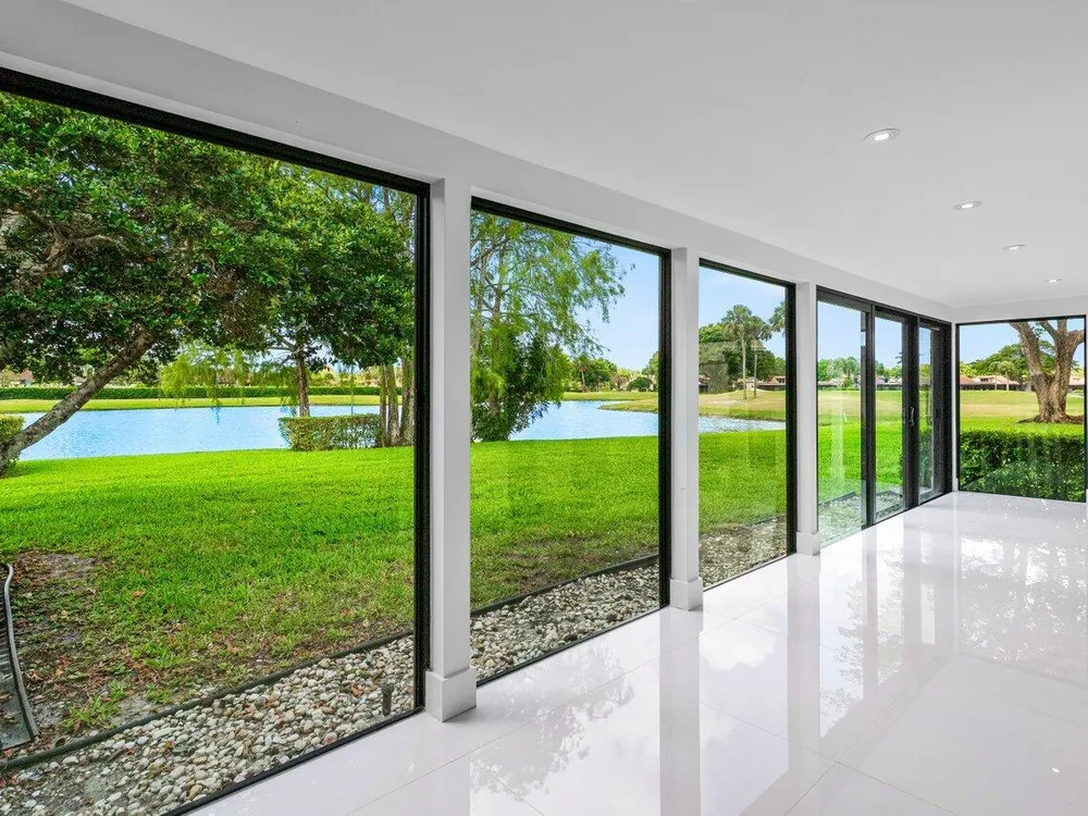 Modern masterpiece and builder's model home residence with the highest & finest custom finishes! Completely remodeled with breathtaking views of the lakes, golf course, wildlife and nature with the most impressive sunsets from inside and outside your home. Cypresses of Boca Lago is gated and patrolled. New roof and A/C systems are 2022. New paved roads & driveways 2024. Complete hurricane impact windows and doors! Smart home technology. Kitchen equipped with S/S GE Profile appliances & double-oven. 32''x32'' rectified glass-porcelain floors! Master bathroom with spacious infinity shower, extra-large rain head with hand held & power jets, frame-less glass doors, floating vanities with double sink & under mount lighting. Additional features of this masterpiece include Blum under-mount...